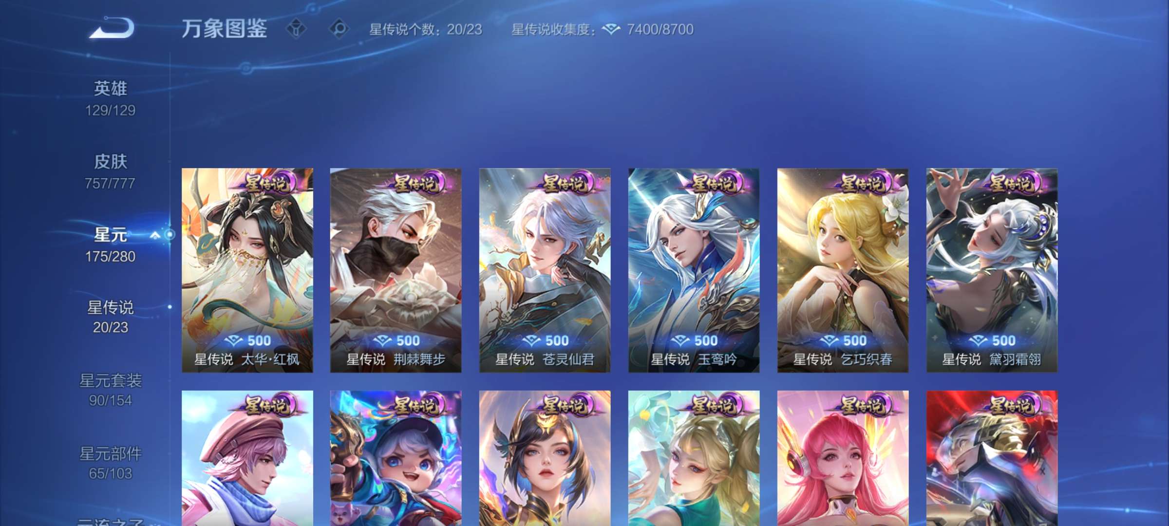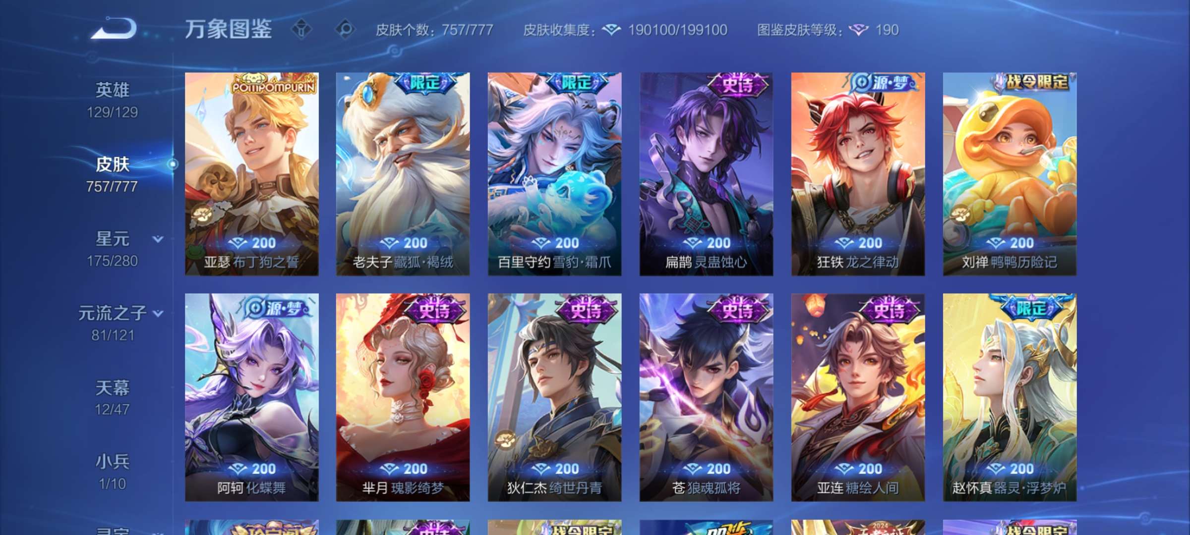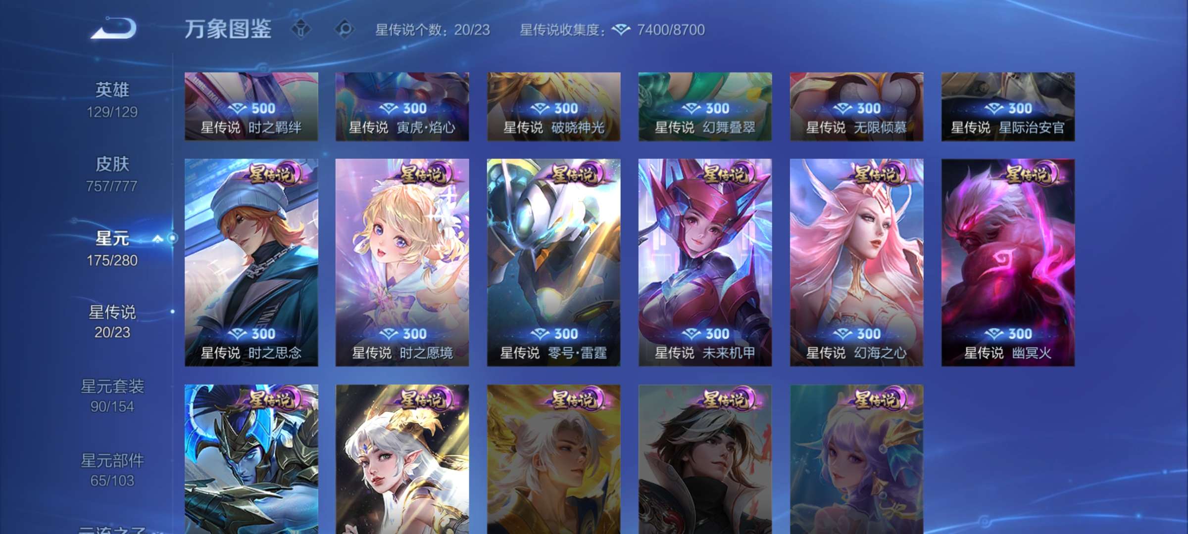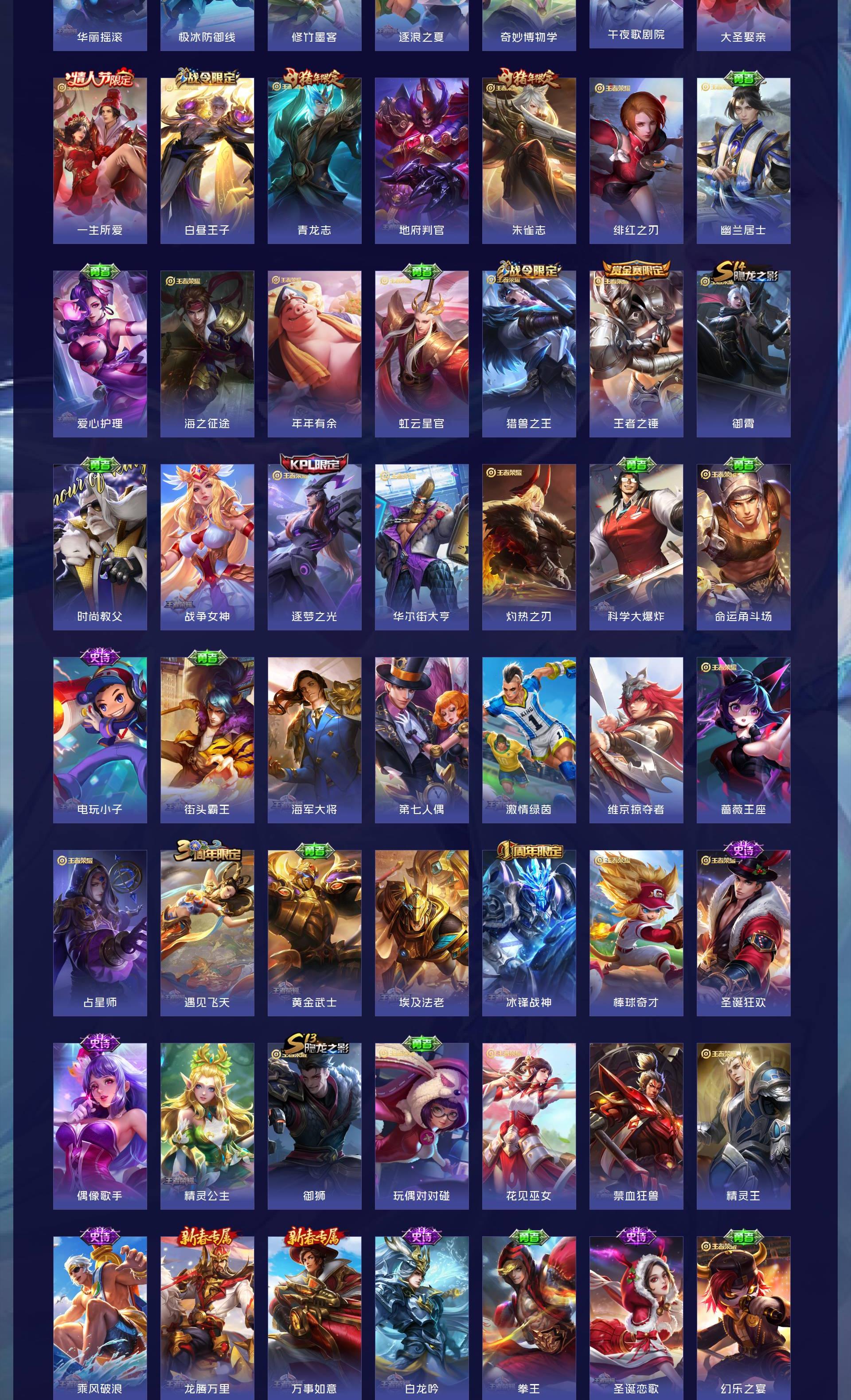 无双贵族 皮肤757 至尊星耀 荣耀典藏20 珍品无双1 无双皮肤12 珍品传说9 星传说22 传说
