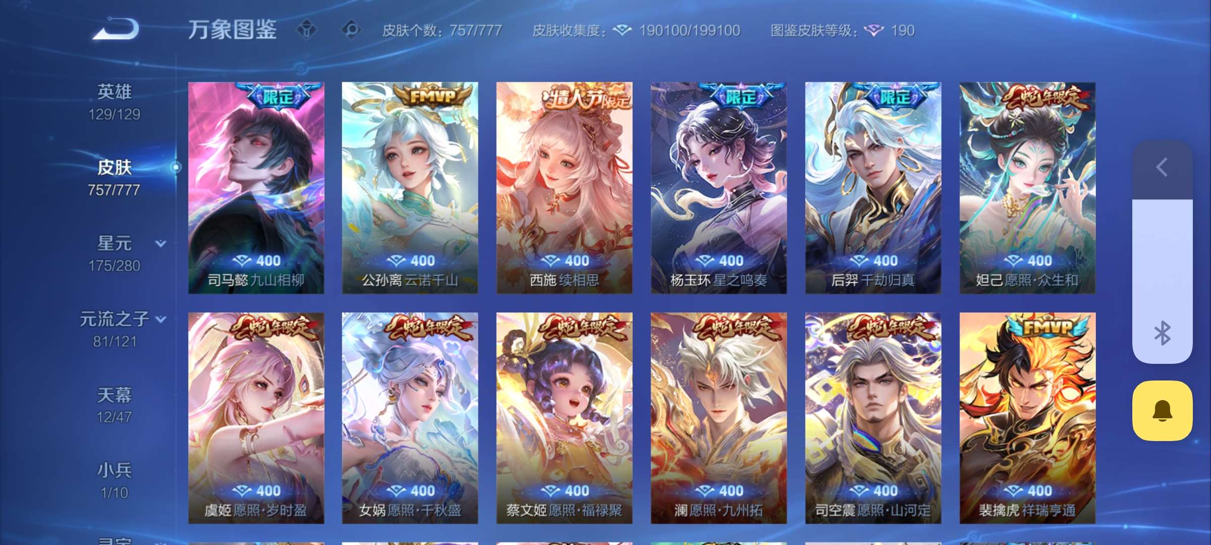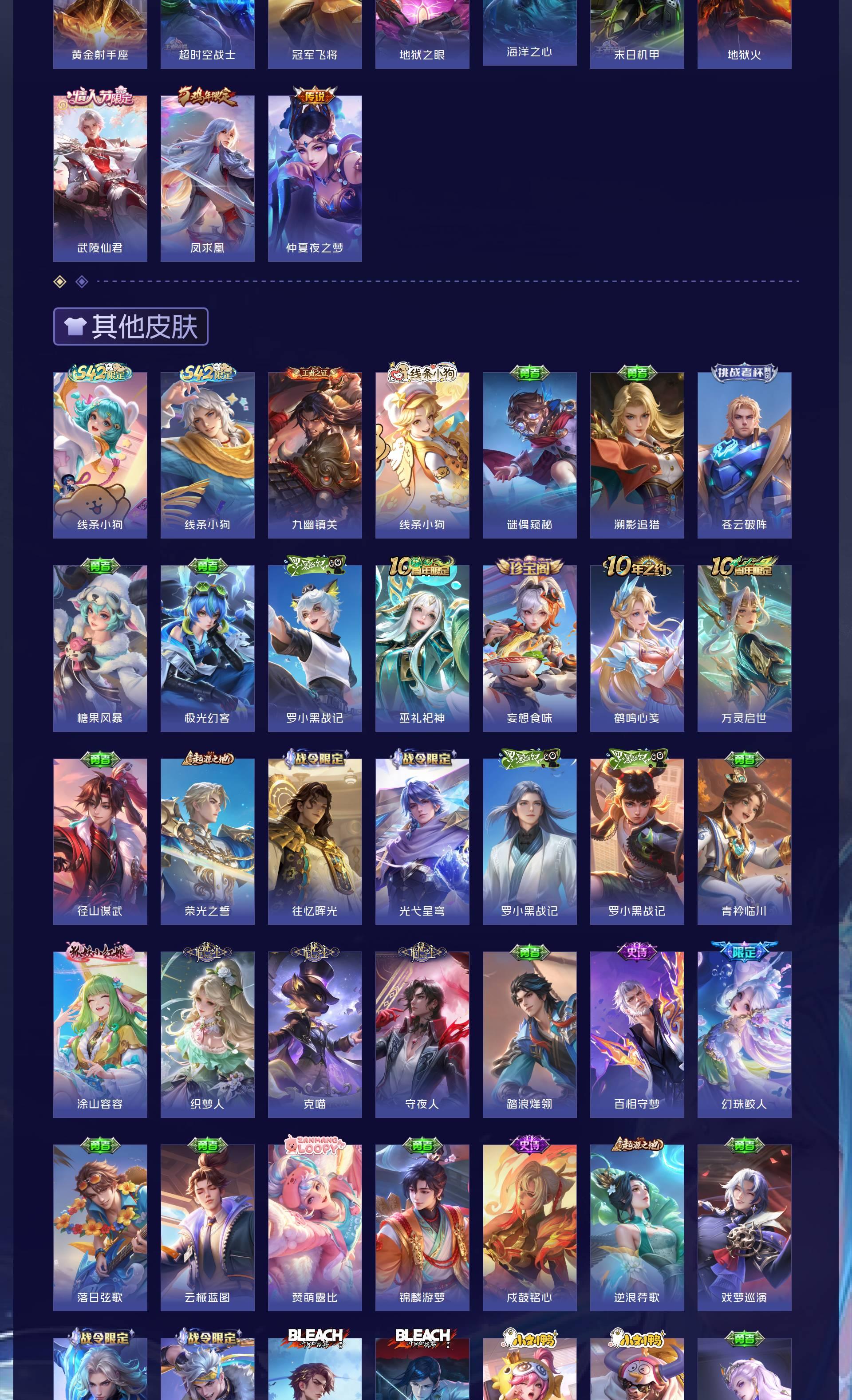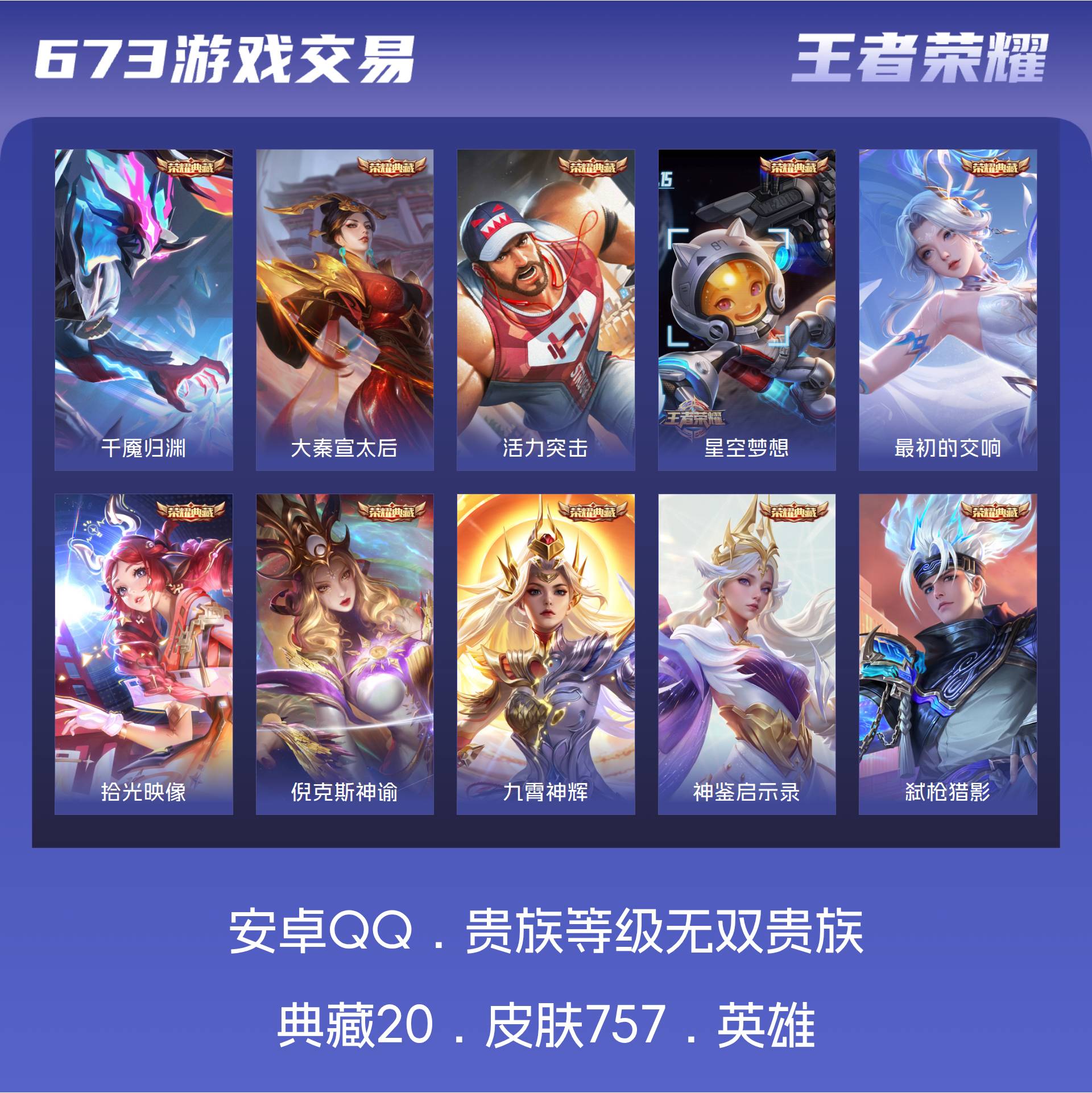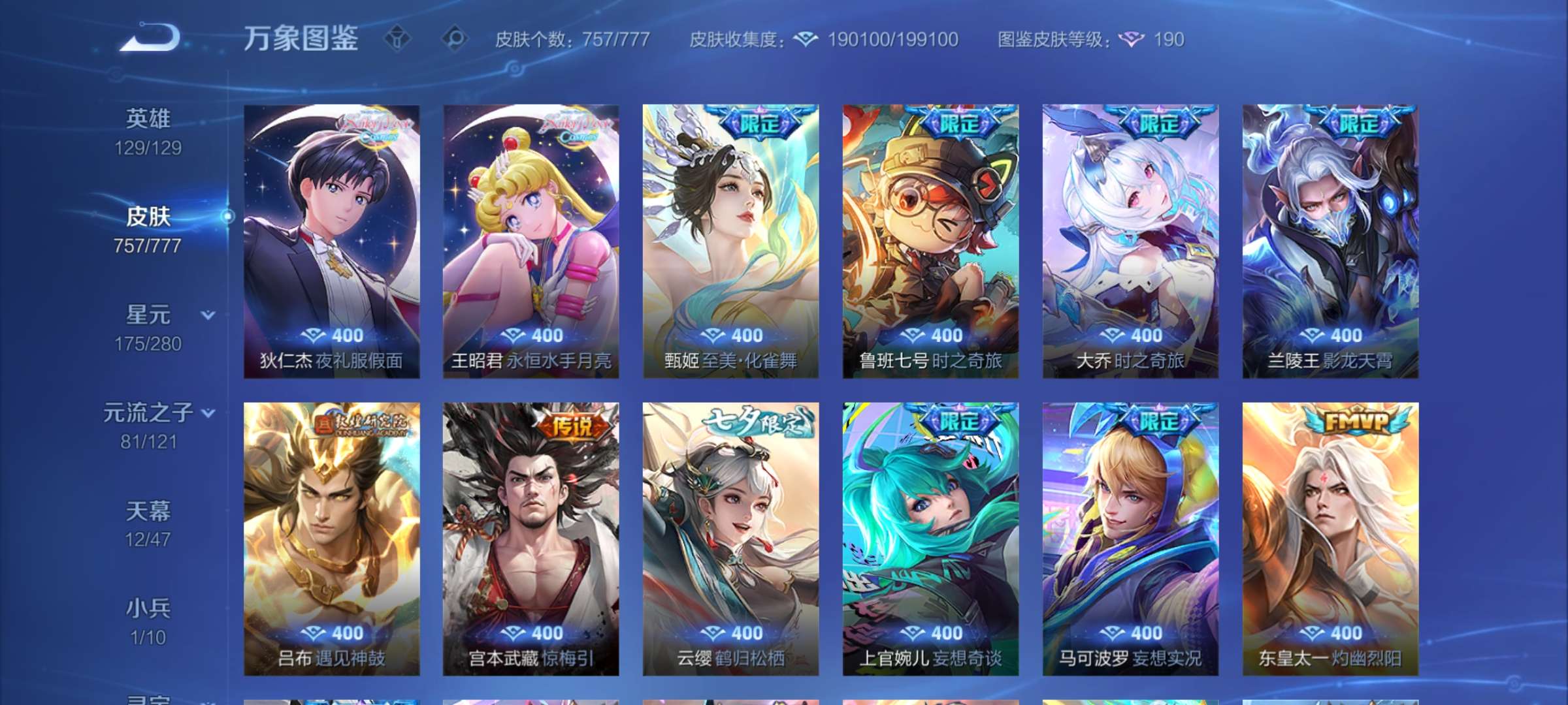 无双贵族 皮肤757 至尊星耀 荣耀典藏20 珍品无双1 无双皮肤12 珍品传说9 星传说22 传说