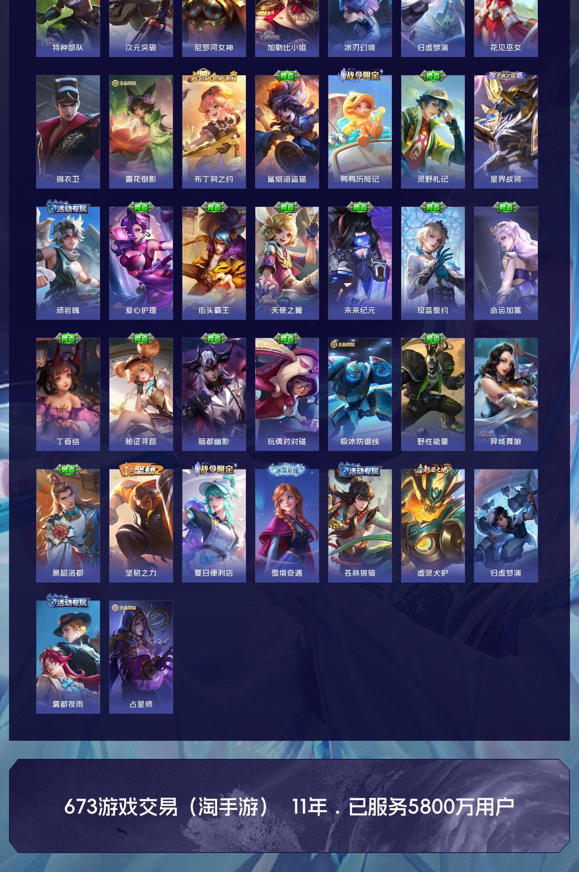V9 皮肤324 英雄127 至尊星耀 荣耀典藏3 无双皮肤1 传说35 其他皮肤289