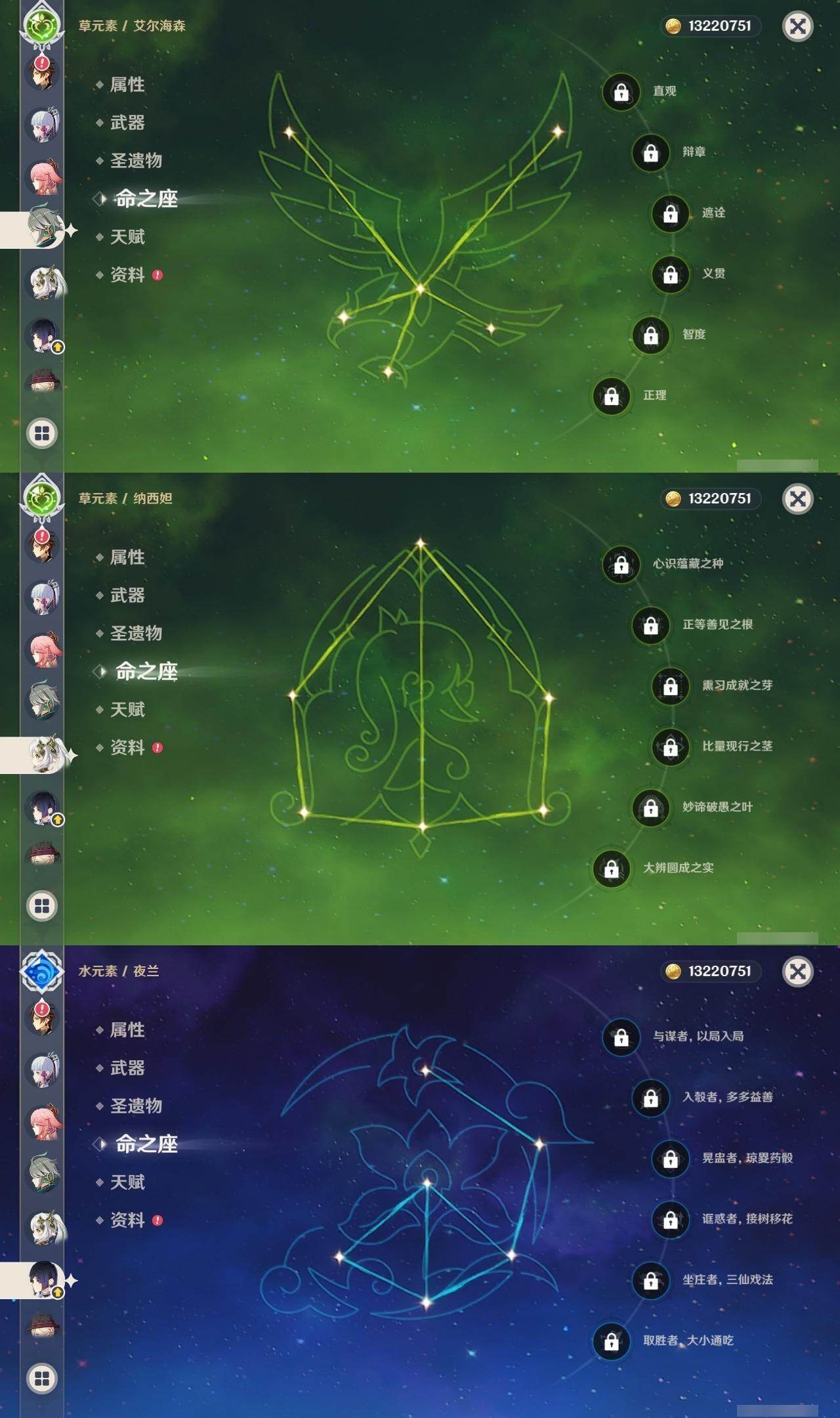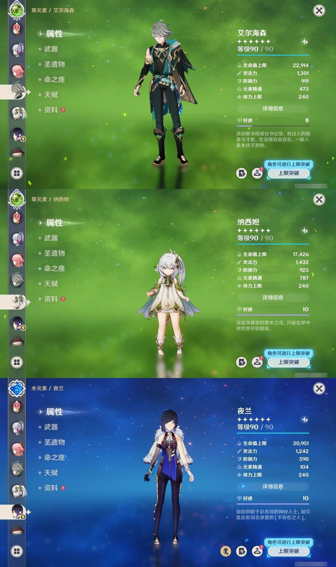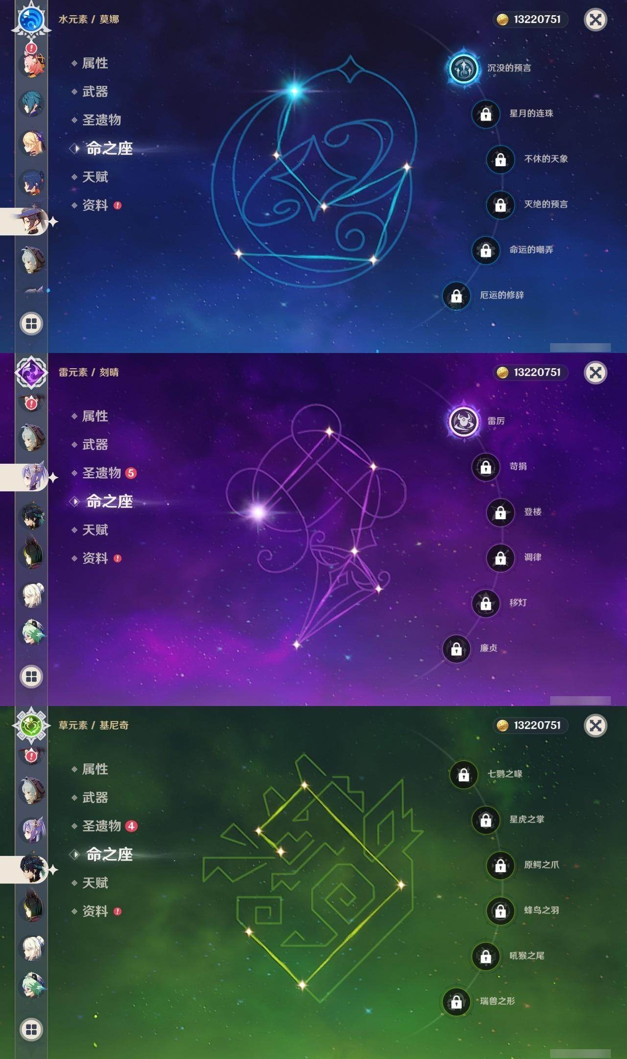1命那维莱特,0命林尼,0命迪希雅,0命艾尔海森,0命纳西妲,1命提纳里,0命夜兰,0命八重神子,0命枫原万叶,0命神里绫华,0命钟离,1命胡桃,0命珊瑚宫心海,1命刻晴,0命七七,0命琴,1命莫娜,0命迪卢克,0命基尼奇,精1万世流涌大典,精1若水,精1终末嗟叹之诗,精1苍古自由之誓,精1和璞鸢,精1天空之卷,精1风鹰剑,精1狼的末路,精1