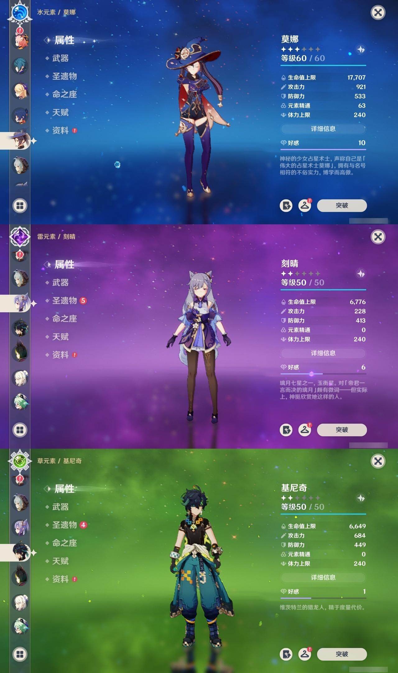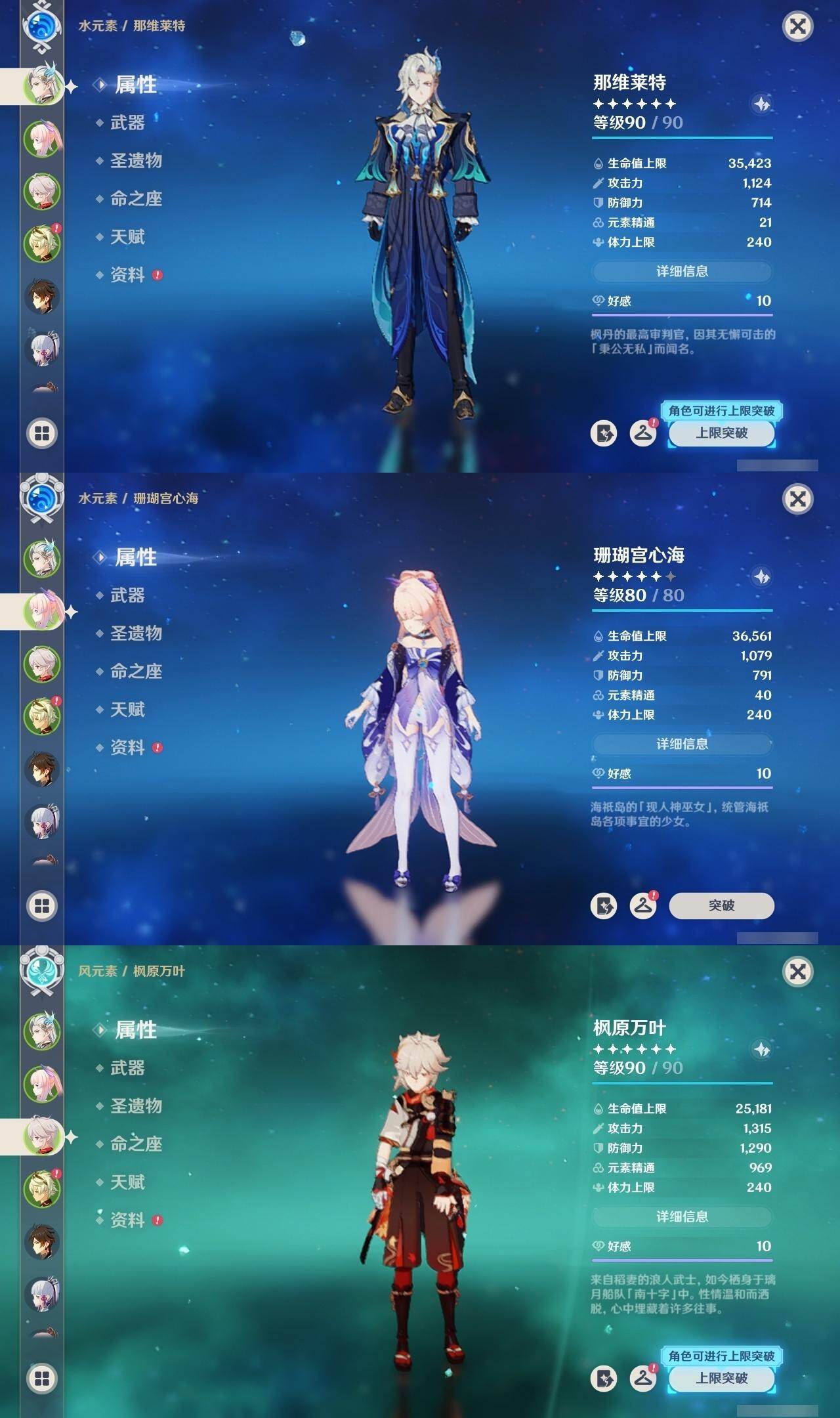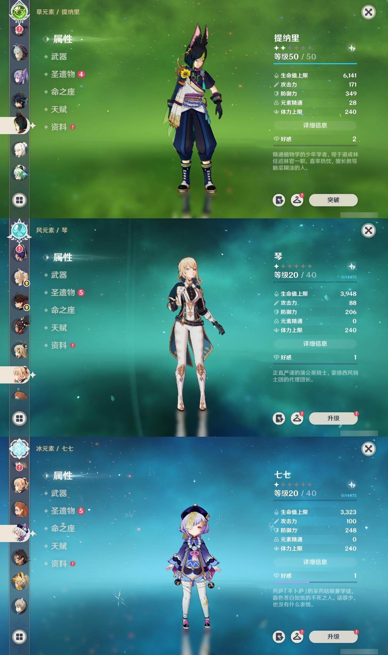 1命那维莱特,0命林尼,0命迪希雅,0命艾尔海森,0命纳西妲,1命提纳里,0命夜兰,0命八重神子,0命枫原万叶,0命神里绫华,0命钟离,1命胡桃,0命珊瑚宫心海,1命刻晴,0命七七,0命琴,1命莫娜,0命迪卢克,0命基尼奇,精1万世流涌大典,精1若水,精1终末嗟叹之诗,精1苍古自由之誓,精1和璞鸢,精1天空之卷,精1风鹰剑,精1狼的末路,精1