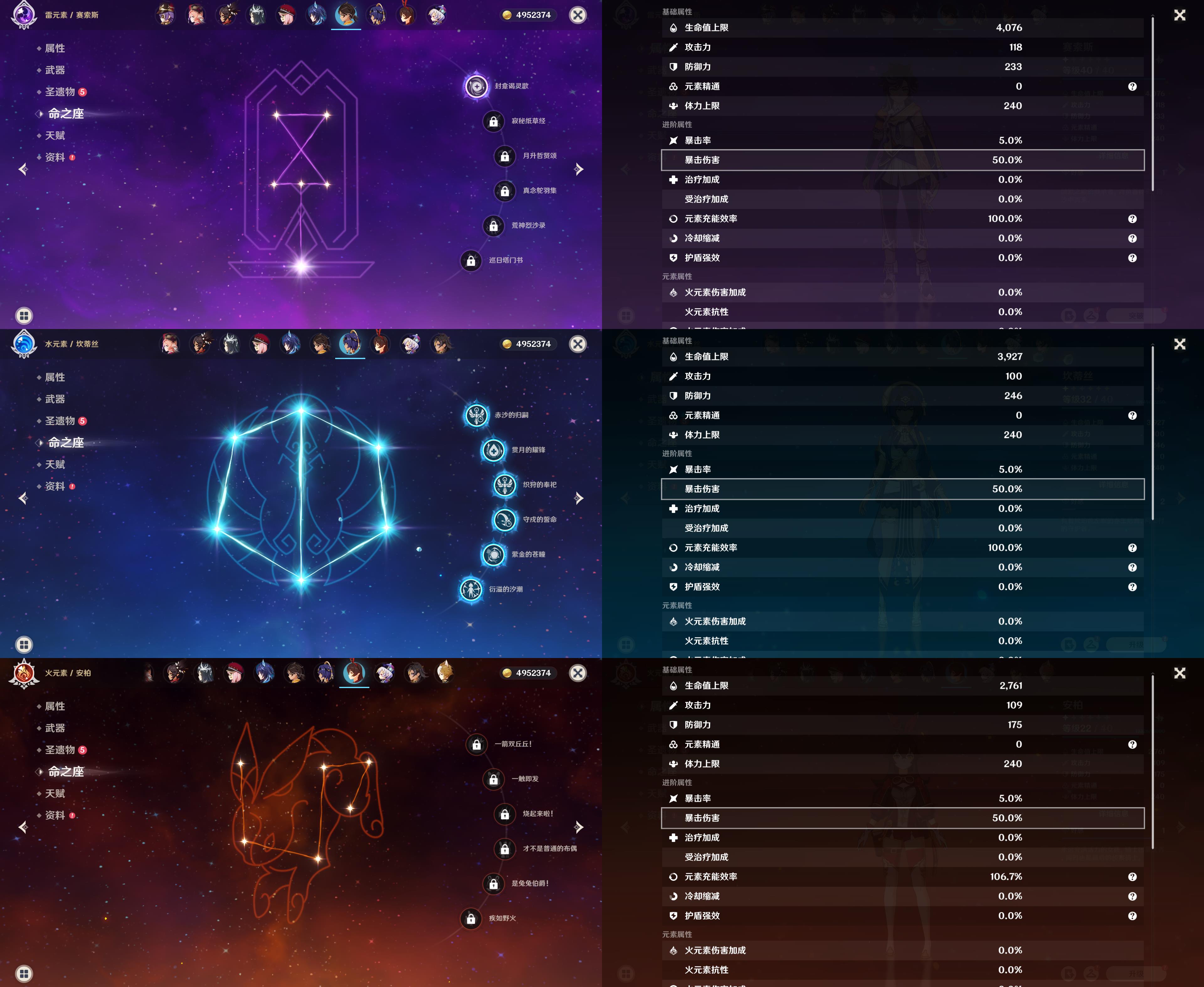 59级/31黄/女主/18个五星角色/3个五星武器/