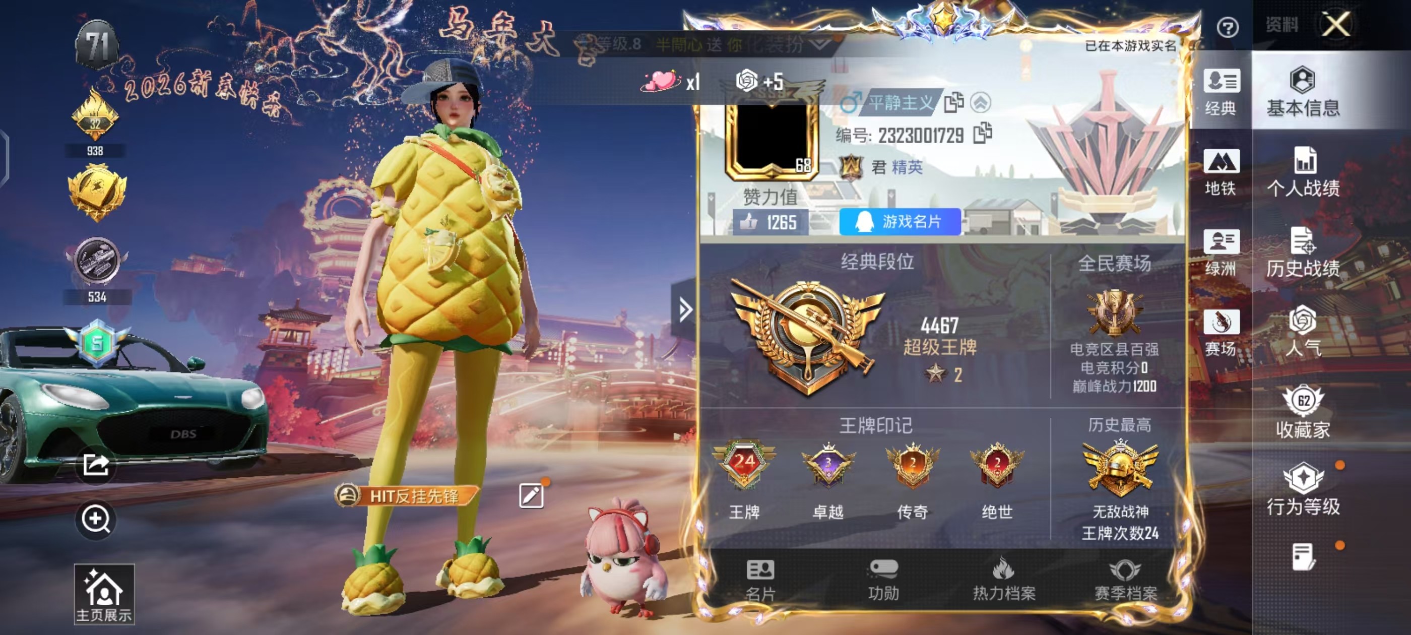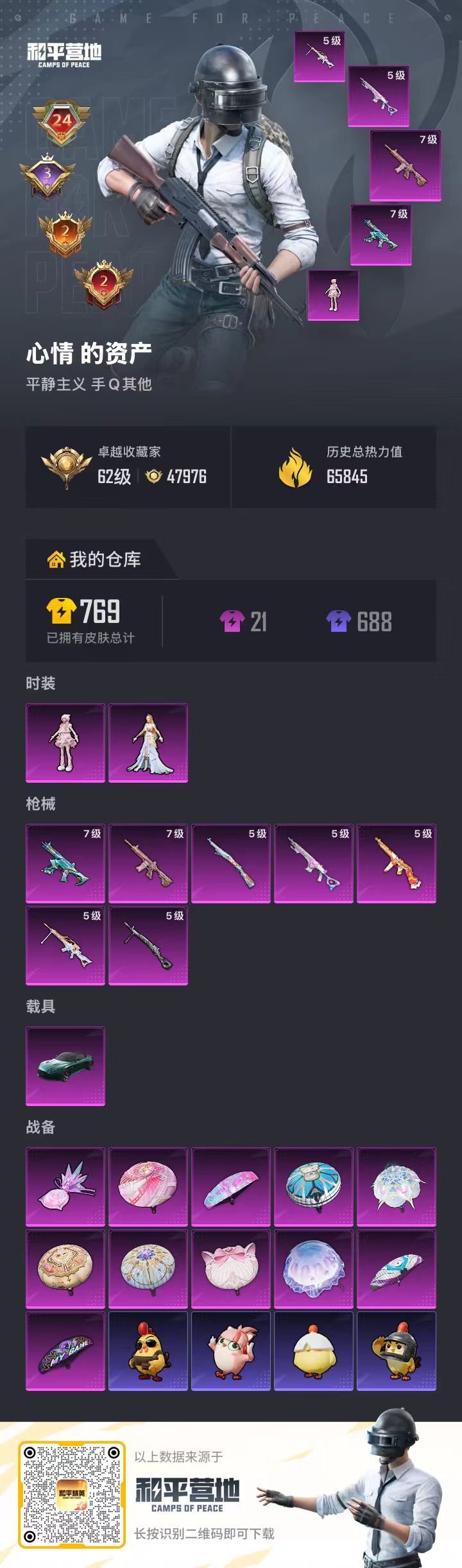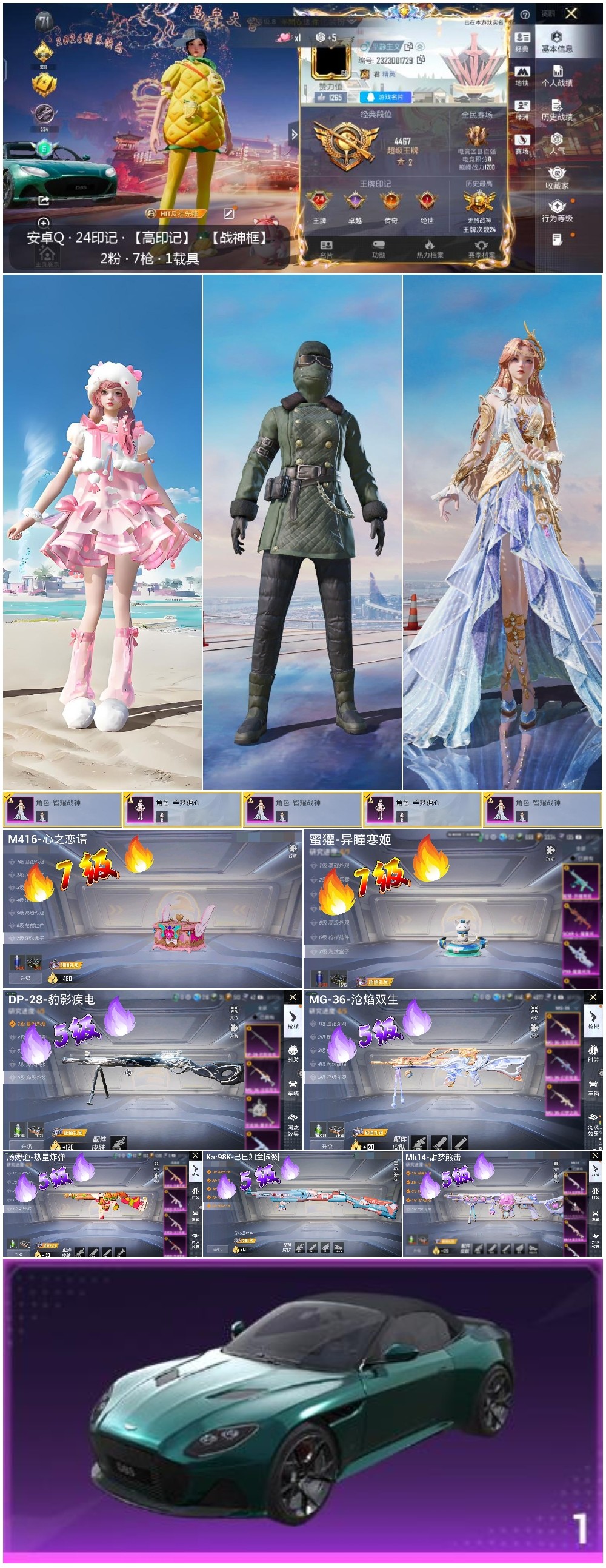 hs60806 安卓手Q-24王牌印记-有战神框-2粉装-7特效枪-1载具-65845热力值-158