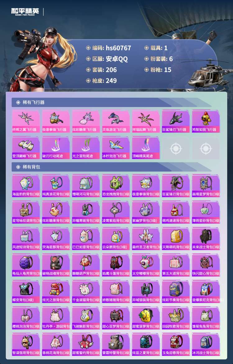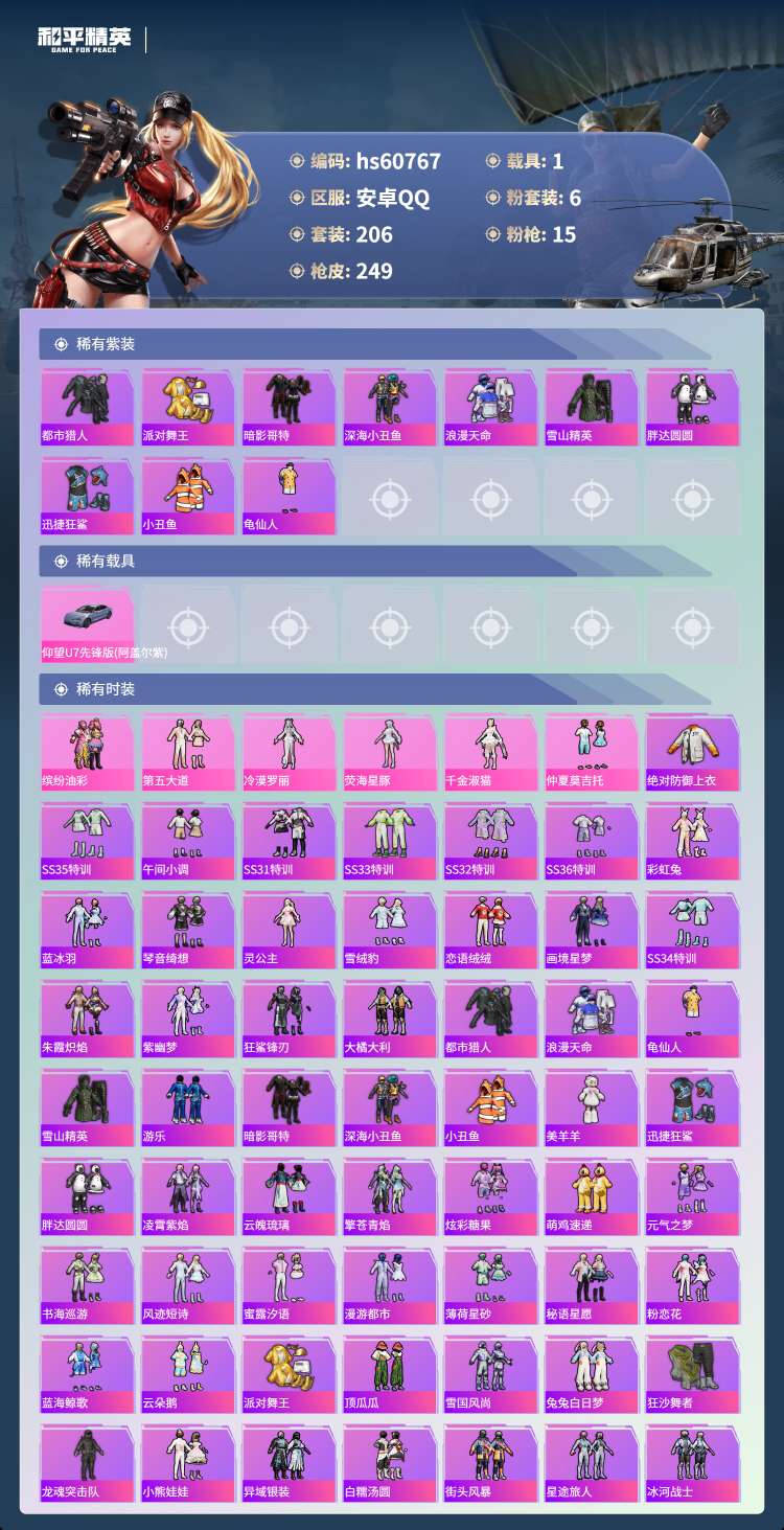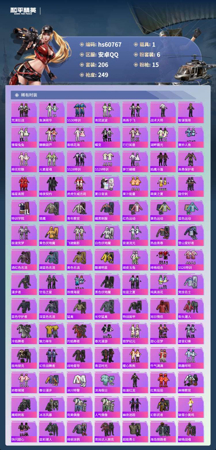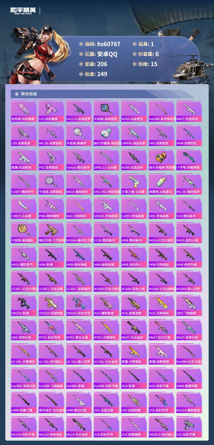 hs60767 安卓手Q-16王牌印记-6粉装-15特效枪-1载具-84966热力值-206套装-2