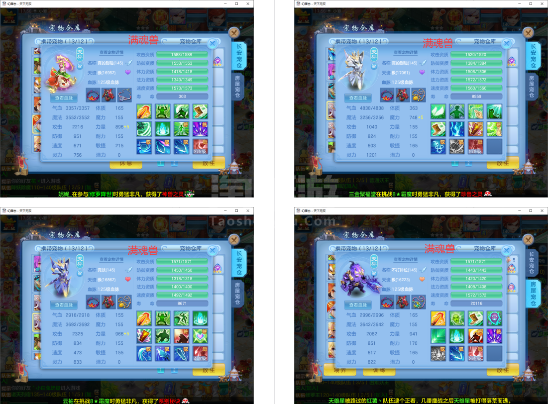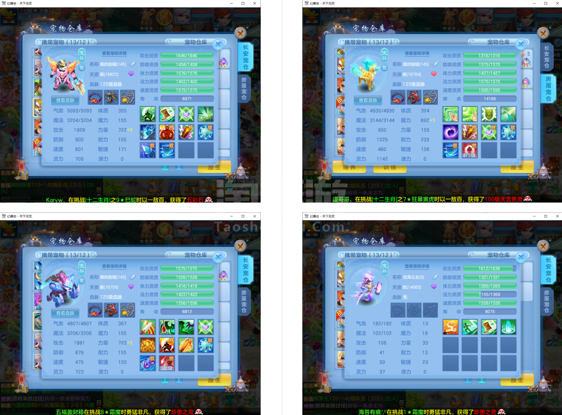 (140天策/男)天下无双/关联300天+/有双重---9个6(4满魂兽+2准满)12红5黄1专属血脉 +13个宝宝皮肤,高级坐骑6染+海景房,1500金子,仓库还有35氪神兽灵+1神兽内丹,3561成就