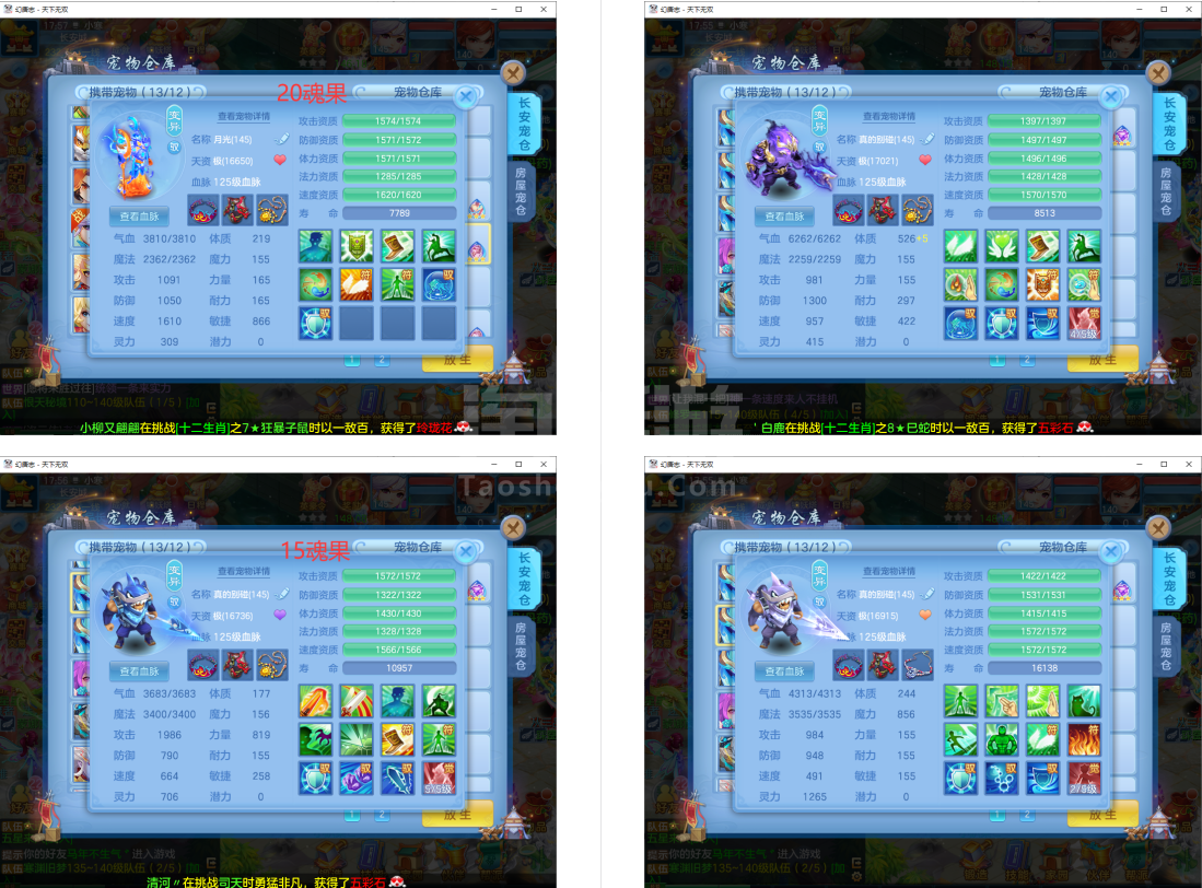 4件14段1件13段1件11段,易成长,9个6多特殊(4满魂兽+2准满),12红5黄1专属血脉 ,13个宝宝皮肤,高级坐骑6染+海景房,1500金子,仓库还有35氪神兽灵+1神兽内丹,3561成就