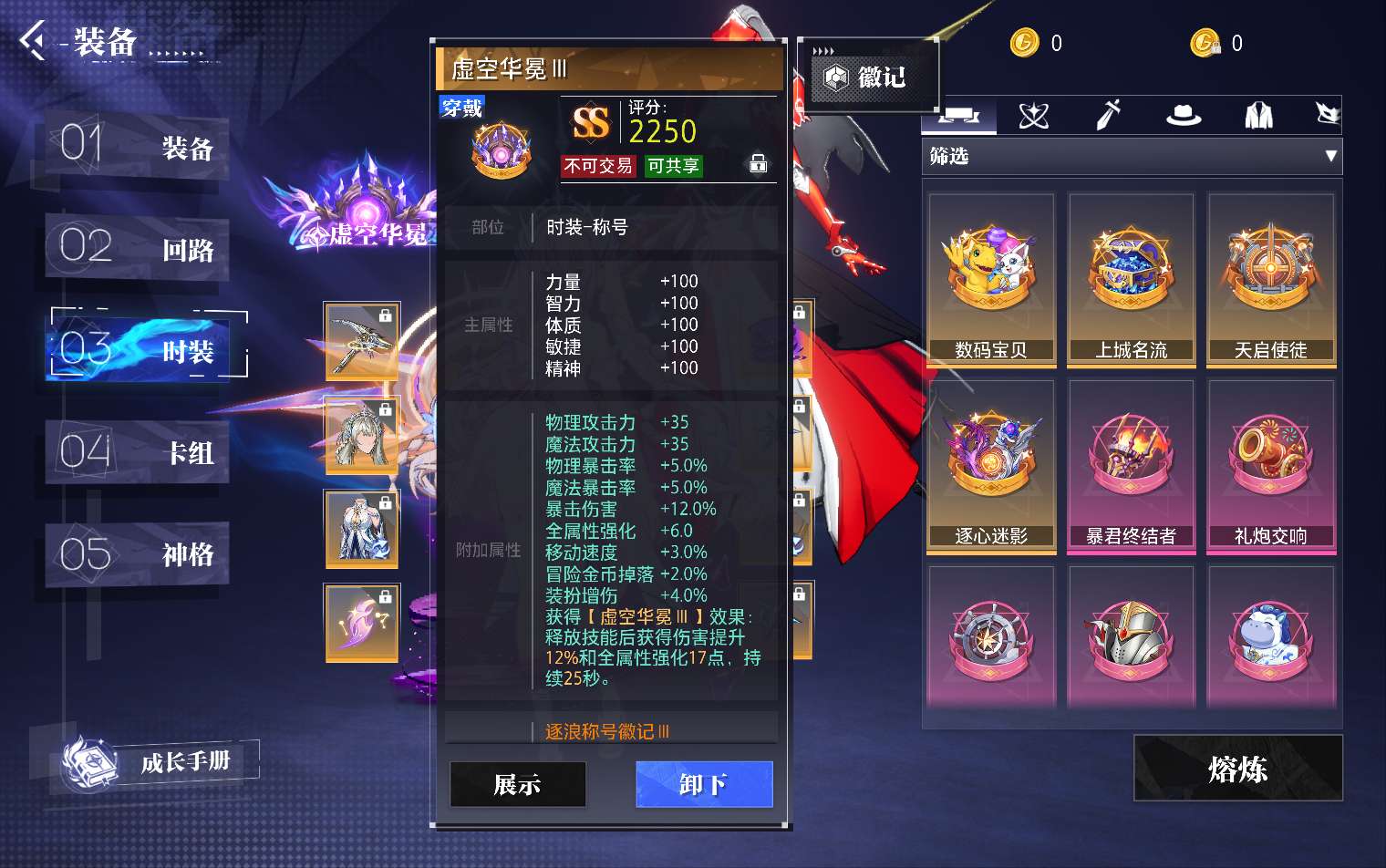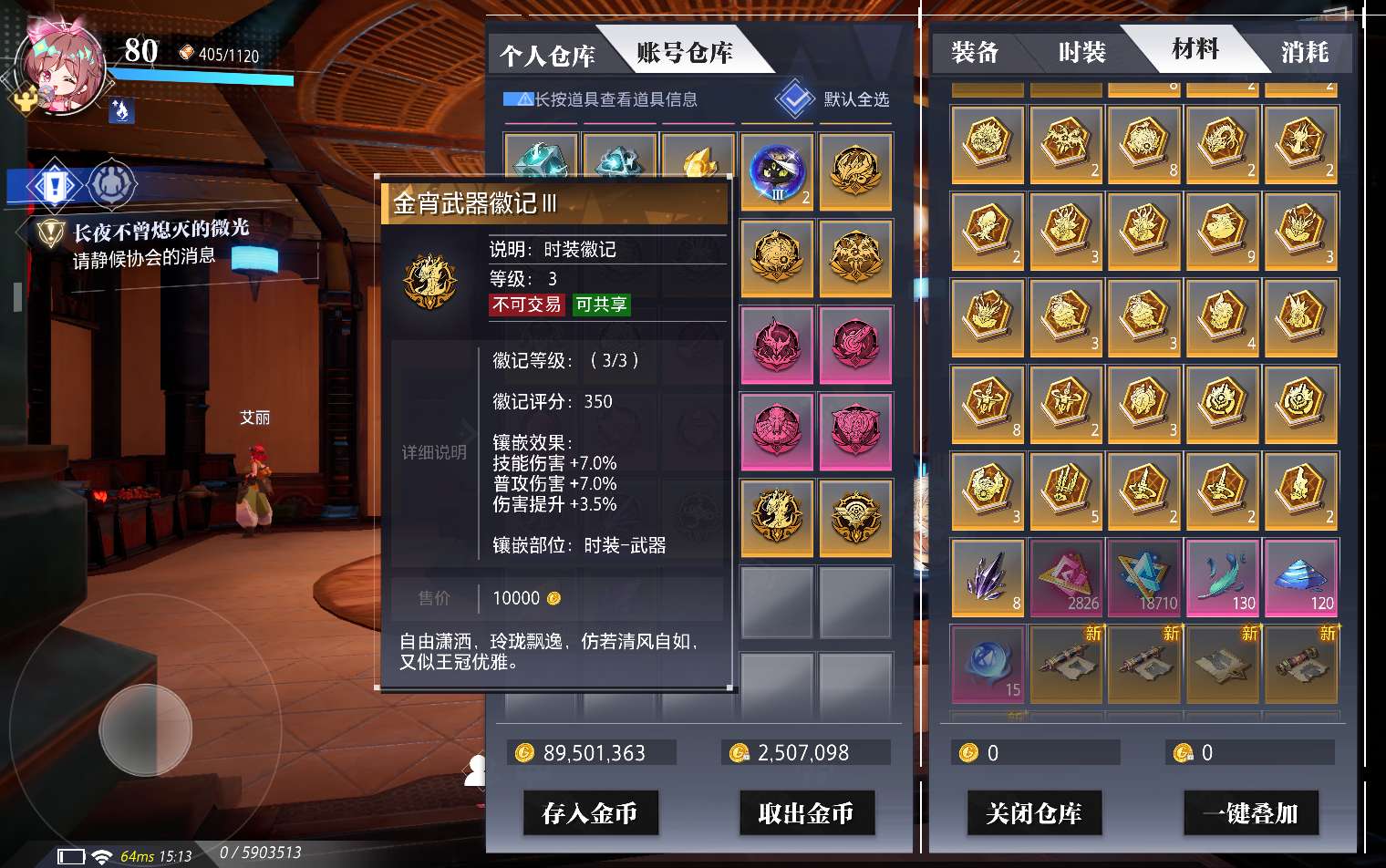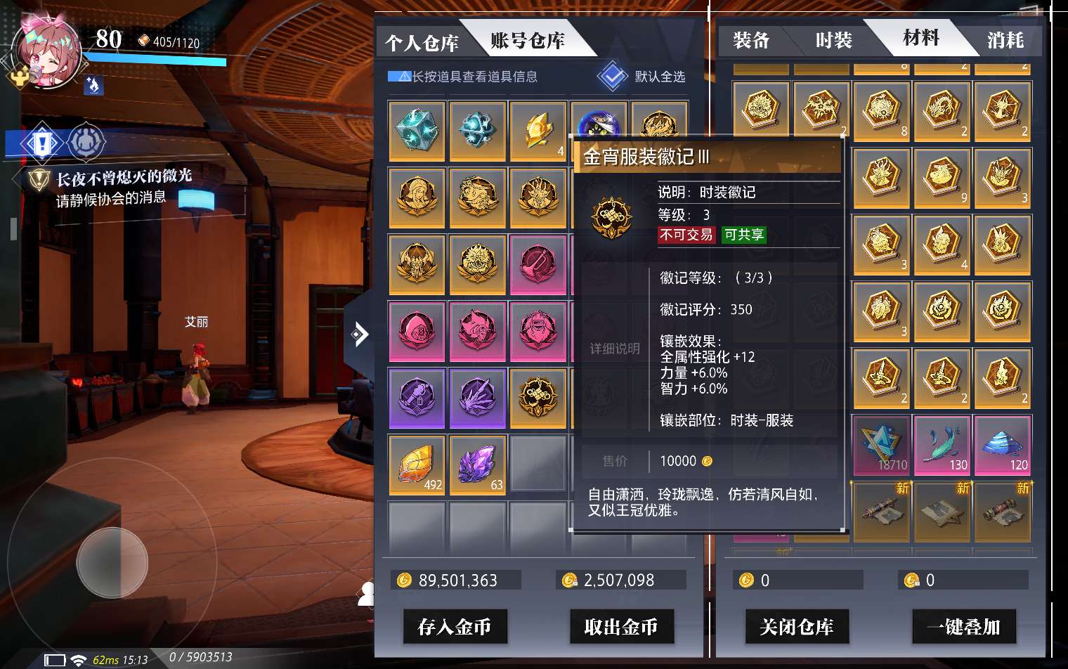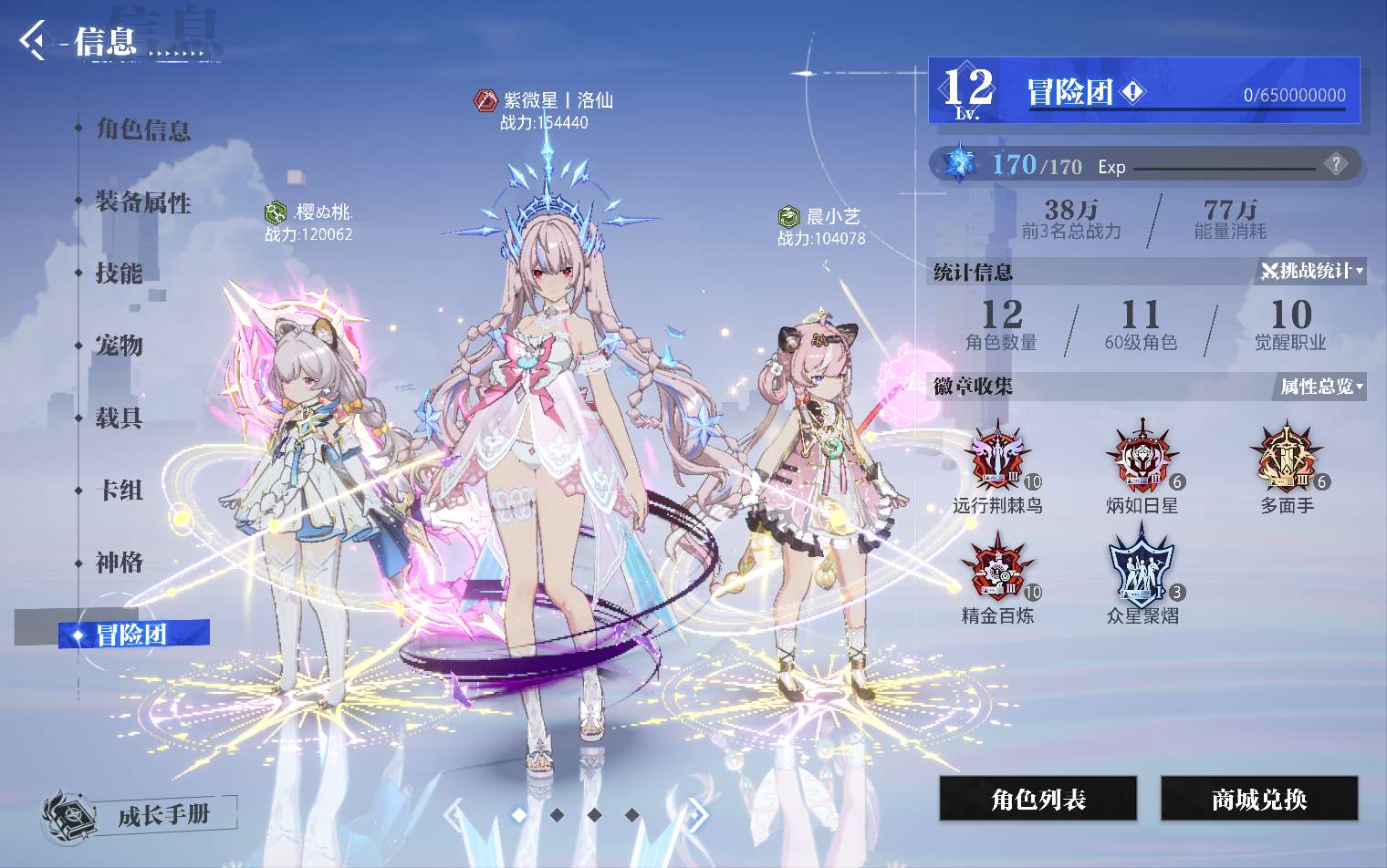 充值23.7万,200多天会员,15万4战力全身徽记满3级,春节套时装徽记满3级还有2500票