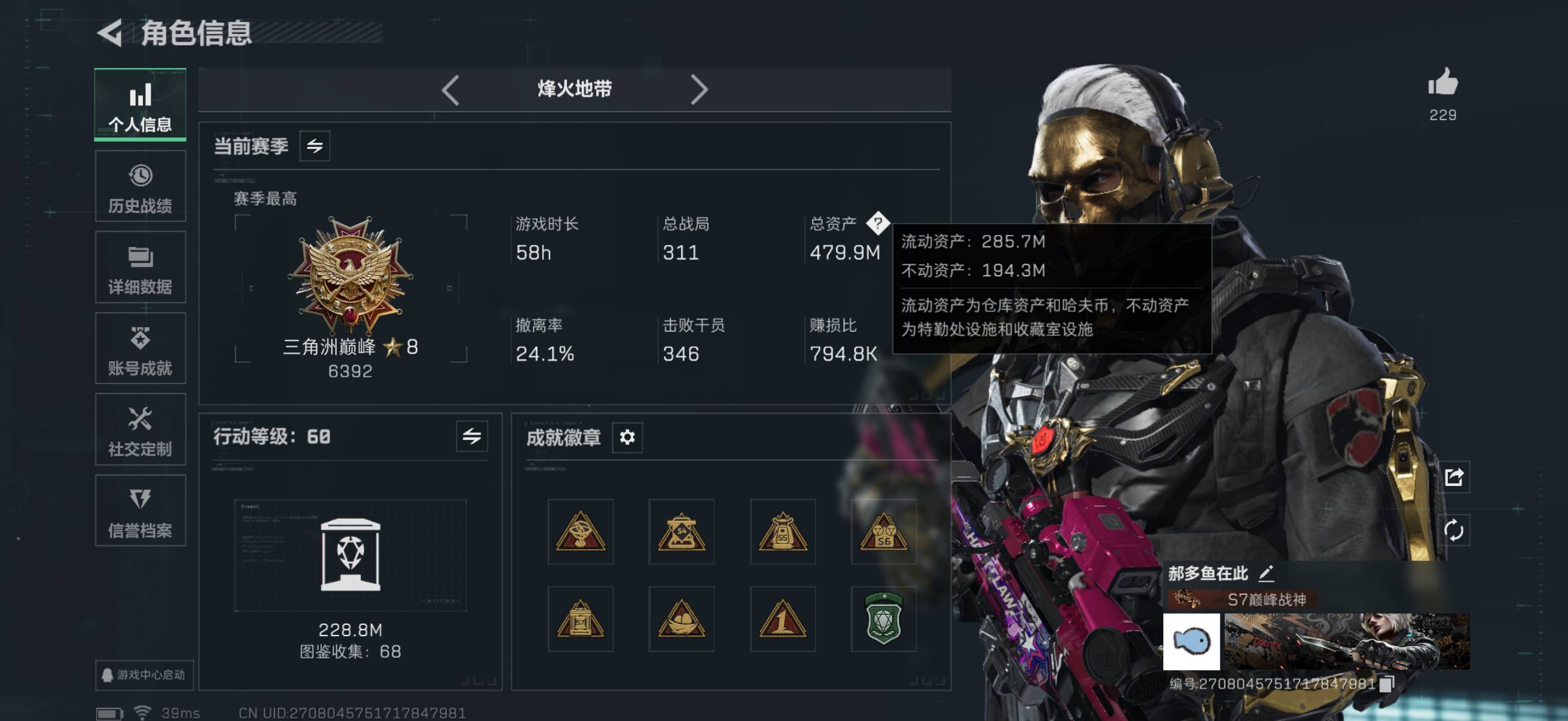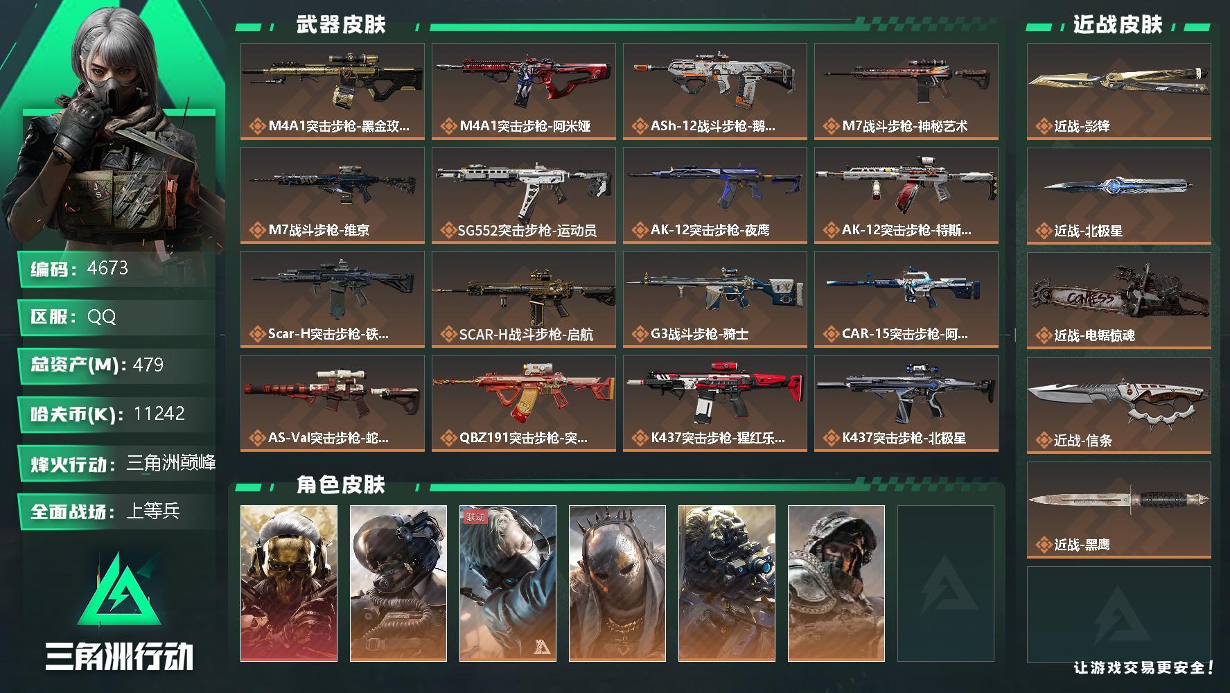 总资产(M):479M/哈夫币(K):11242K/哈夫币(K):11242K/全面战场等级:28_