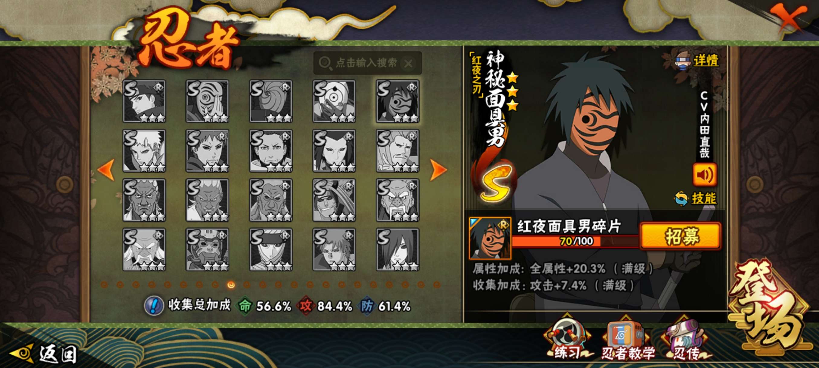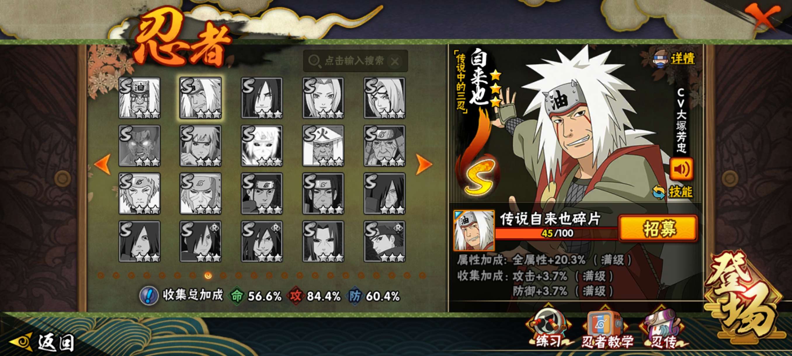 大多数都是有强度的忍者号里还有8000金币和19高招卷材料也攒了两年左右了 还有一些s忍也快肝出来了