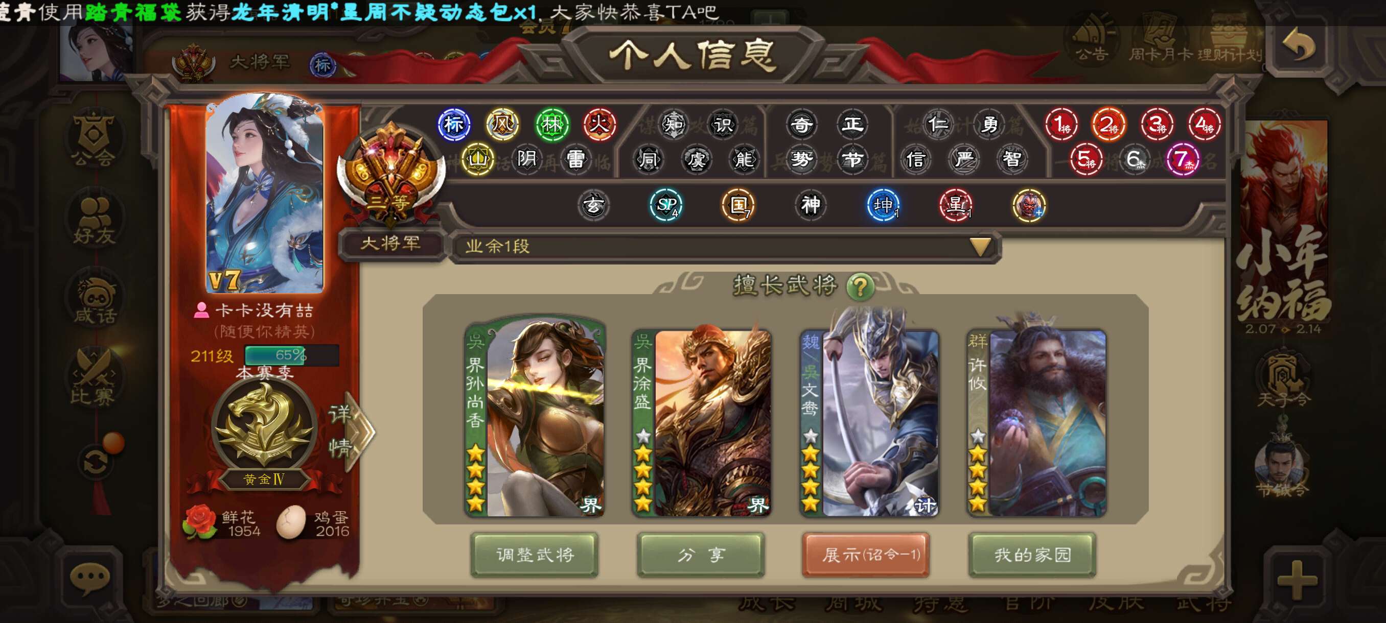全能大将军死绑单人账号,各类武将都有,什么模式都能打,三卡加起来一万六,豆子一万,票子近六万