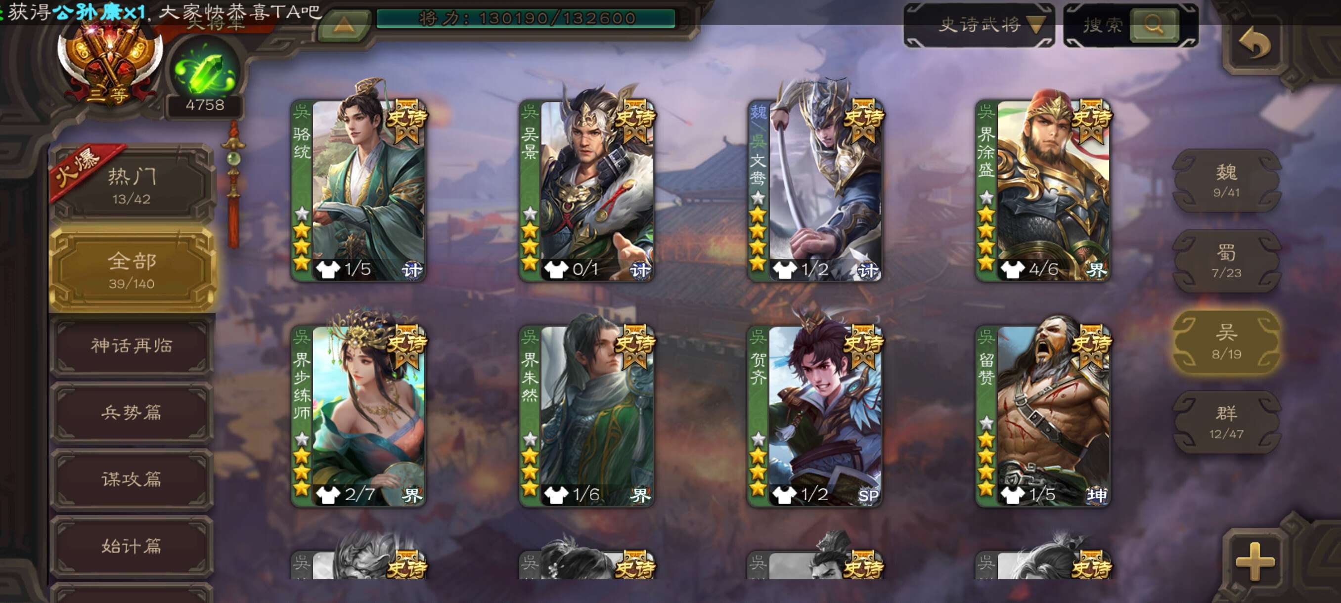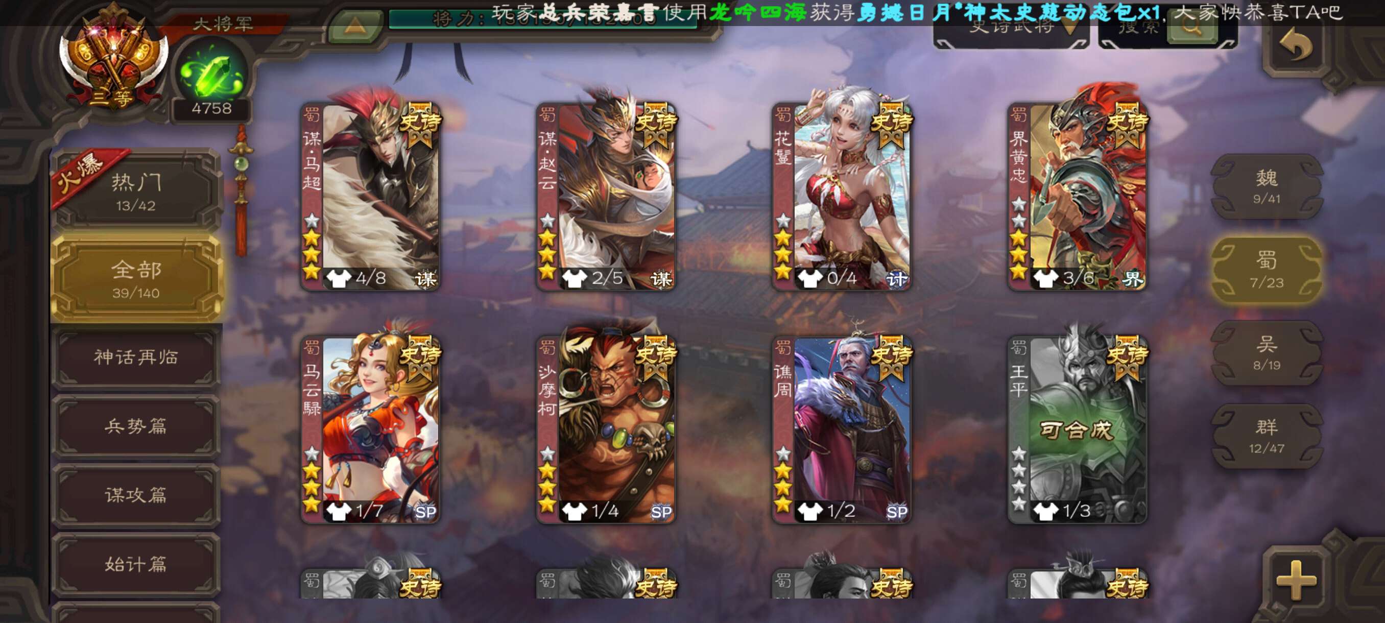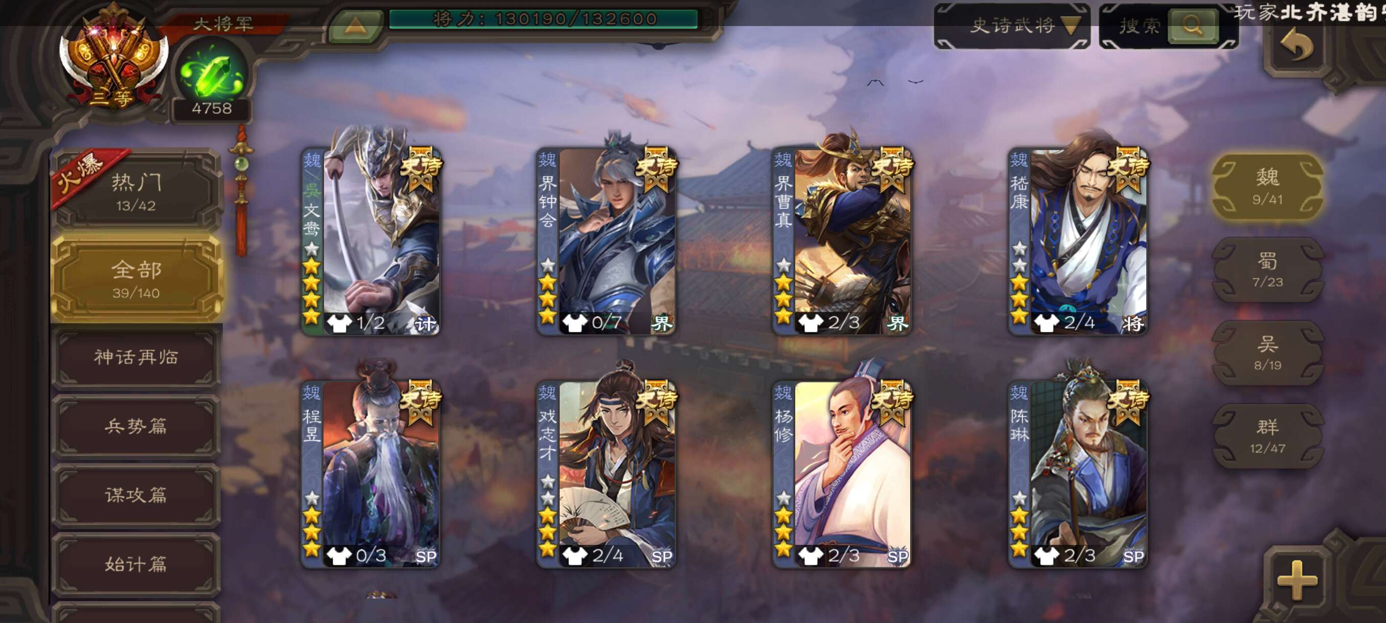 史诗武将数量: