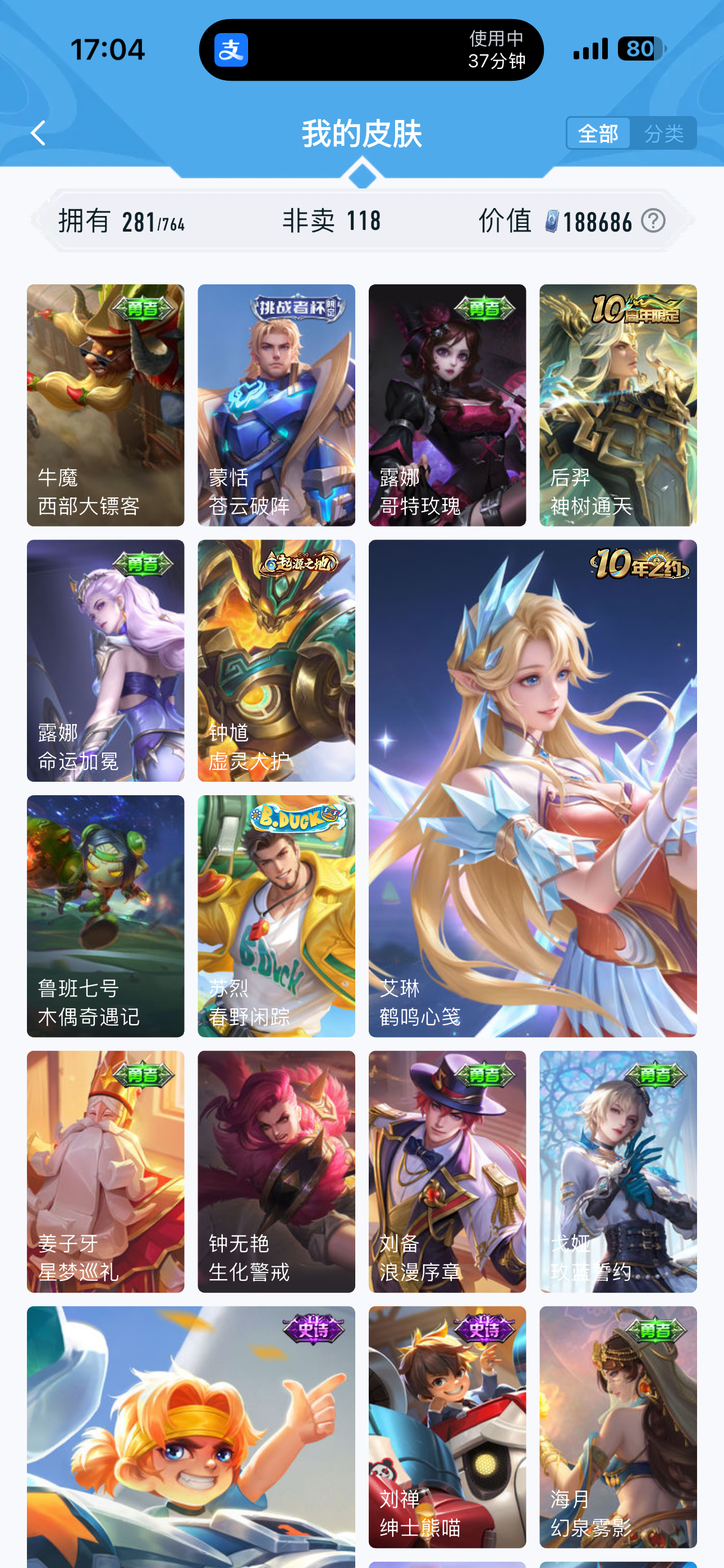 V8 皮肤281 英雄128 绝世王者 荣耀典藏2 星传说1 传说9 其他皮肤277