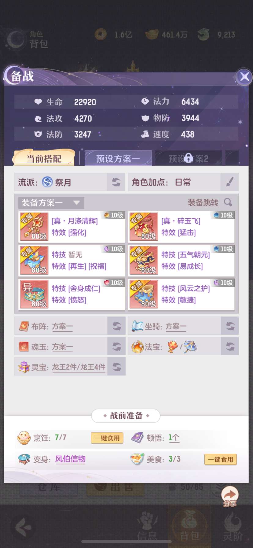 累充7千,7.3战力,4300法攻,11个成品宝宝,猴子和熊猫都有典藏皮,人物有光武仙术典藏坐骑时装