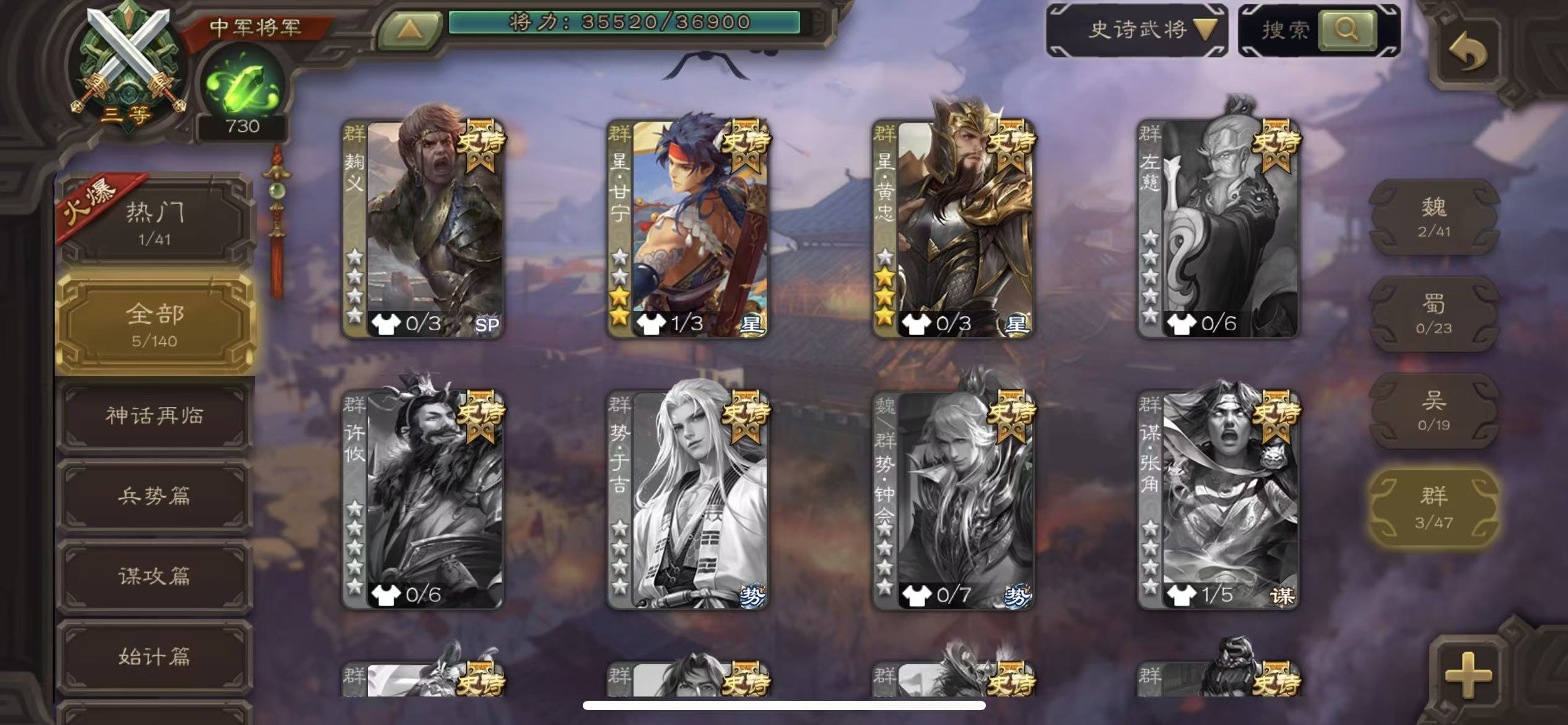史诗武将数量: