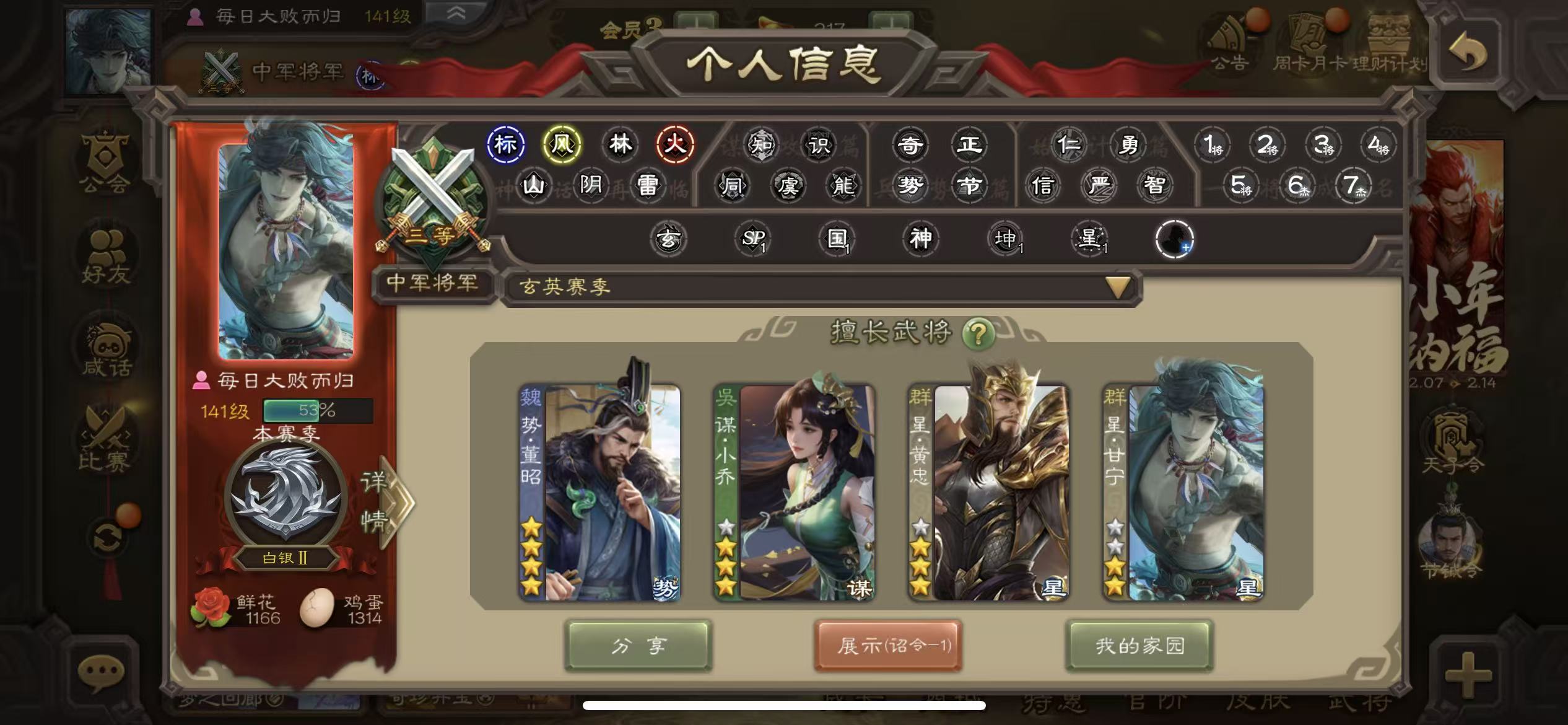 中军5史诗势董昭 动星甘宁 白马 星黄忠三卡