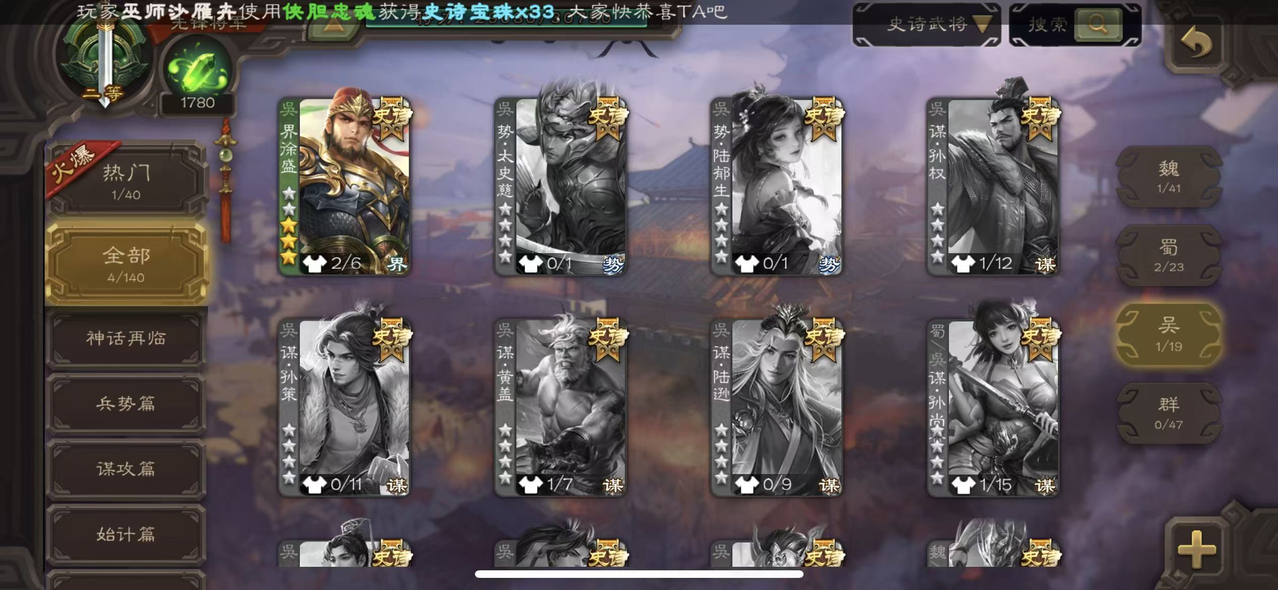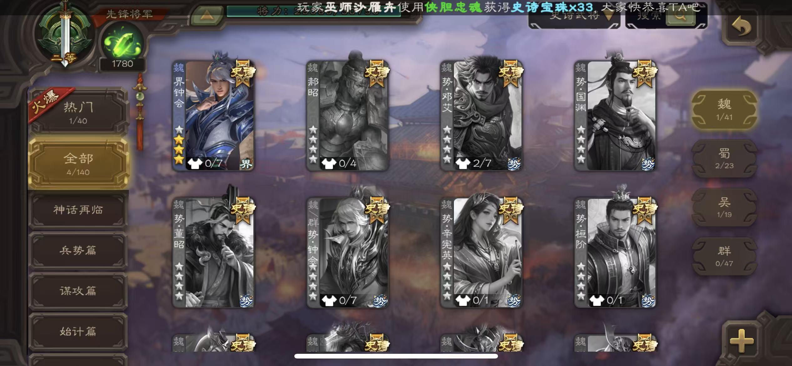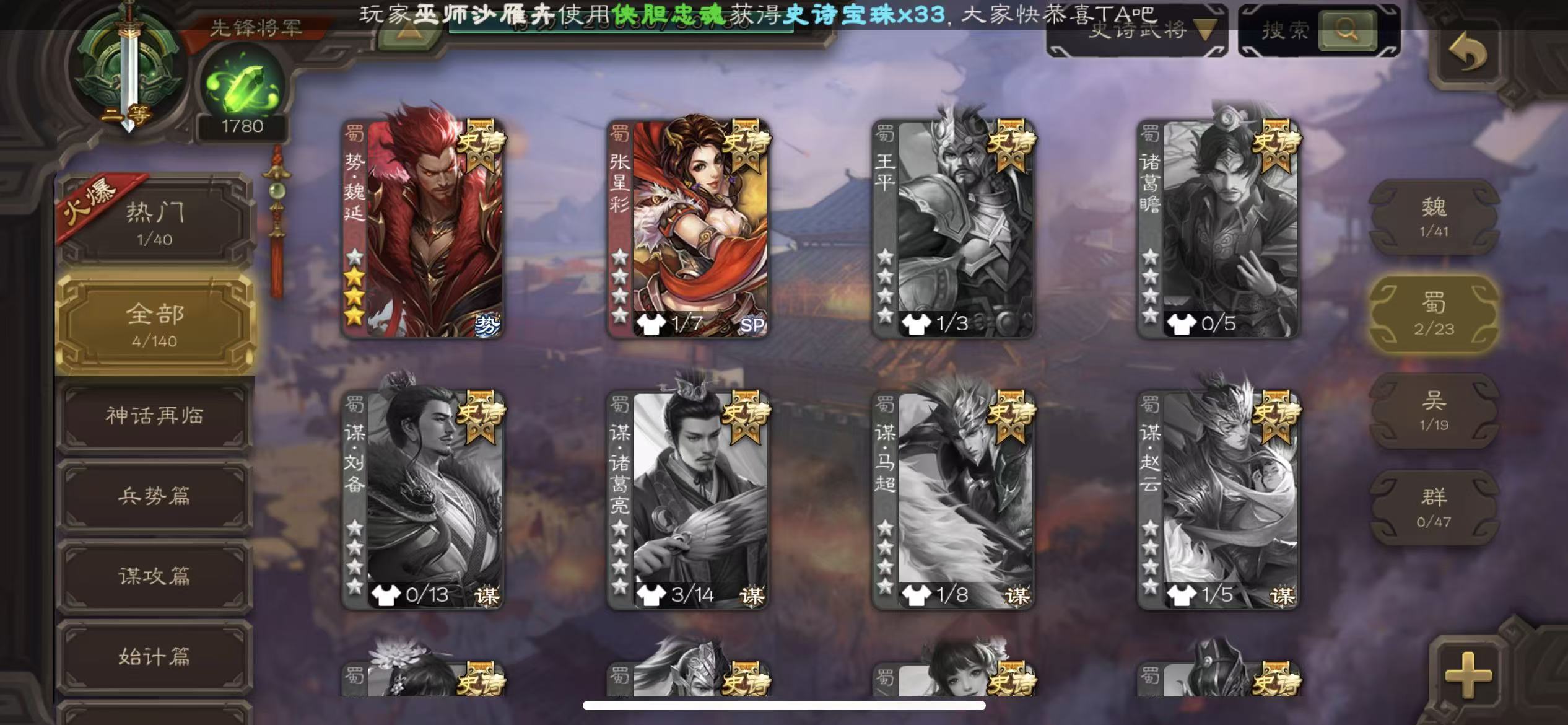 史诗武将数量: