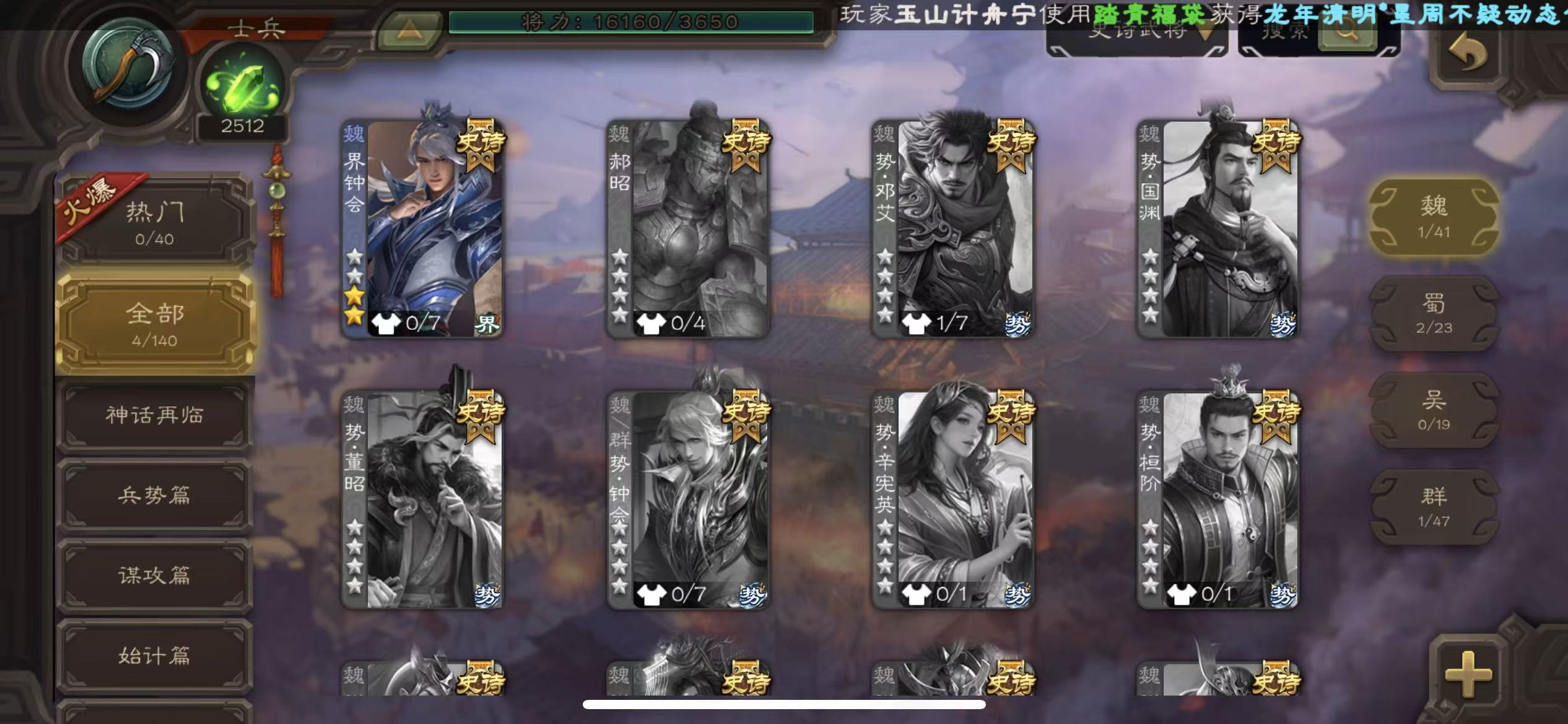史诗武将数量: