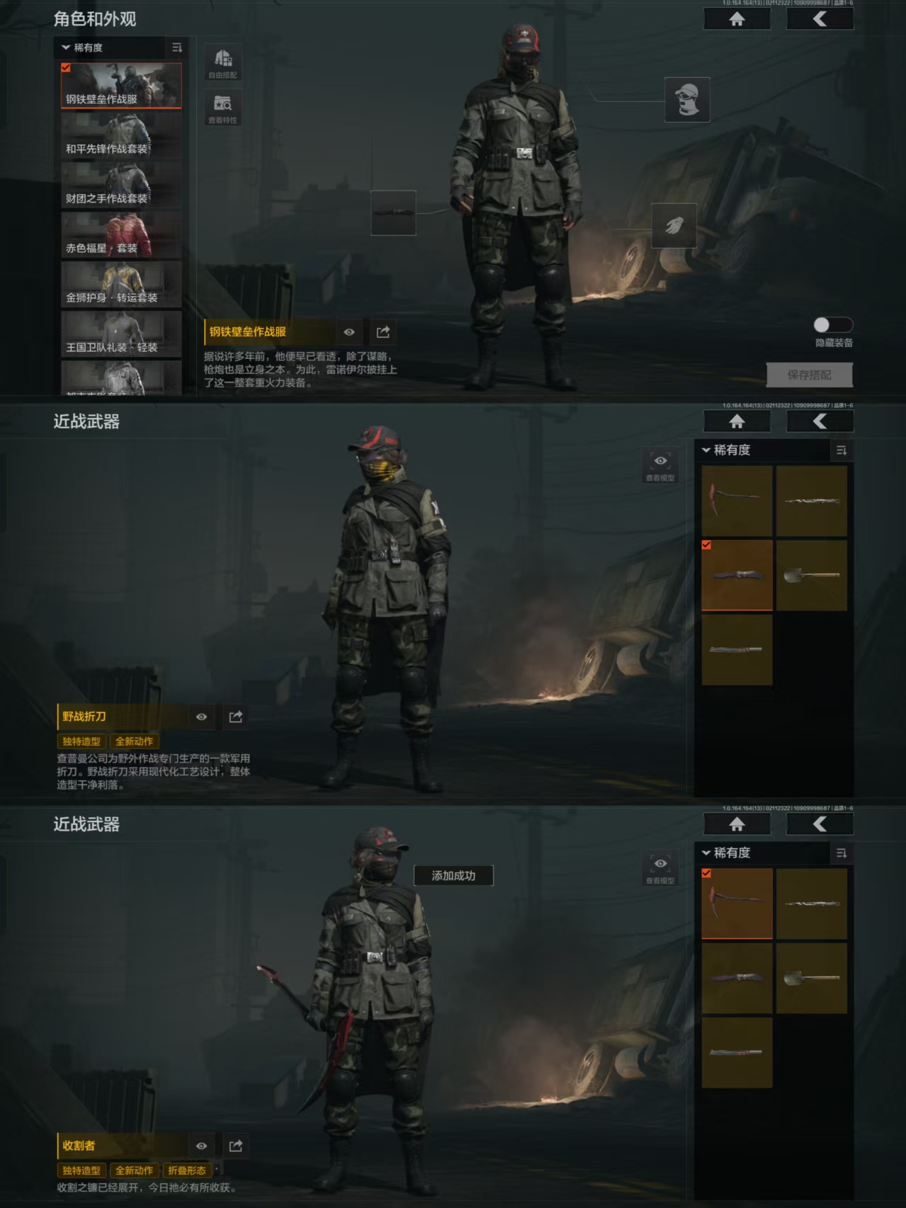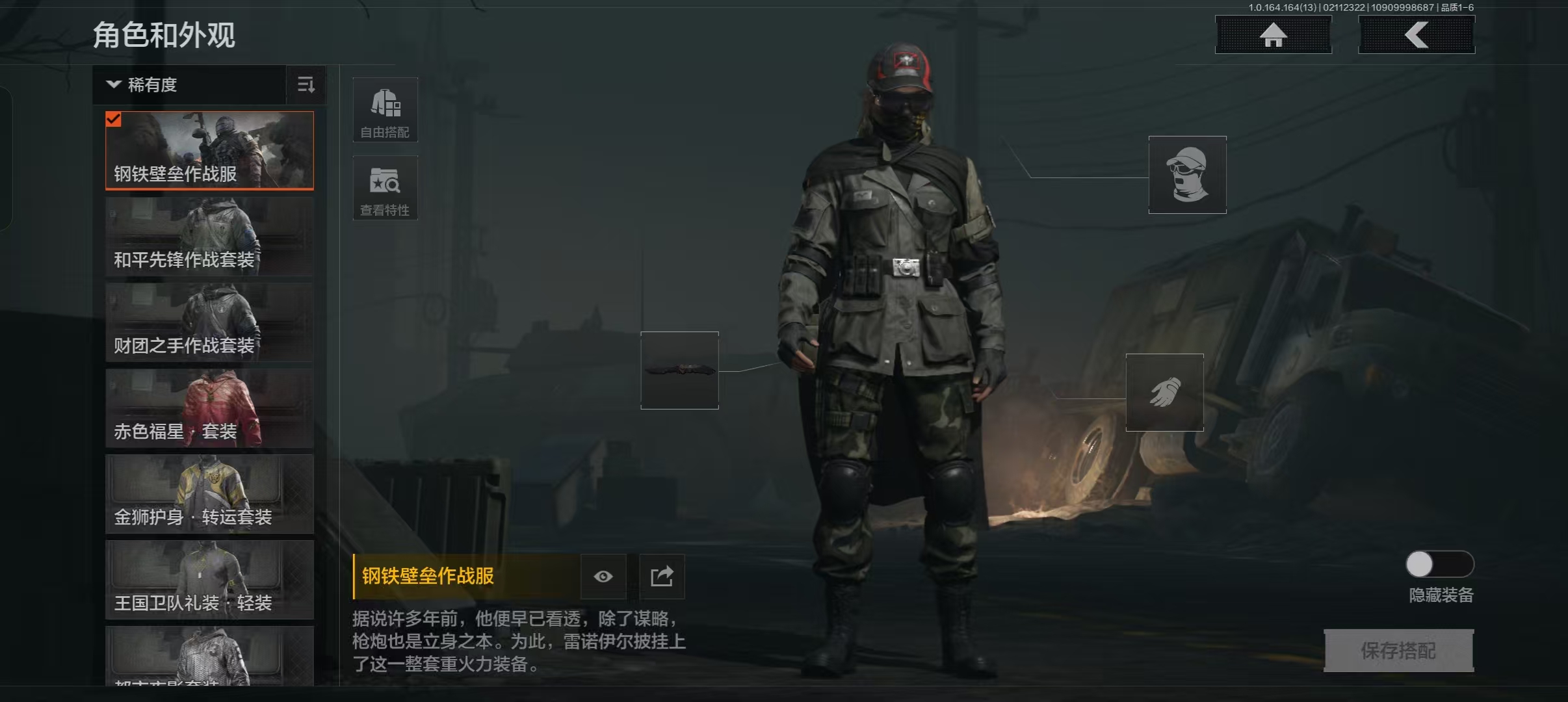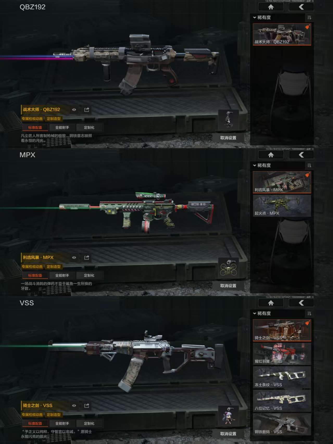 XXTM264安卓Q-等级30-仓库价值56.5m-科恩币2215K-【套装】钢铁壁垒作战服 和平先锋作战套装 财团之手作战套装 赤色福星·套装 金狮护身·转运套装 王国卫队礼装轻装 都市夜影套装【枪皮】林中人·FAL 告丧夜曲·AR57 旗帜·AEK 战术大师·QBZ192 利齿风暴·MPX 骑士之剑·VSS 近卫荣誉·RPK16 【近战武器】野战折刀 收割者 盘牙·彻甲短刀 来战·开山刀 工兵铲