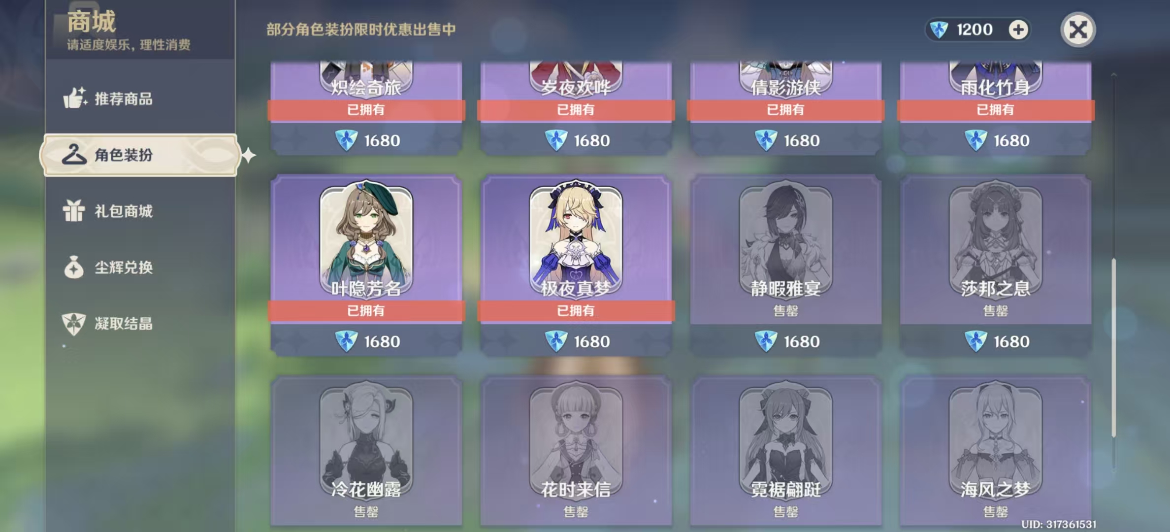 2命辅助,希诺宁,奶奶,申鹤,万叶。