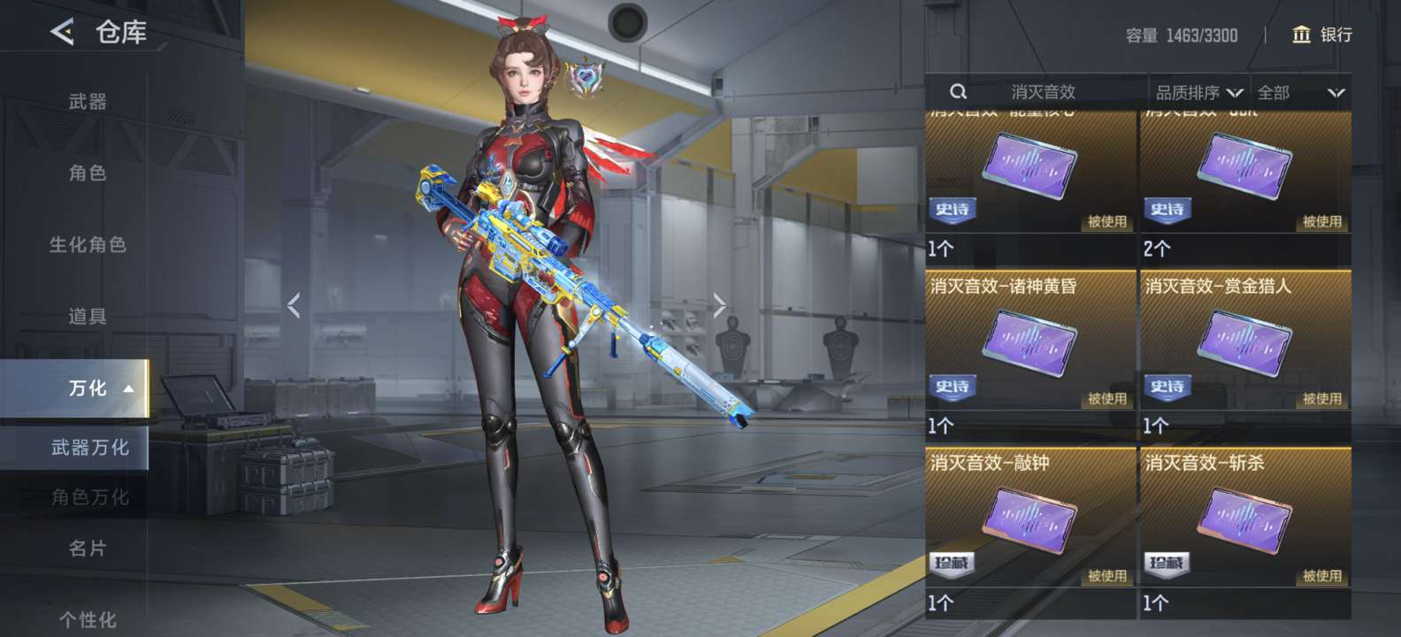 武器多,皮肤多,枪线音效卡也多,还有两个冰皮自选卡,赏金令主武器全有