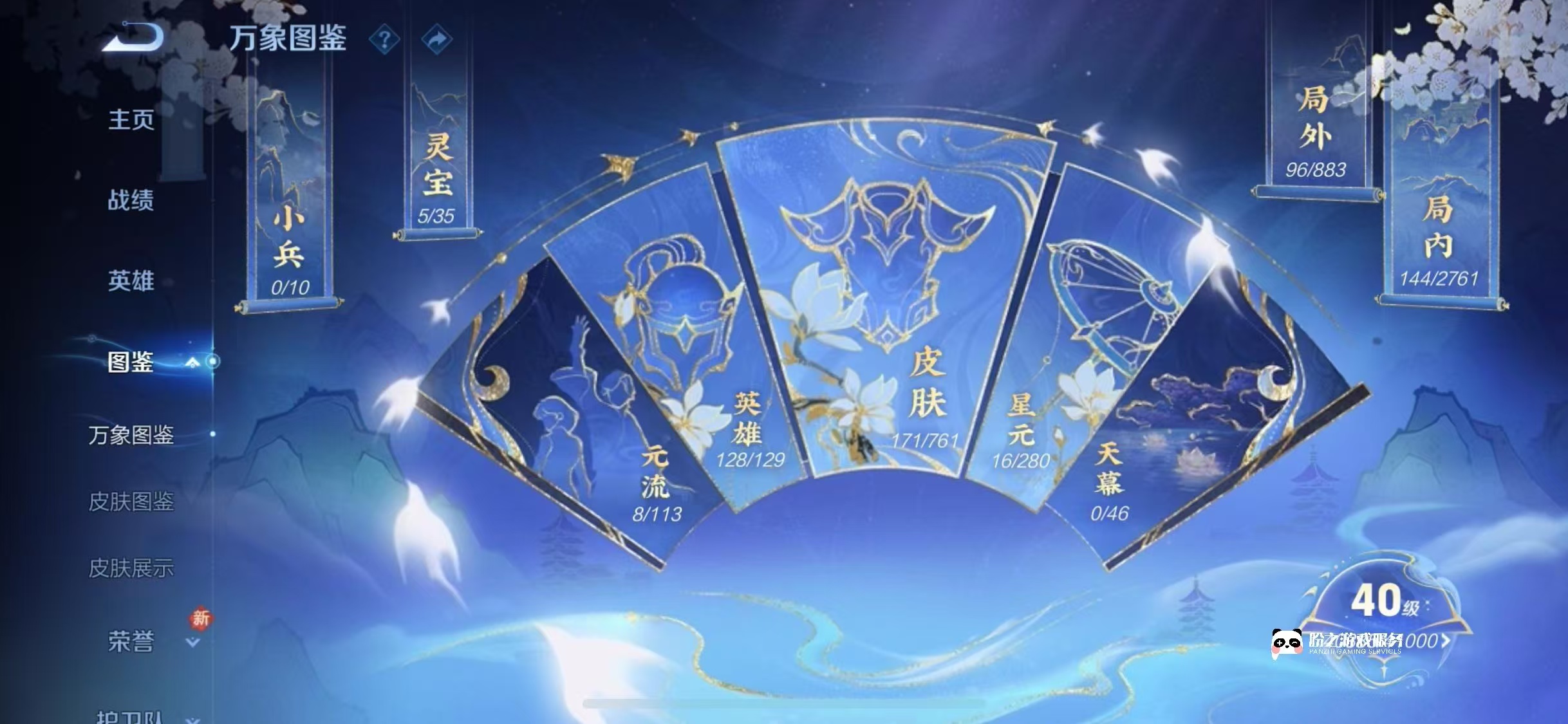 贵族8 荣耀典藏1 珍品传说1 星元皮肤1 传说皮肤14 星元套装5 史诗皮肤46皮肤数171