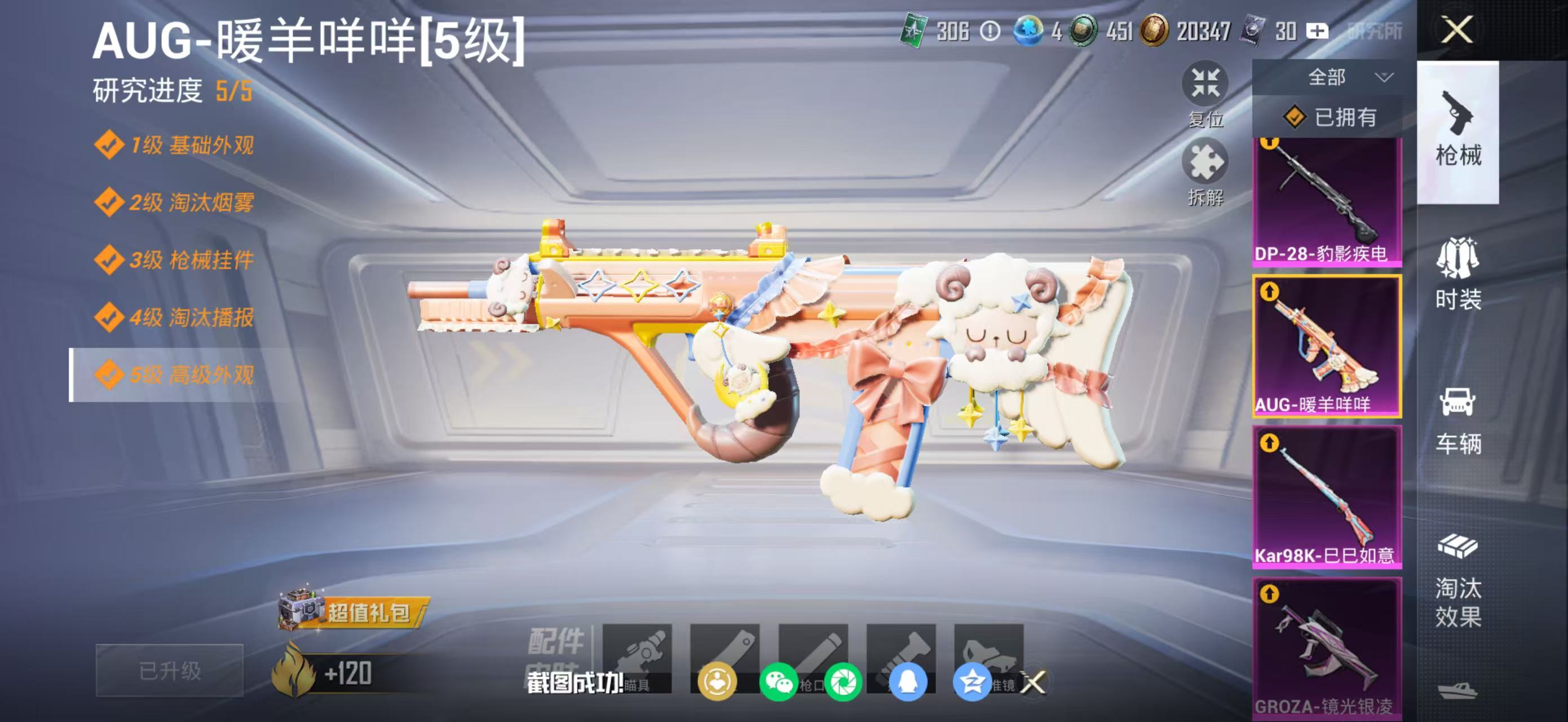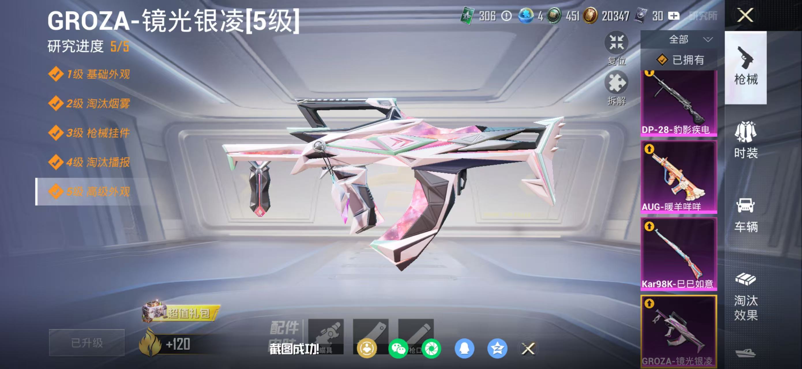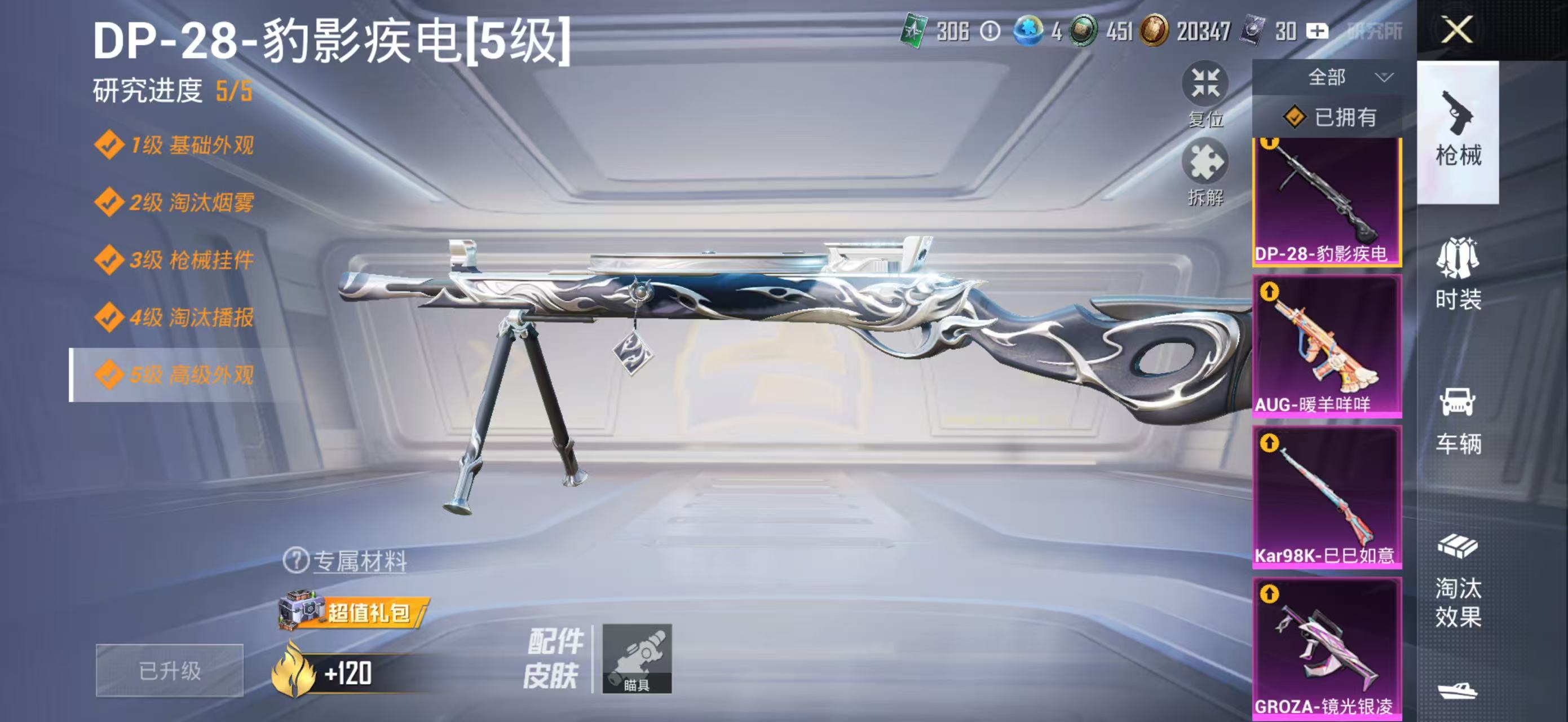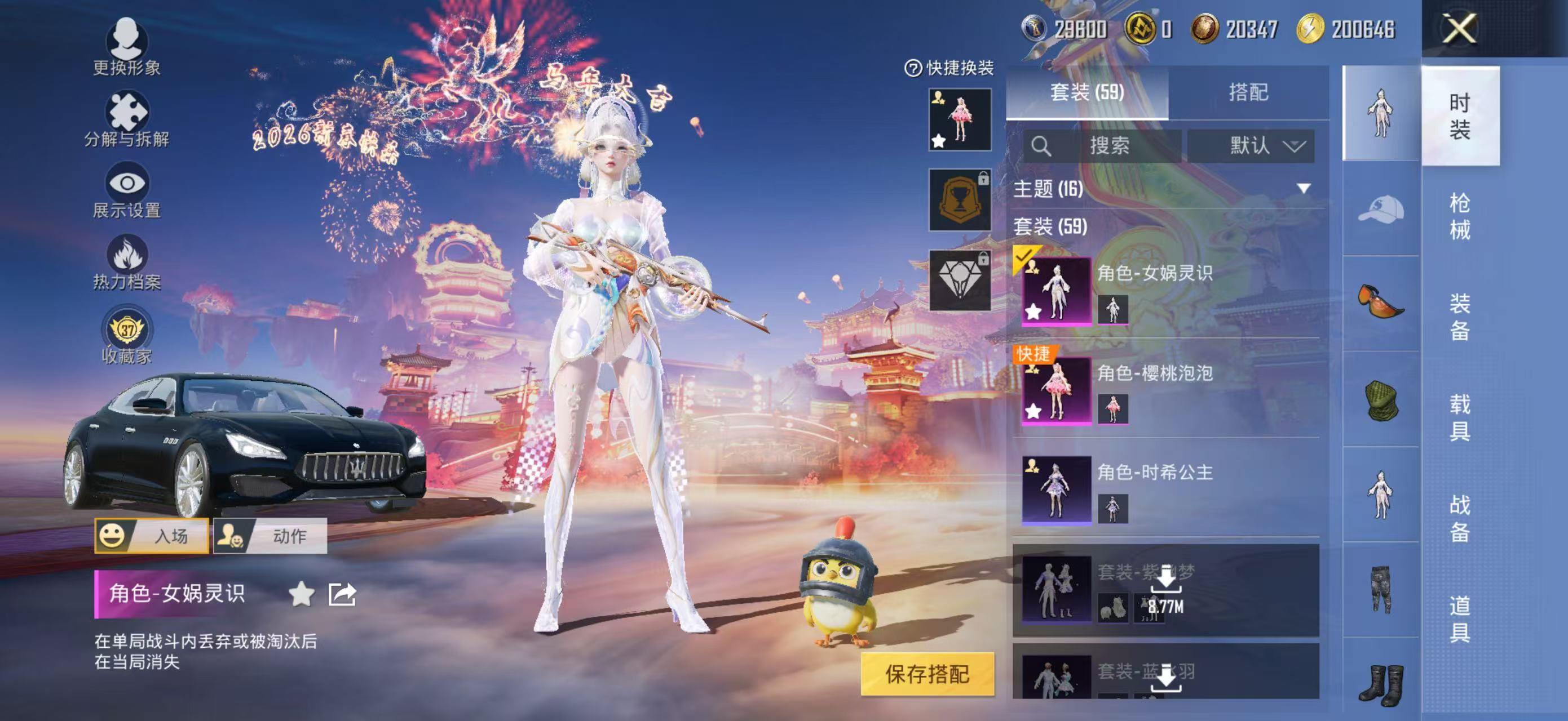 苹果Q区,一辆载具玛莎拉蒂,四把升级枪,两个粉装,一套身法衣很多降落伞详细自己看