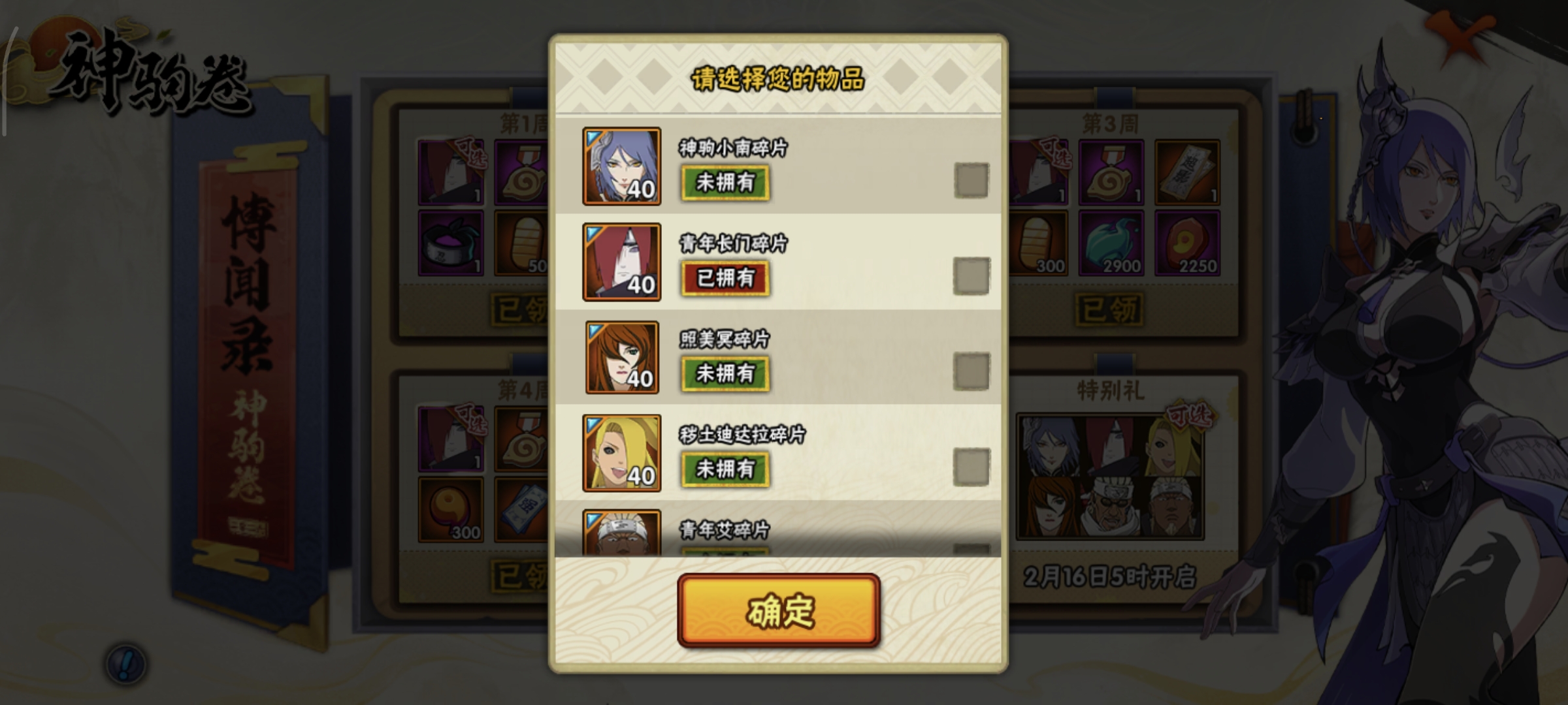 上过超影的高战力号,上线领取神驹小南,298忍者有两个,9S忍者,其余S忍A忍碎片也有很多,可商量