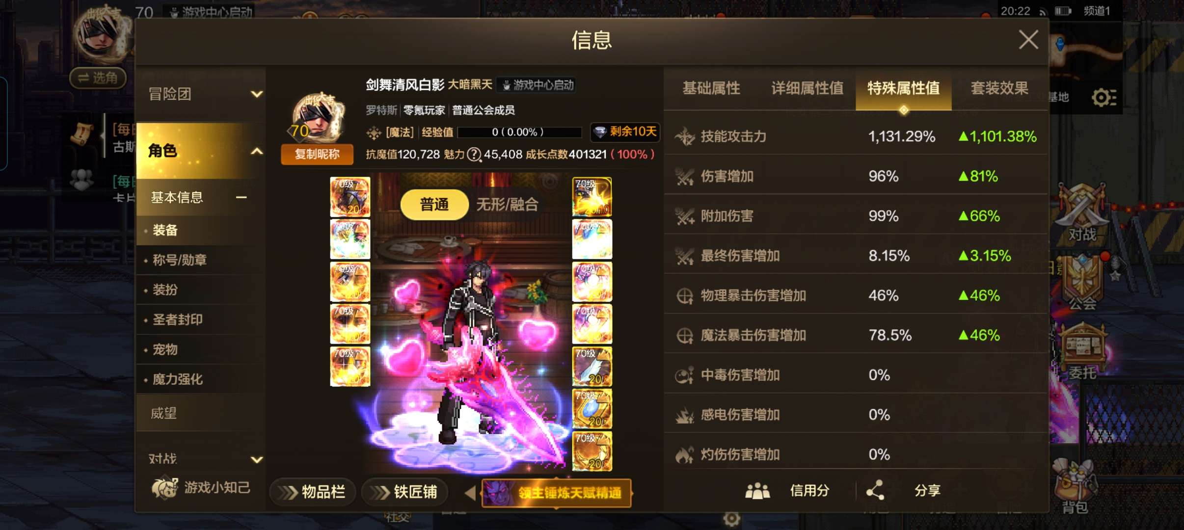 增幅10+8 泰拉把武器装扮卖掉能有120w了,别的自己看,大过年的没空玩!