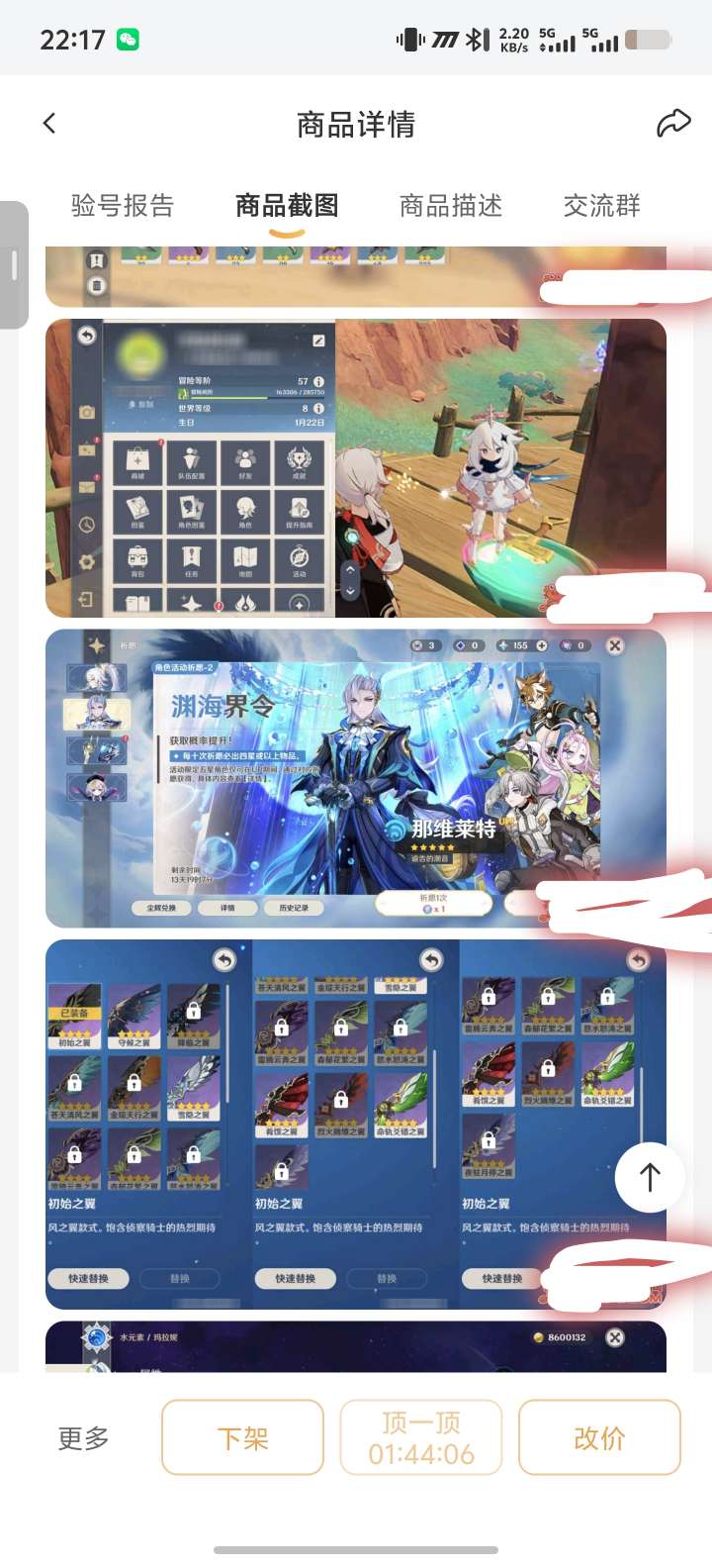 通过App,与卖家商议价格及保险,并向卖家索要账号最新截图,确认后下单购买。