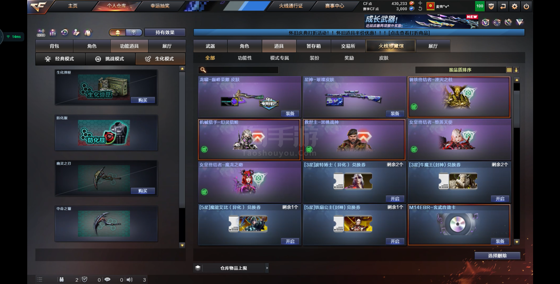南部湖北一区 爆破生化挑战全满套 号内带43wcf点 详情看图 需要咨询客服