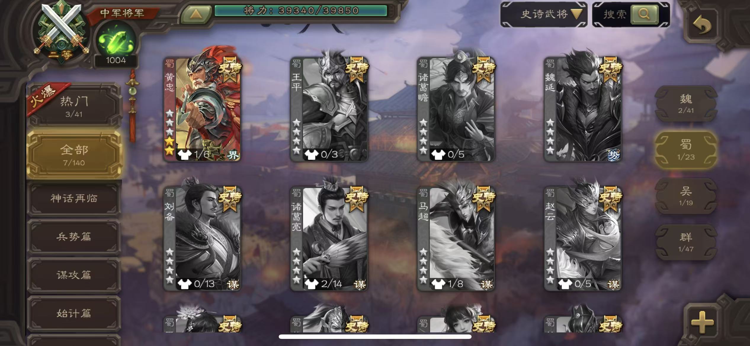 史诗武将数量: