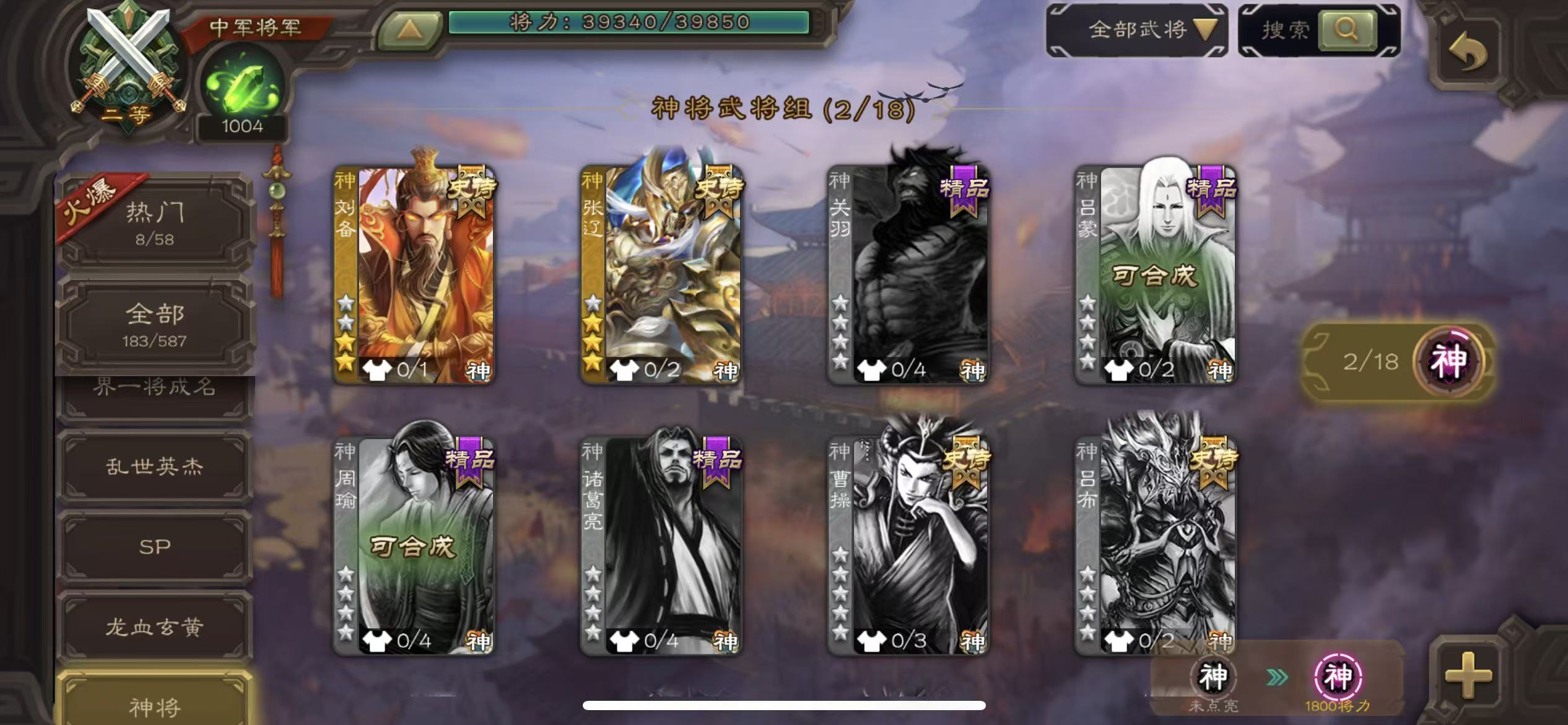 中军玉龙曹髦界左慈吴景界黄忠程昱神张辽神刘备7史诗动态天子令sp赵云谋夏侯渊势夏侯尚张春华谋张飞诸葛果乐就