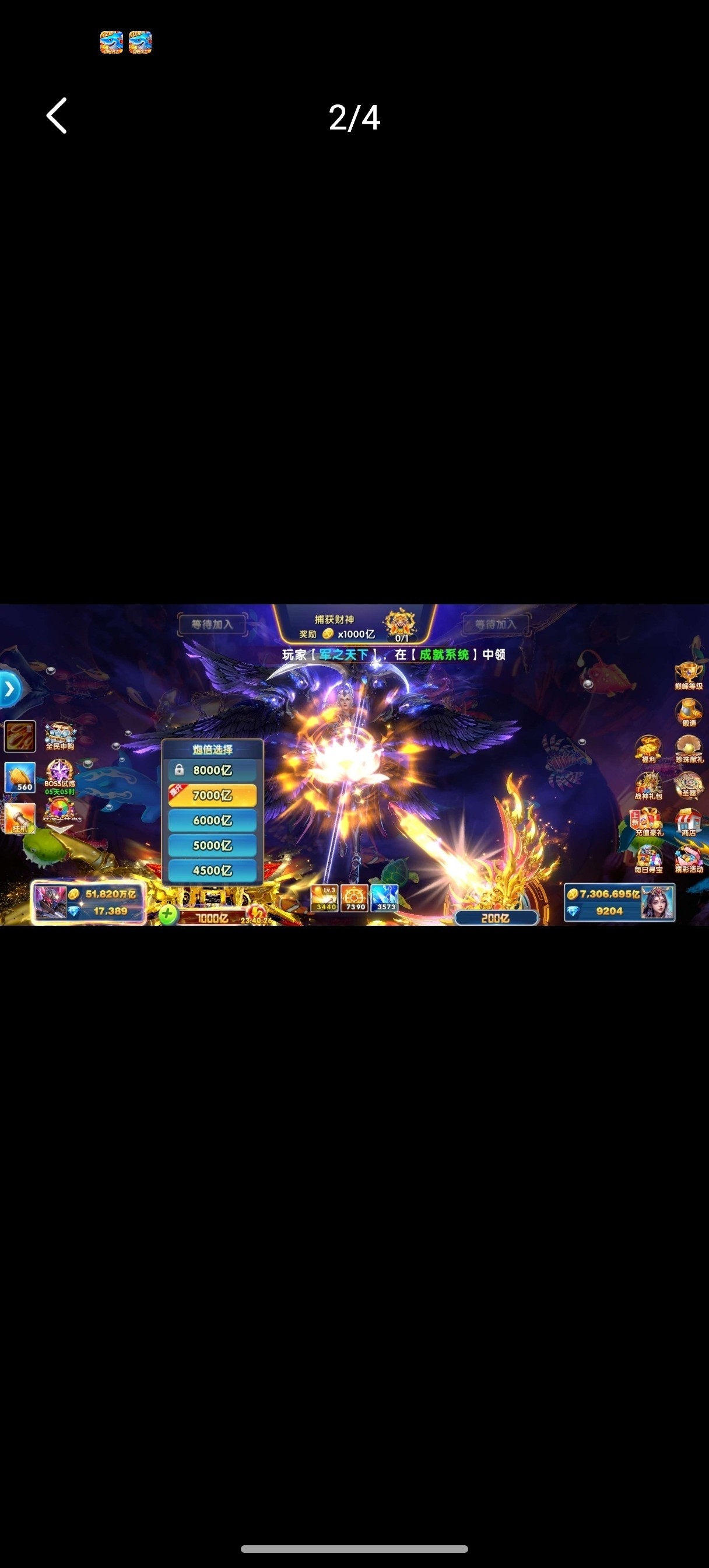 捕鱼大作战小米版本,原60亿炮,金币5.1兆,巅峰7级,破产回15,低价出售。