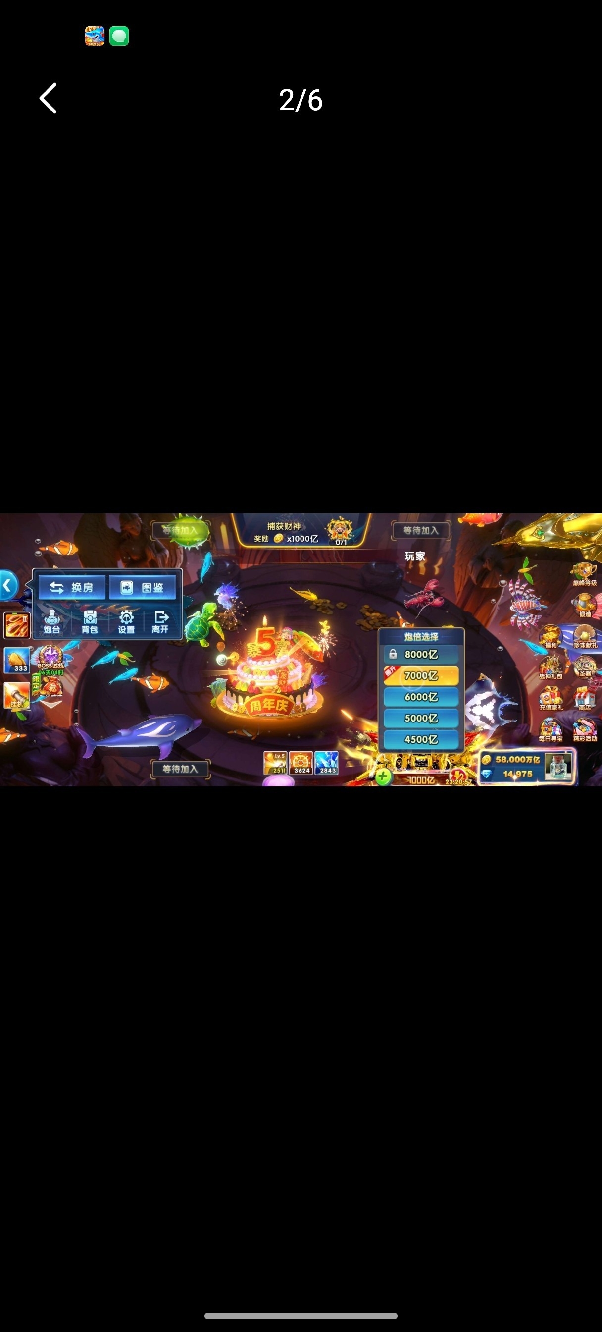 捕鱼大作战小米版本,原60亿炮,金币5.8兆,巅峰10级,破产回15,低价出售。