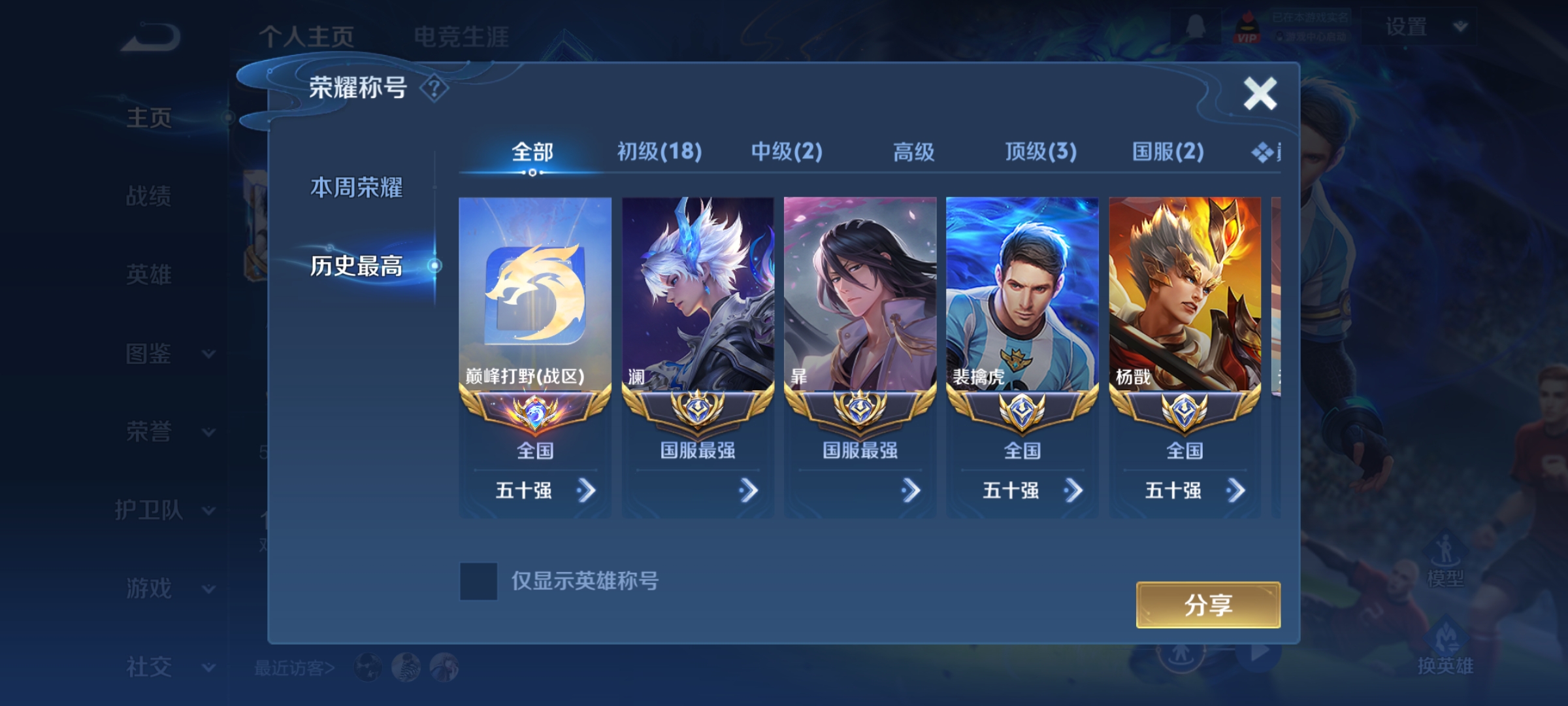 全国50强巅峰野王,1.8w大国澜,1.8w大国暃,1.8w老虎梅西,1.7w永曜之星