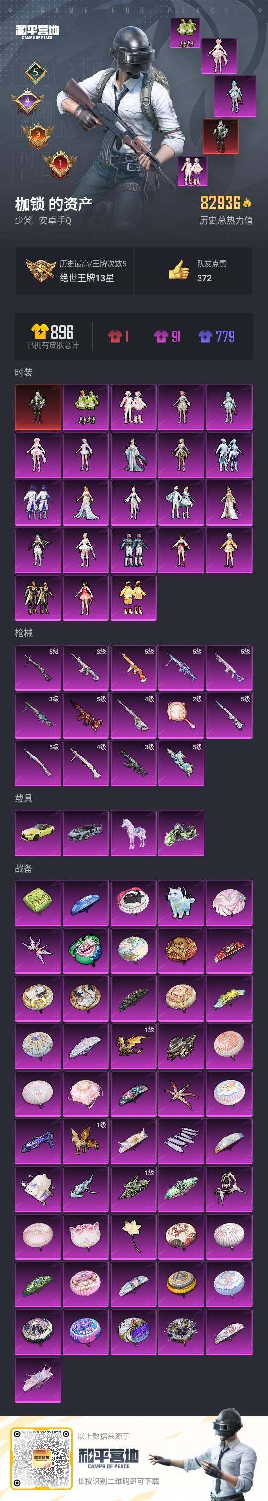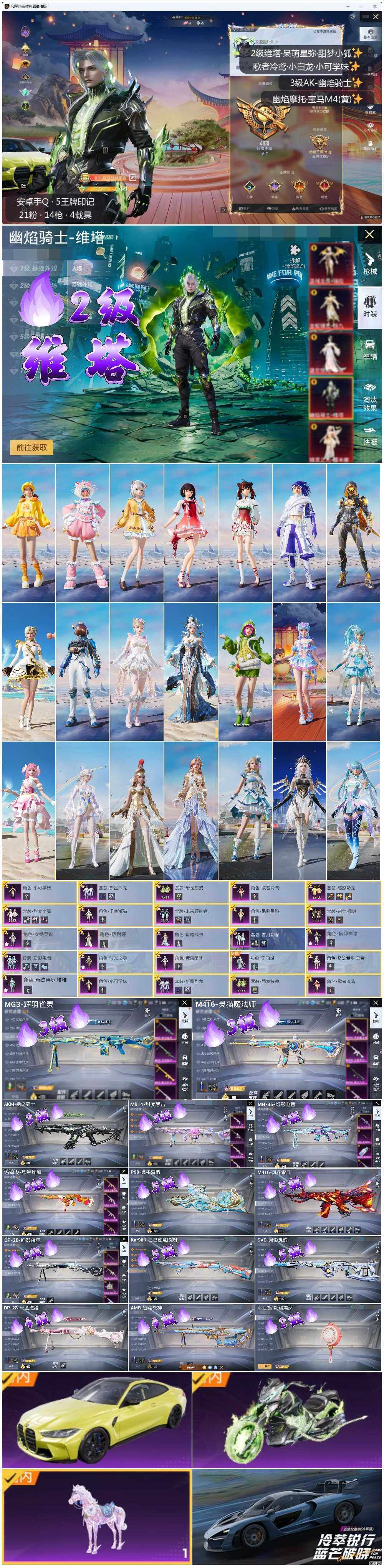 绝世印记1【暑期末清货/特价急出/永久包赔】:安卓 手Q-1红装-22粉装-14特效枪-4载具-8.2w热力值-5印记-128套装-227枪皮【角色神装等级】:幽焰骑士-维塔(二级)【稀有载具】:宝马M4(圣保罗黄),迈凯伦塞纳(冷萃蓝),幽焰风驰摩托车,晶梦灵驹【特效枪等级】:AKM-幽焰骑士(三级),M416-风花雪月(五级),M416-灵猫魔法师(三级),汤姆逊-热量炸弹(五级),P90-