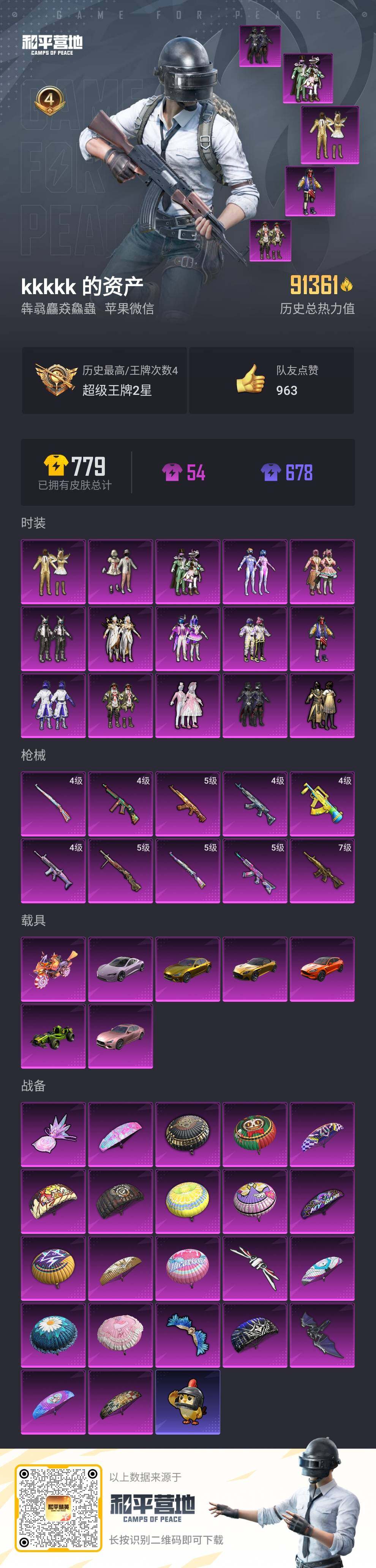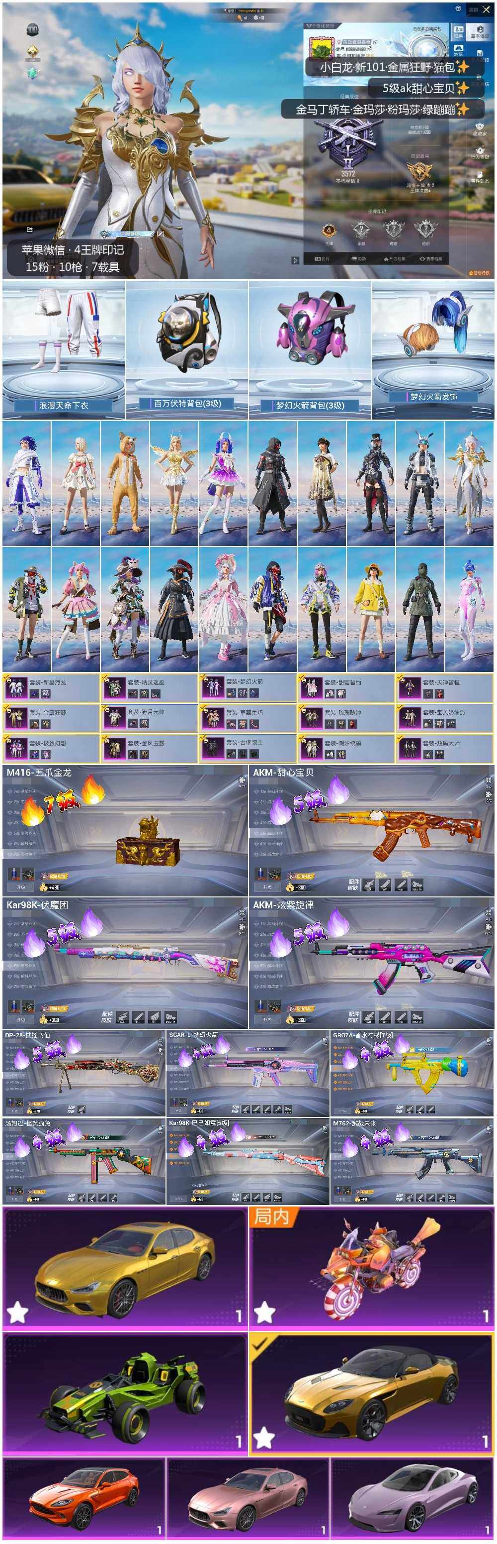 可二次【店主推荐捡漏号!可直接换绑】 苹果 微信-15粉装-10特效枪-7载具-4粉色飞行器-9.1w热力值-4王牌印记-159套装-212枪皮【热门品类】:粉装-梦幻火箭,套装-浪漫天命,套装-奇异狩猎者,套装-忍者信条,套装-浪客战士,套装-龟仙人,套装-潮萌小黄鸭【粉色载具】:特斯拉Roadster(沁心粉),阿斯顿马丁DBS(金),阿斯顿马丁DBX(橙),玛莎拉蒂Ghibli(金),玛莎