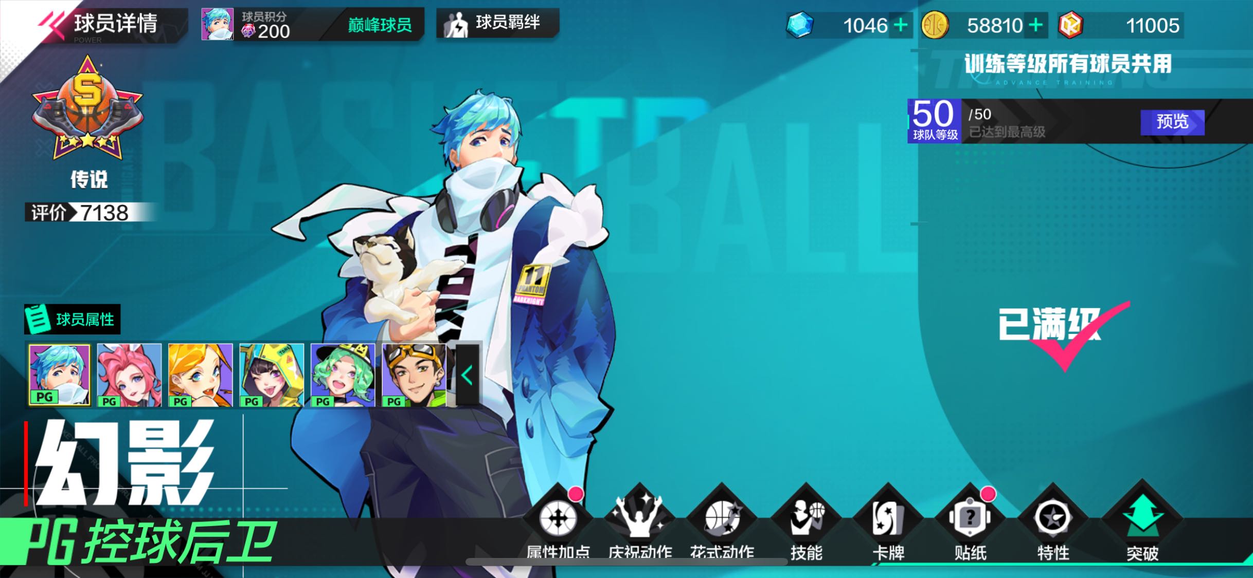 OS 后空翻双花3PG顶配 陷阱快投(没开)4个四级 ;后羿射篮、 魔术投篮、 鲨鱼投篮 、飞人