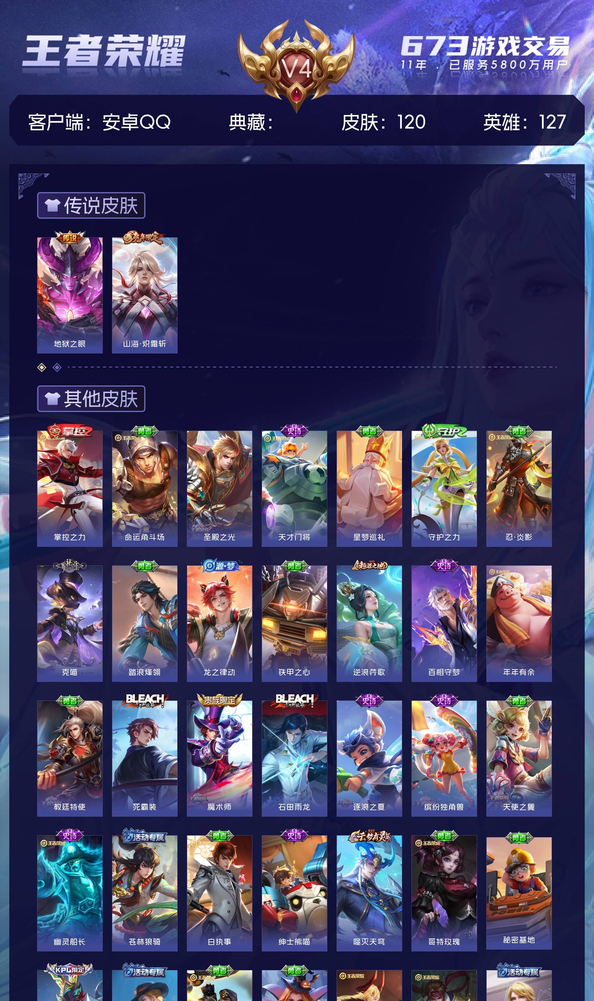 V4 皮肤120 英雄127 尊贵铂金 传说2 其他皮肤124