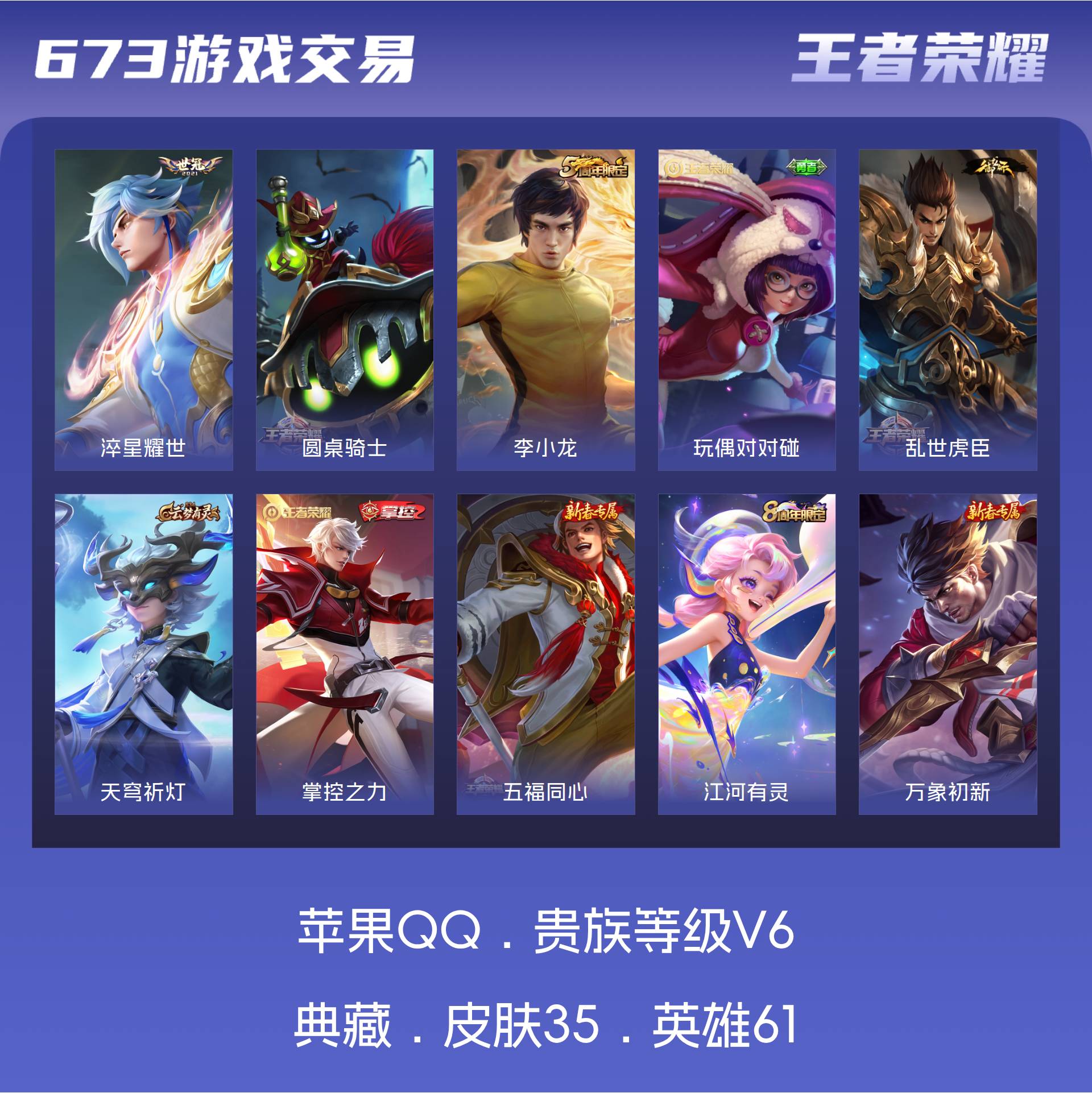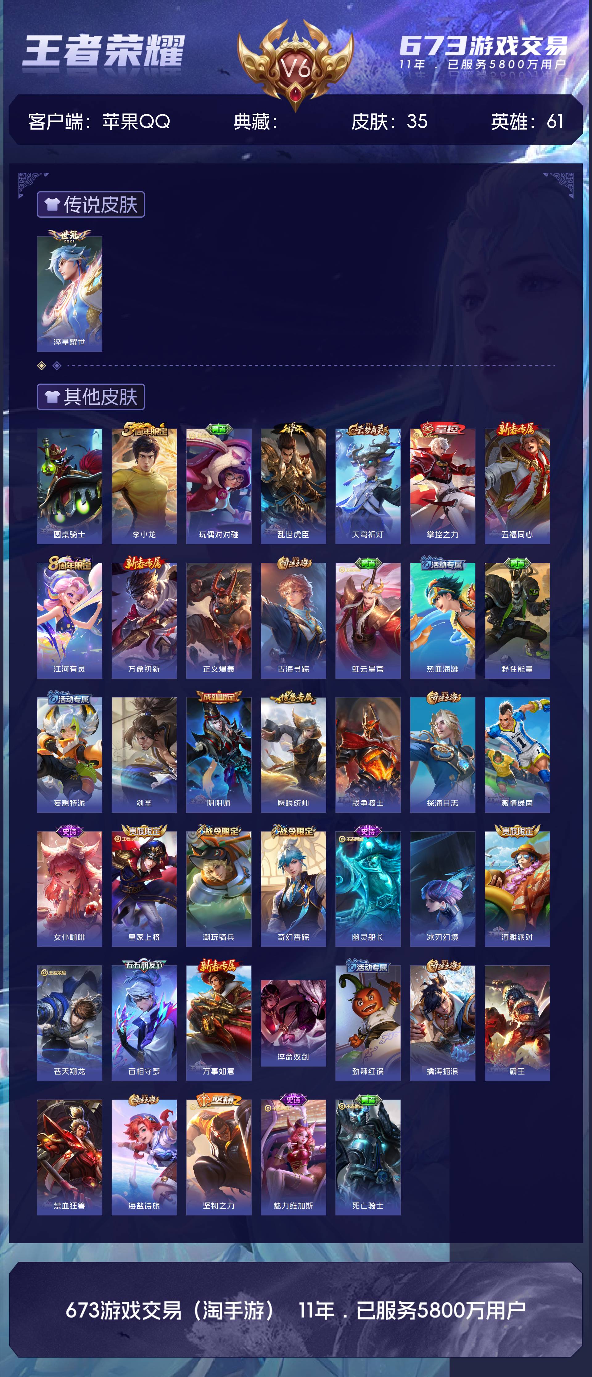 V6 皮肤35 英雄61 荣耀黄金 传说1 其他皮肤40