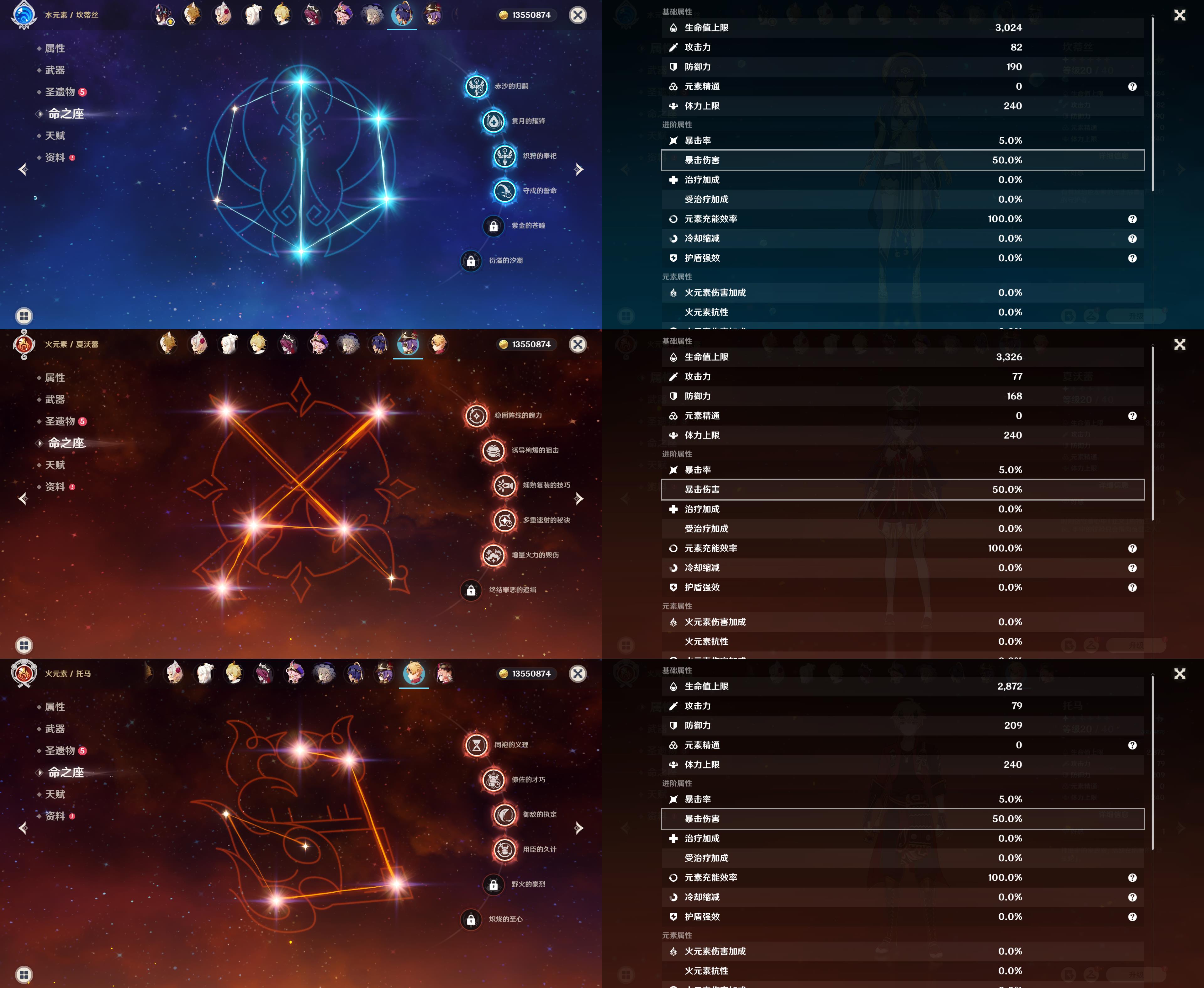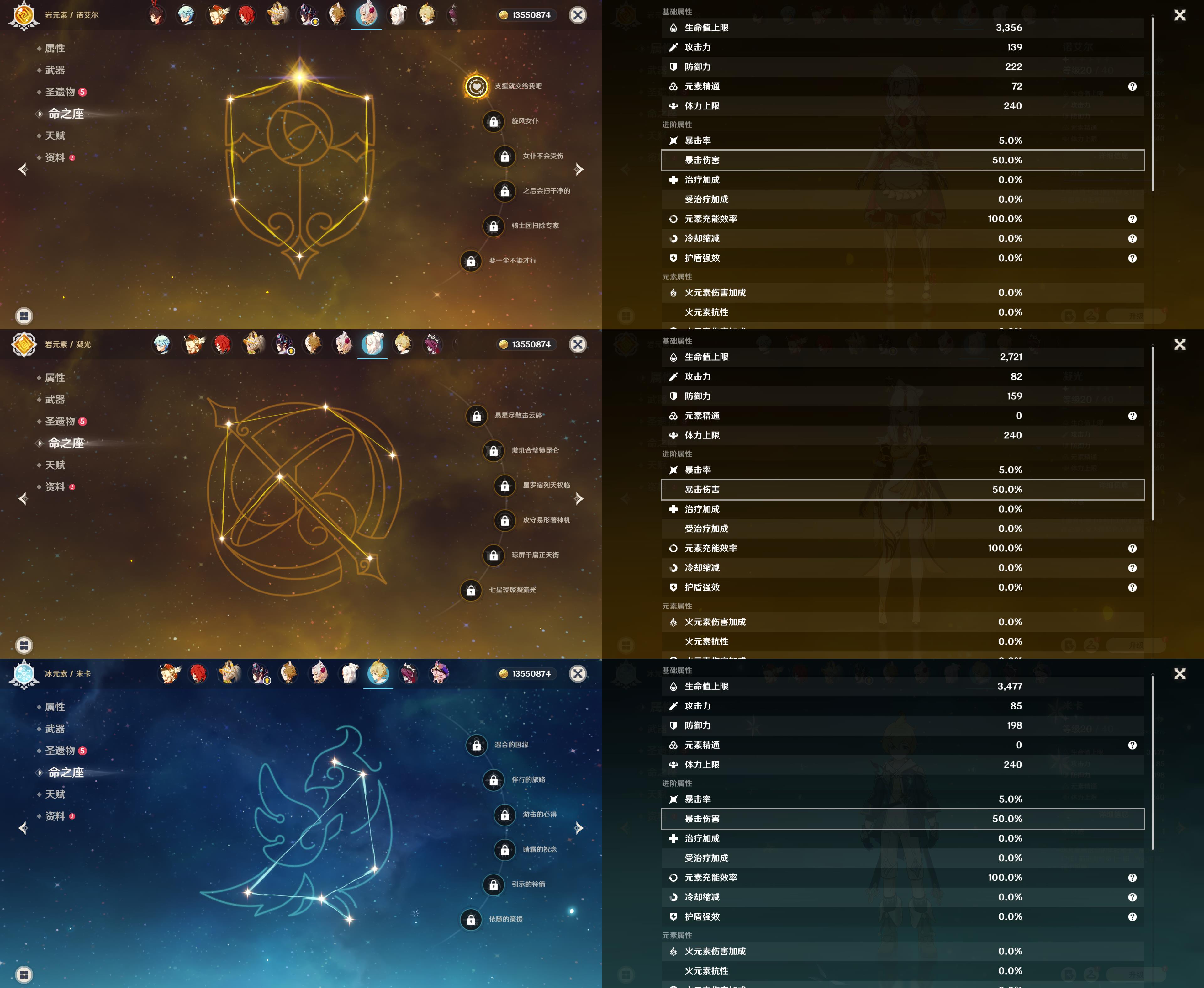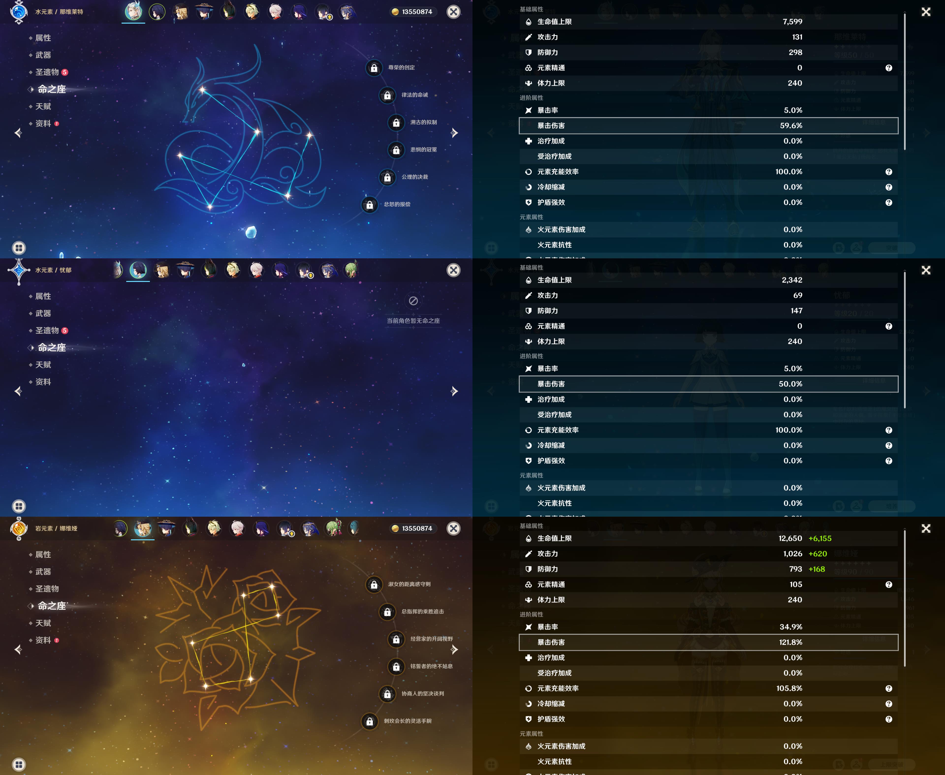 56级/13黄/女主/9个五星角色/3个五星武器/那维莱特/娜维娅/1命提纳里