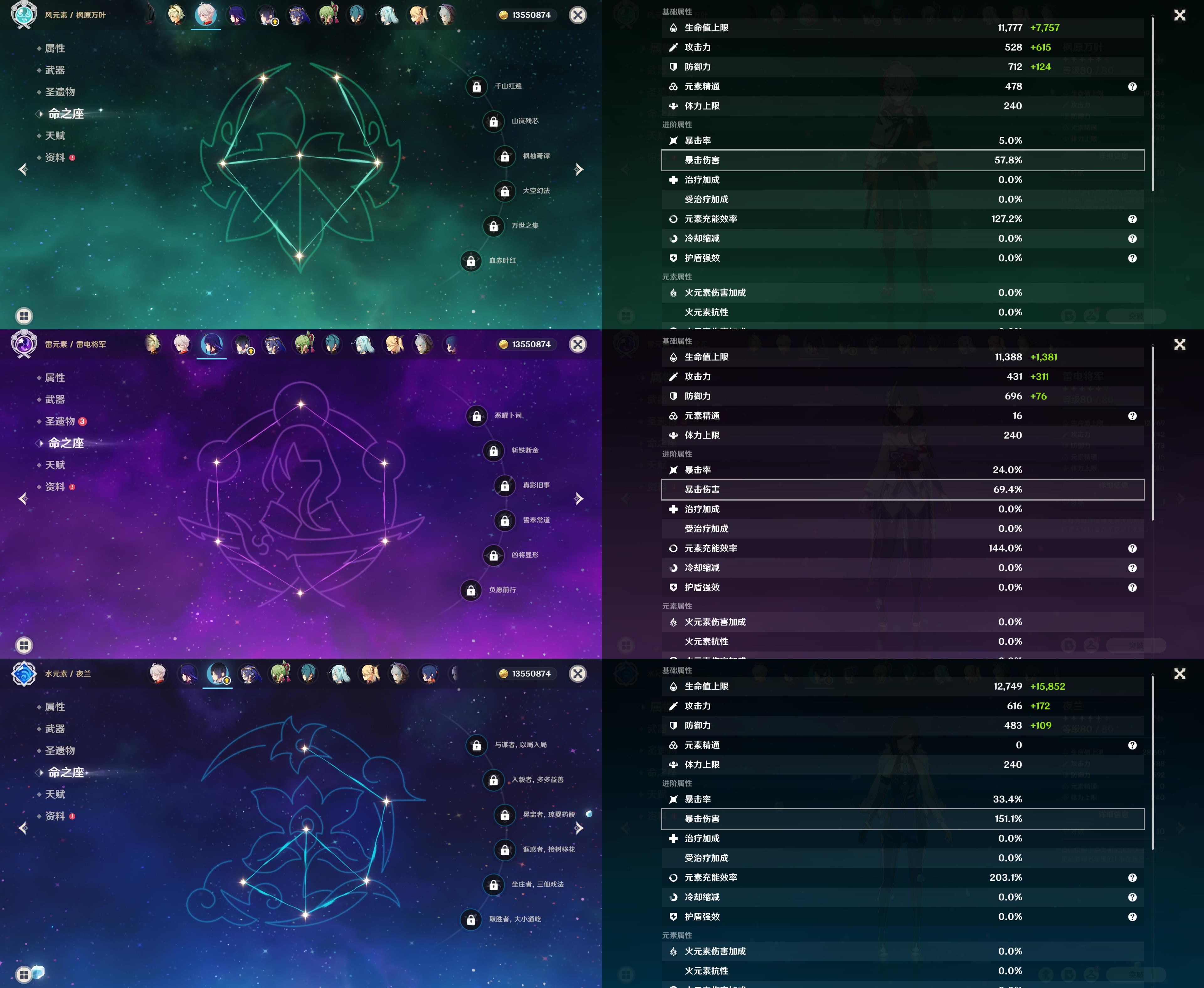 【YSX1666】56级/13黄/女主/9个五星角色/3个五星武器/那维莱特/娜维娅/1命提纳里/枫原万叶/雷电将军/夜兰/刻晴/可莉/迪卢克/裁断/天空之翼/和璞鸢