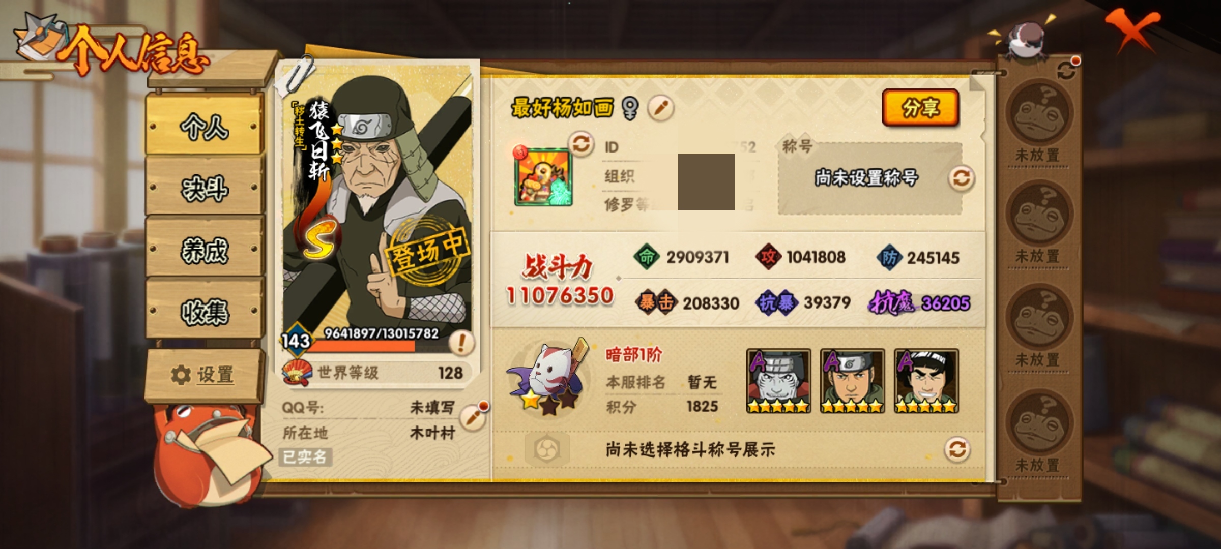 战力如图,排百榜50左右,需要了解的可以直接给我发信息。