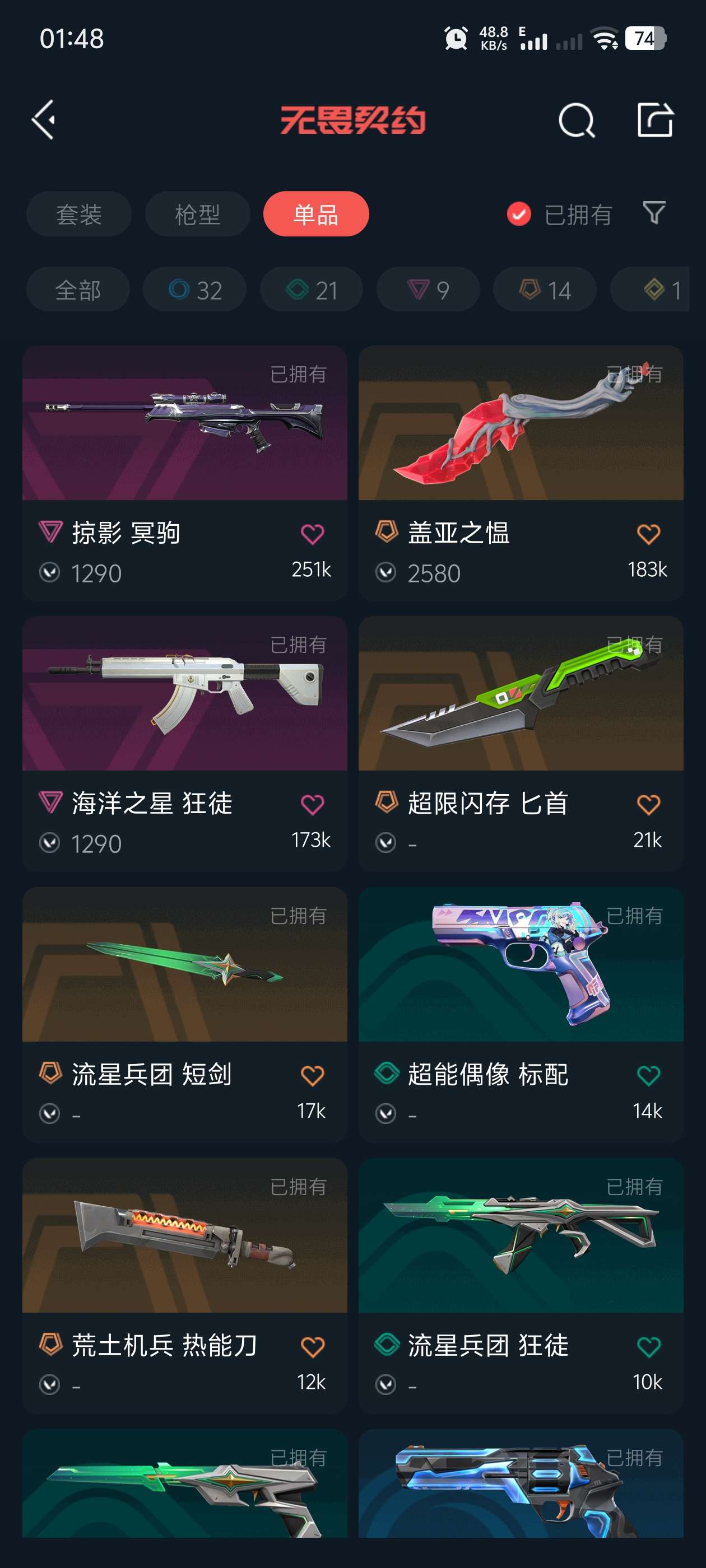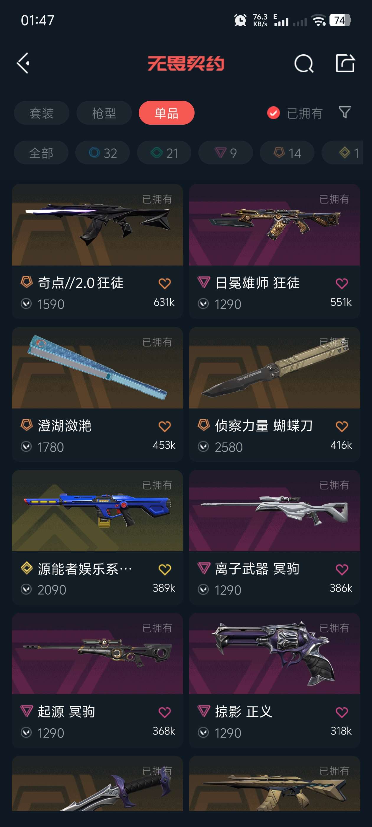 Lv208 ,皮肤总价值37630,可二次,铂金I,总皮肤76,刀皮9枪皮67(终极1传奇5卓越9)