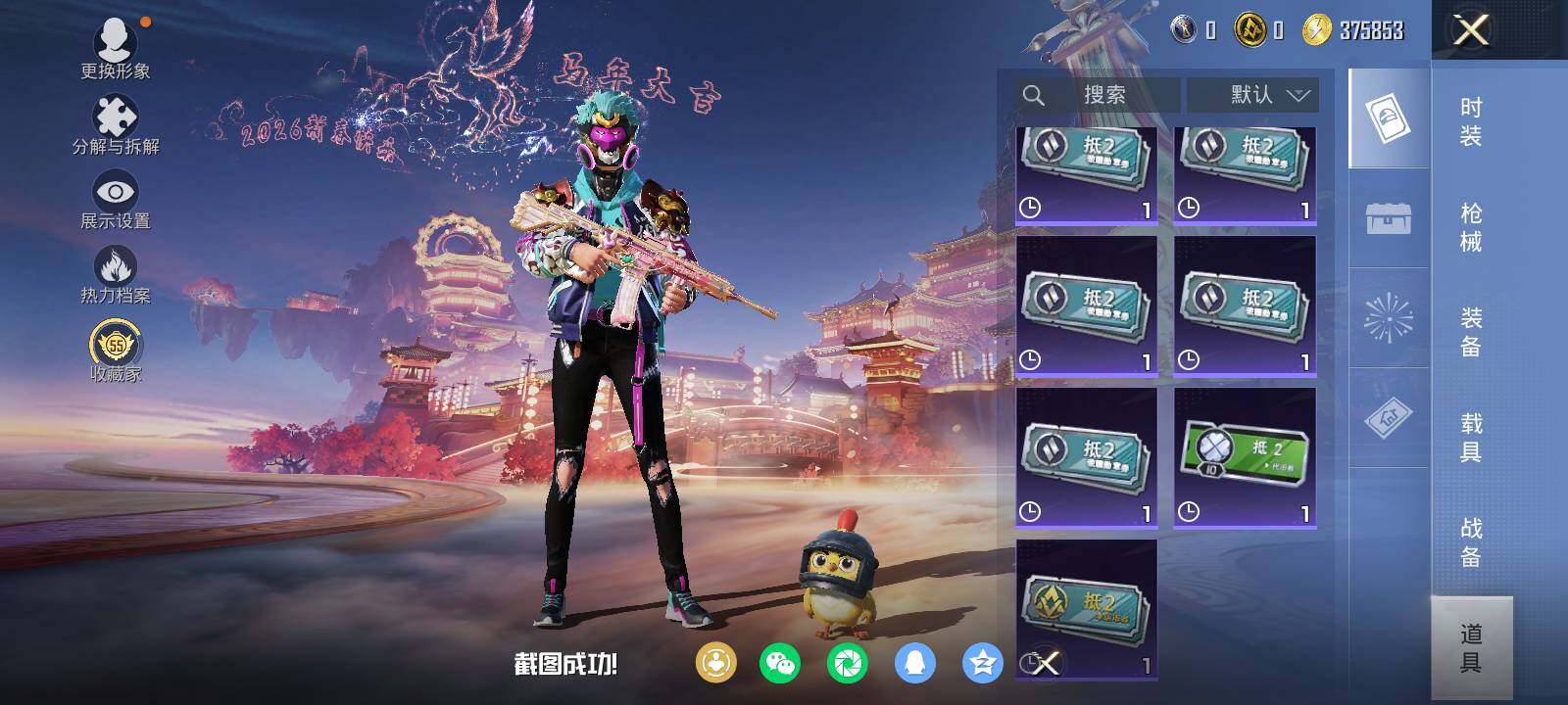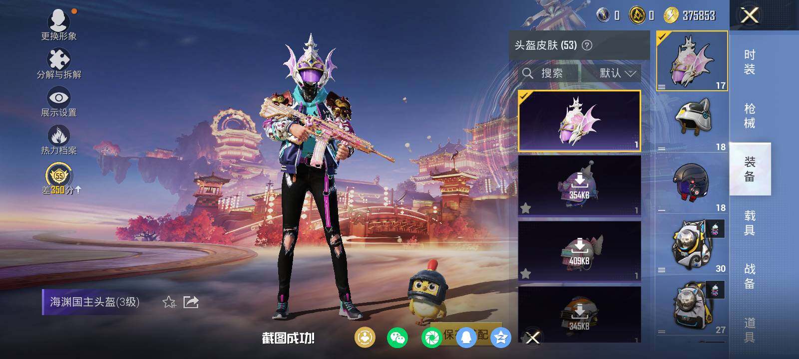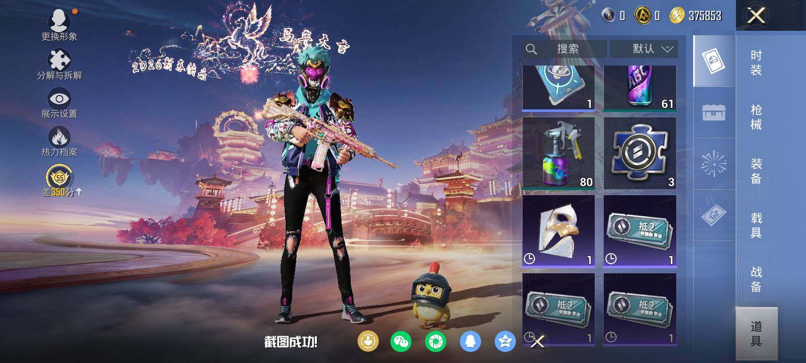 安卓 手Q-10粉装-5特效枪-1载具-3粉色飞行器-52106热力值-1王牌印记-106套装-133枪皮
