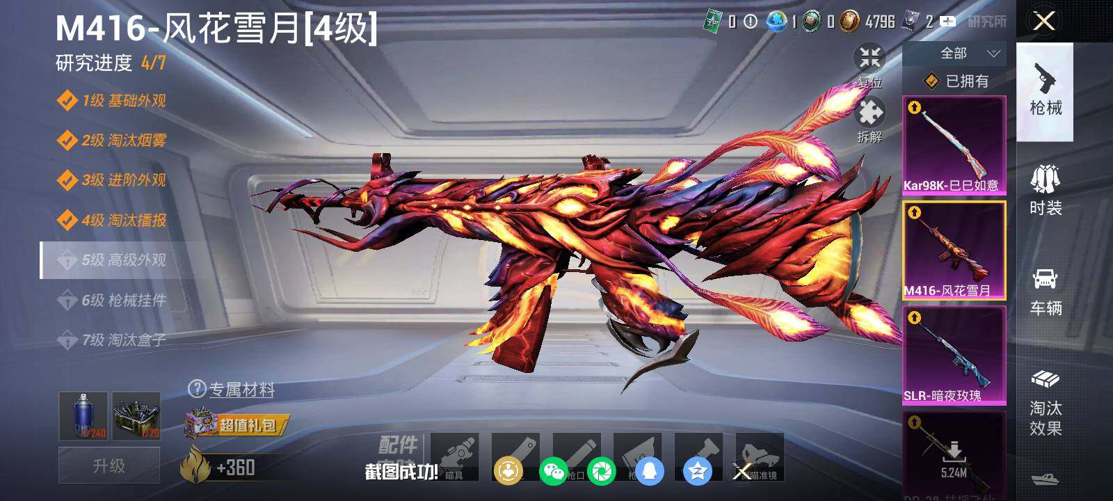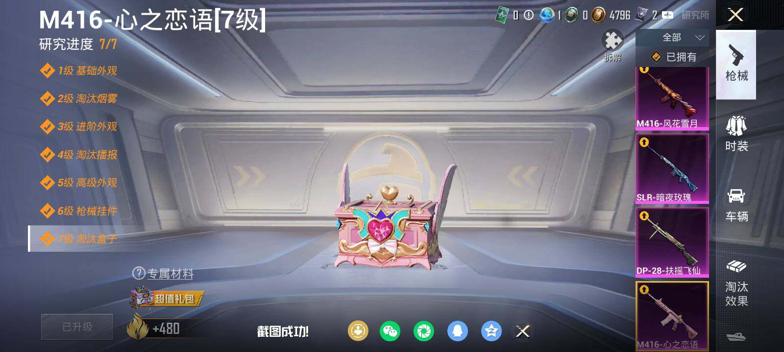 【粉色枪皮等级】:M416-心之恋语(七级),M416-风花雪月(