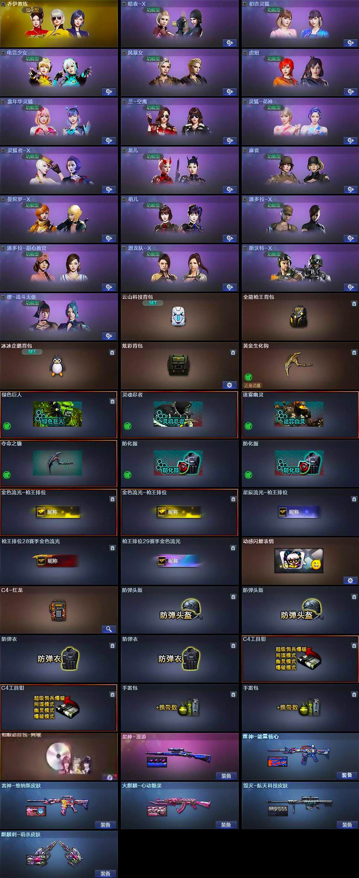 【人偶武器】:AWM-灵狐-15周年嘉年华,海滩汪汪-巴雷特,迷你深渊冰龙,迷你巨石泰坦-魔花研究所,迷你裂空之翼,迷你牛魔王,迷你波特博士,夺魂,生化手雷-机甲核心*2,深渊终结者手雷*3