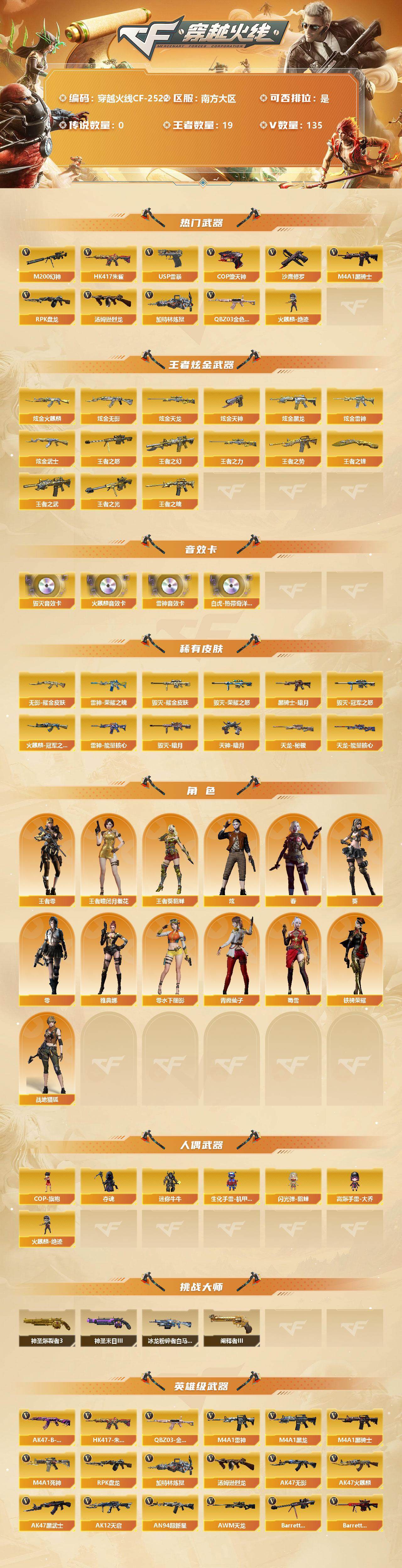 【商品标题】:南方大区-135V-19王者-7炫金【热门武器】:QBZ03-