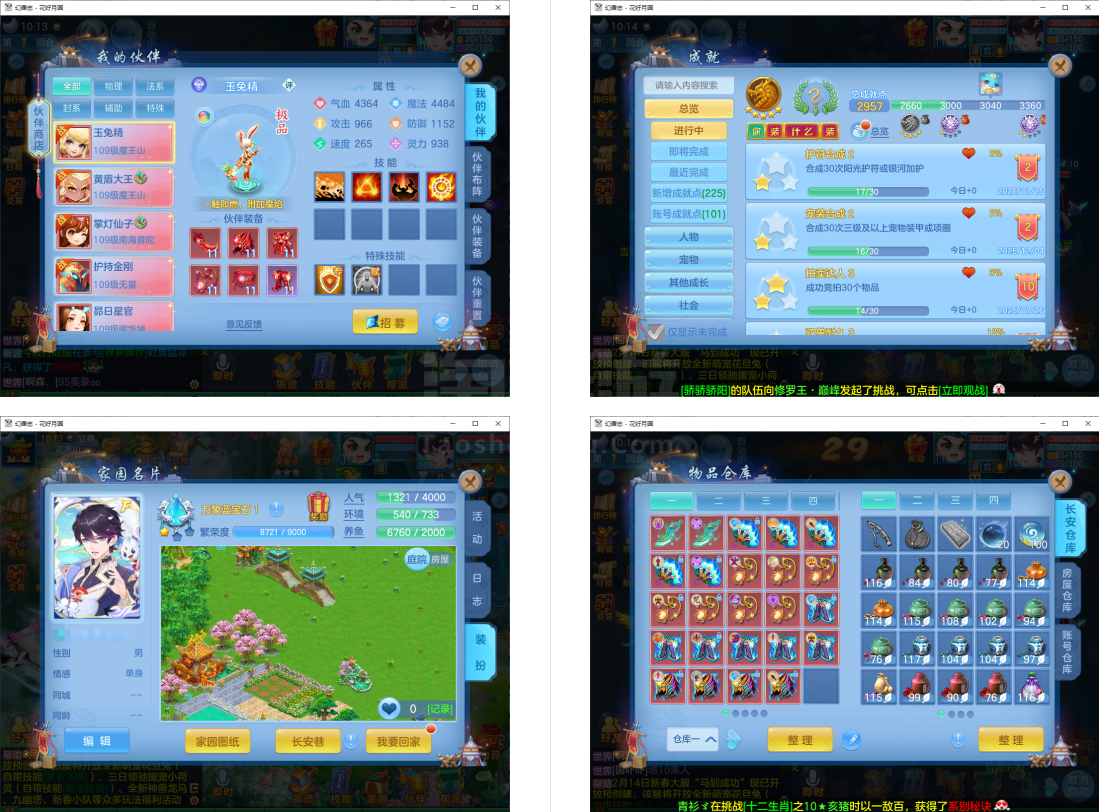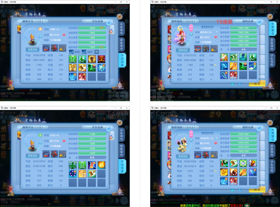 (109龙宫/男)花好月圆/一年换绑★无双重★3件13段1件12段2件11段,特技装,双内丹神(6满魂兽),6红10黄2专属血脉,2个宝宝皮肤,高级坐骑,2957成就