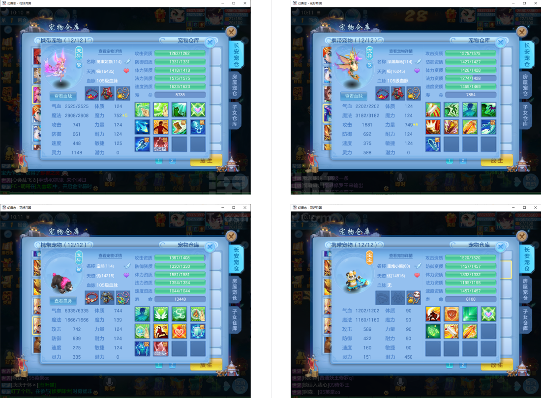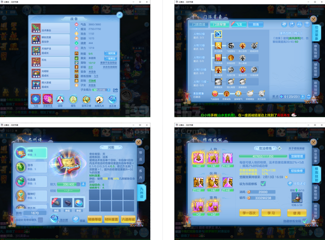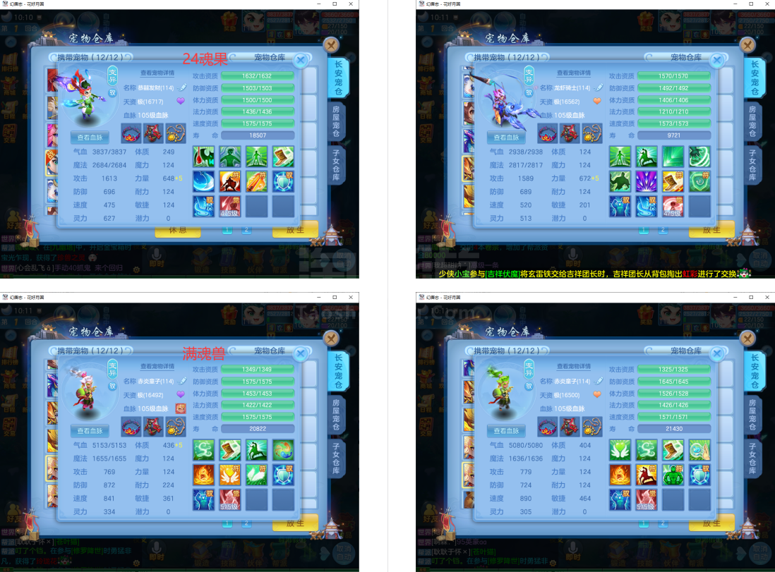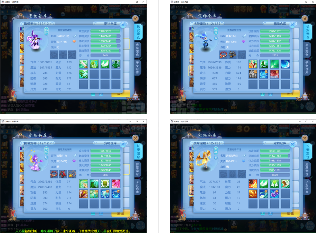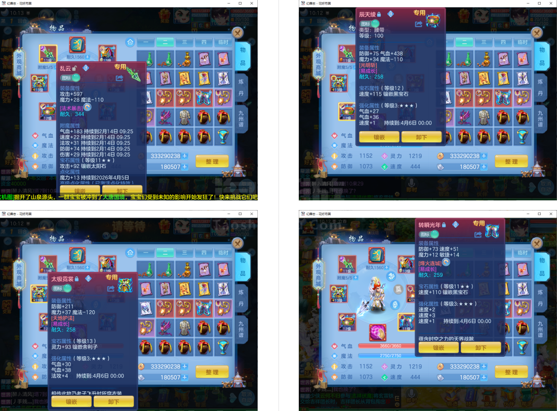 3件13段1件12段2件11段,特技装,双内丹神(6满魂兽),6红10黄2专属血脉,2个宝宝皮肤,高级坐骑,2957成就
